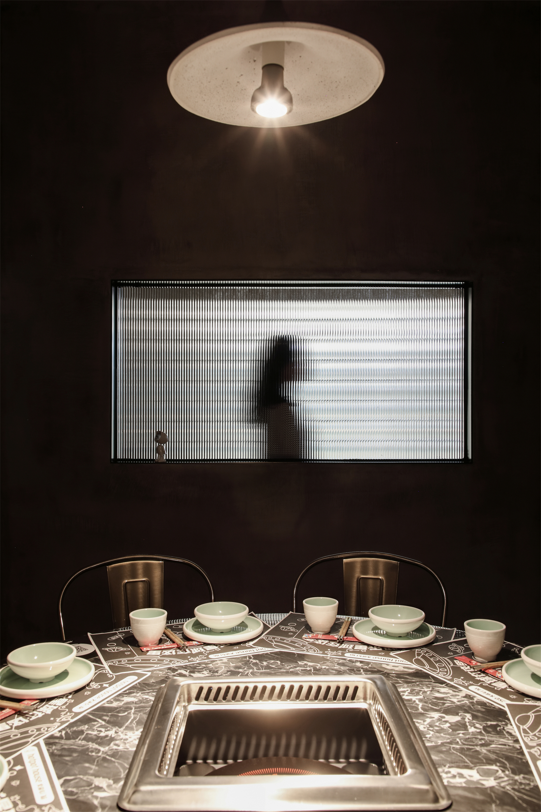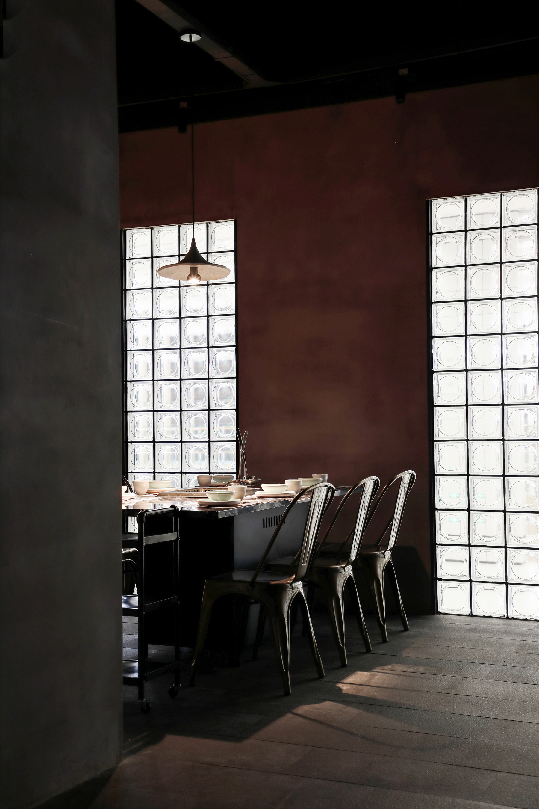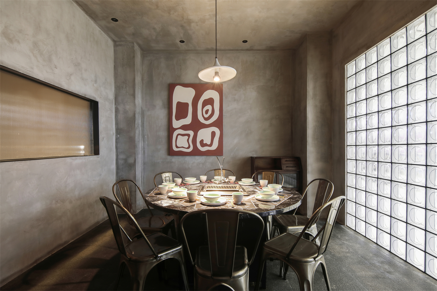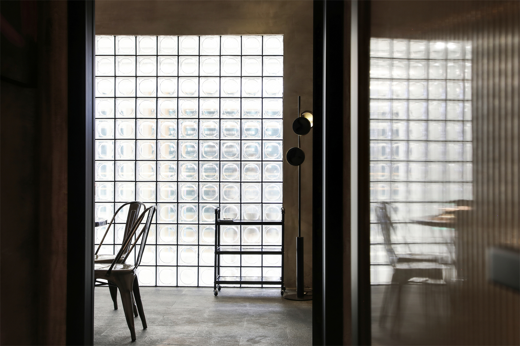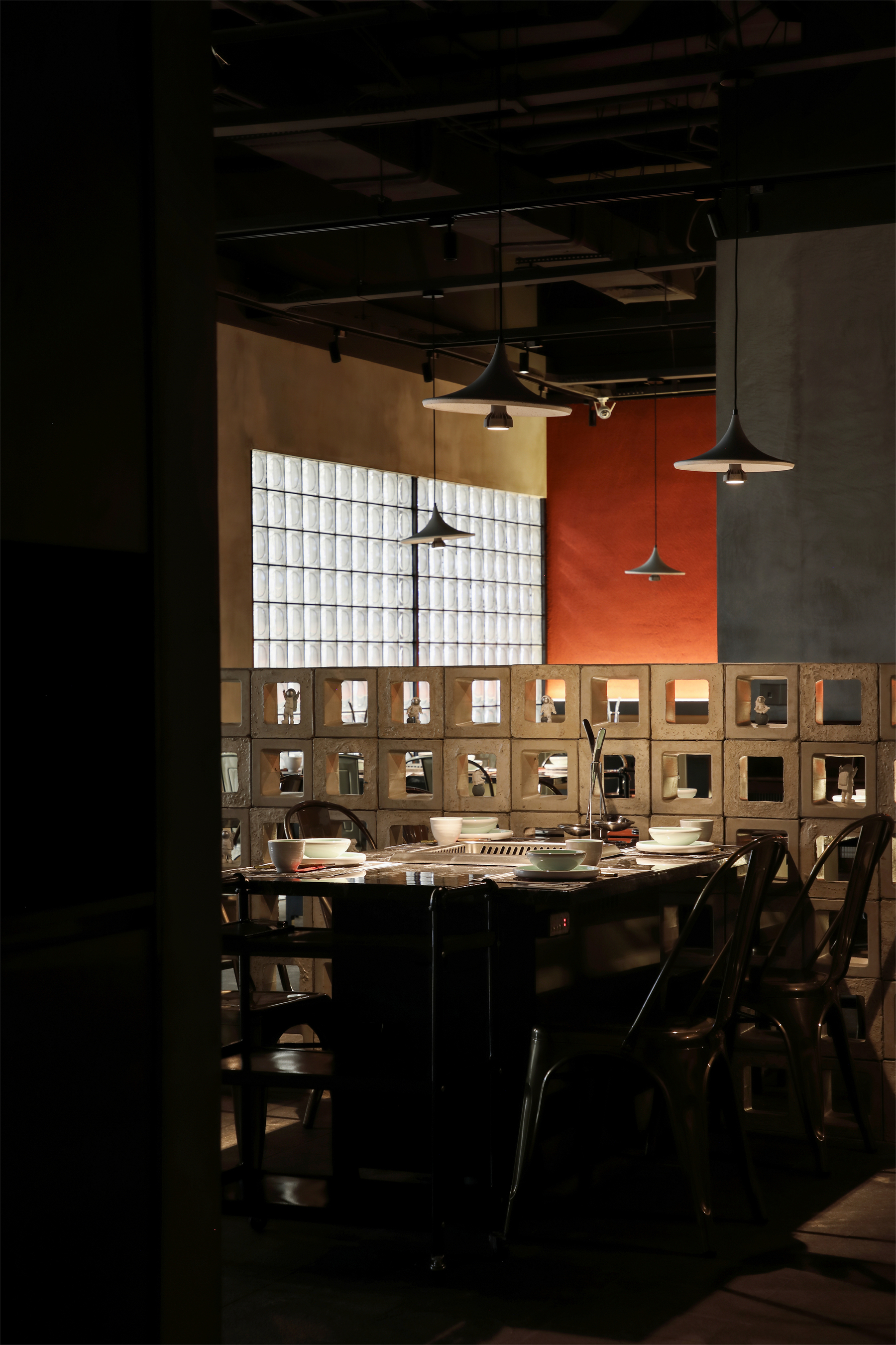 设计选材:设计选材:霓虹灯、清水混凝土、太阳纹玻璃砖、定制夯土
