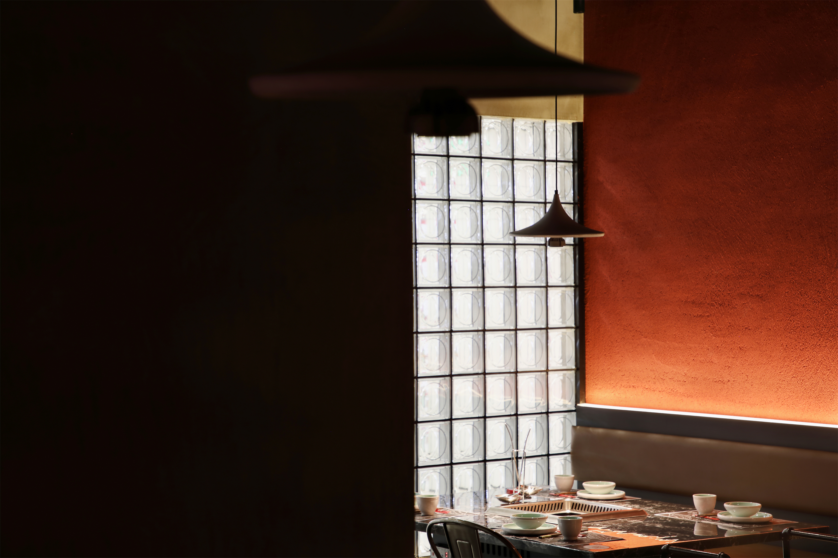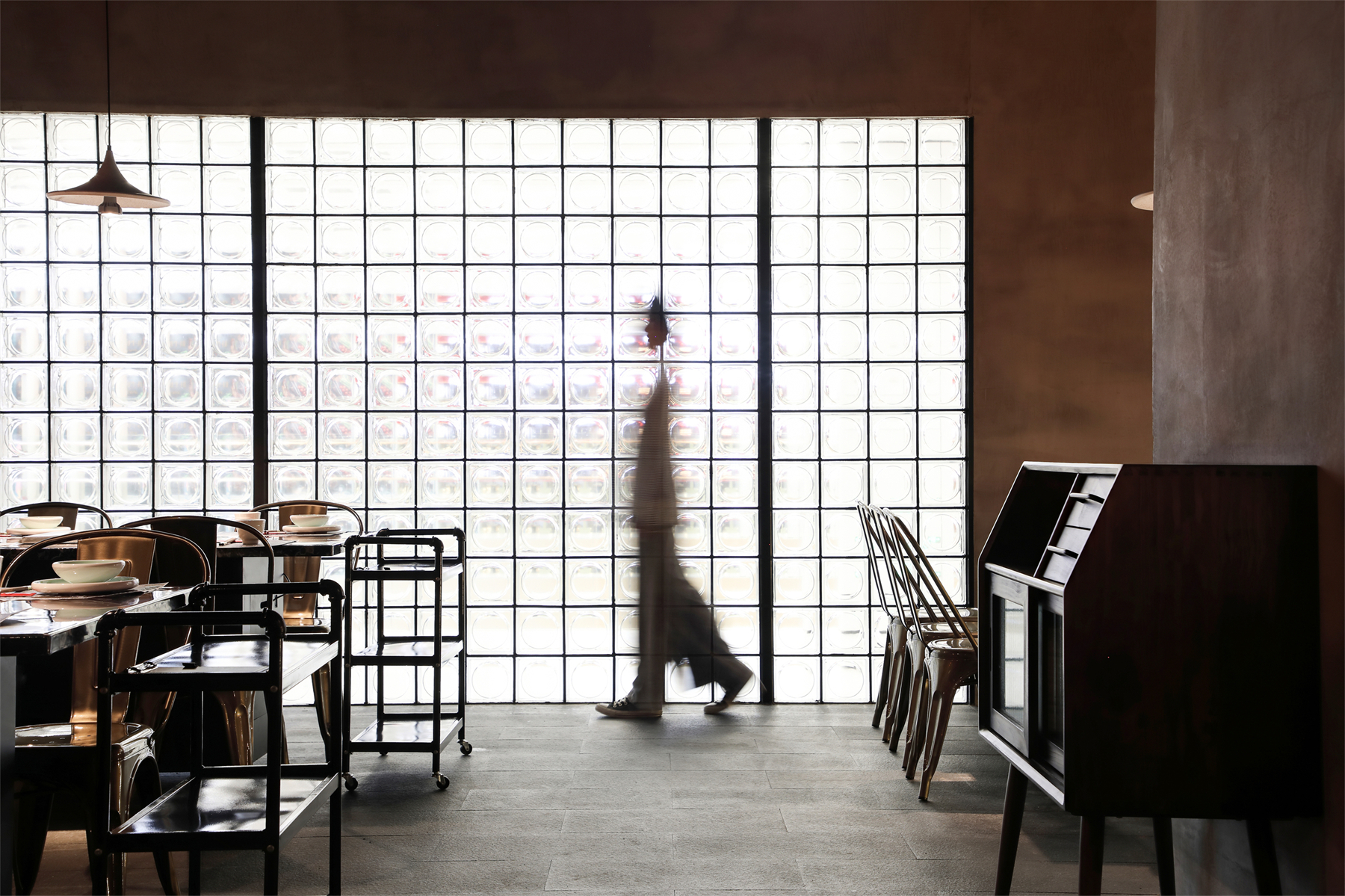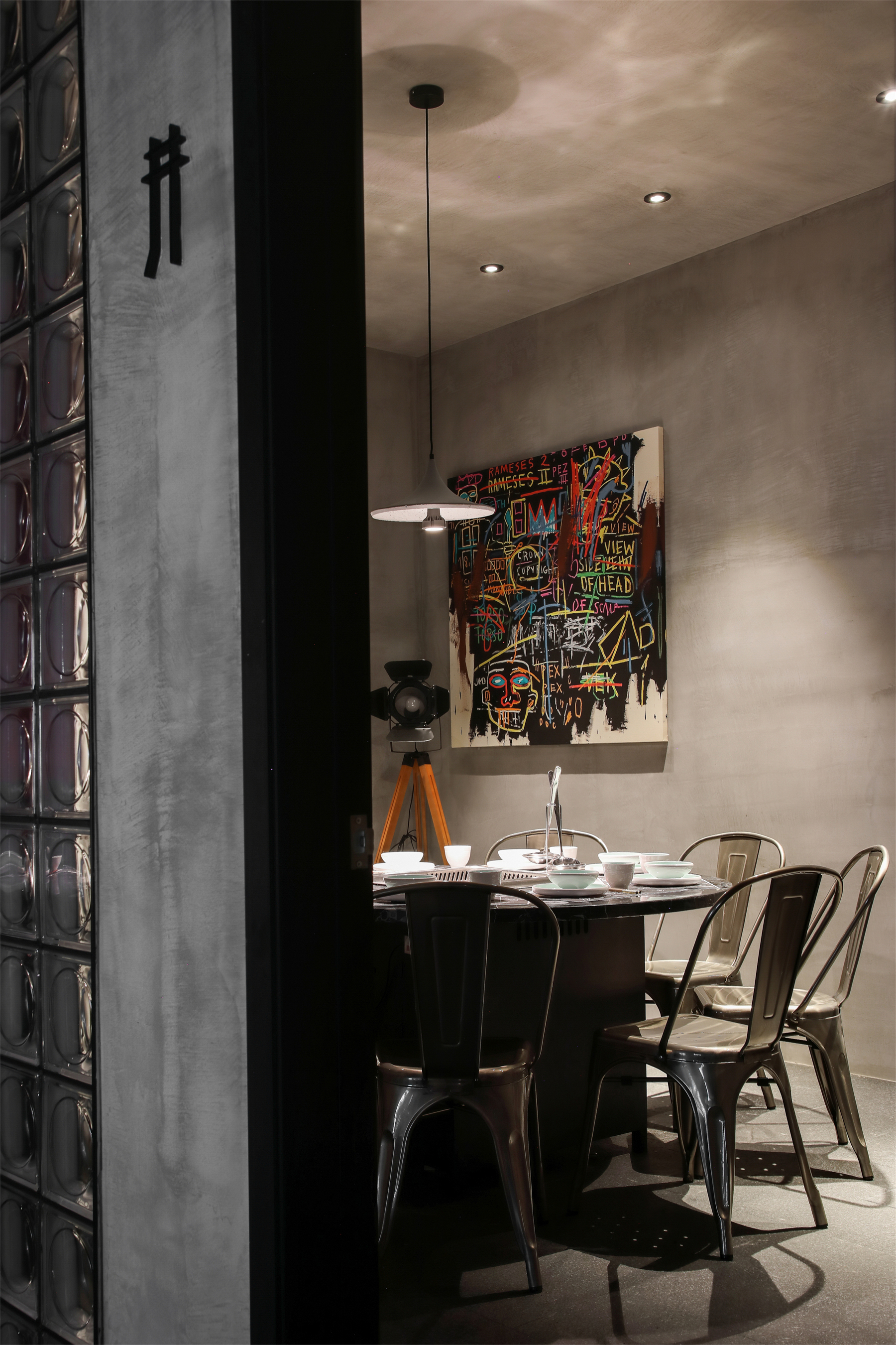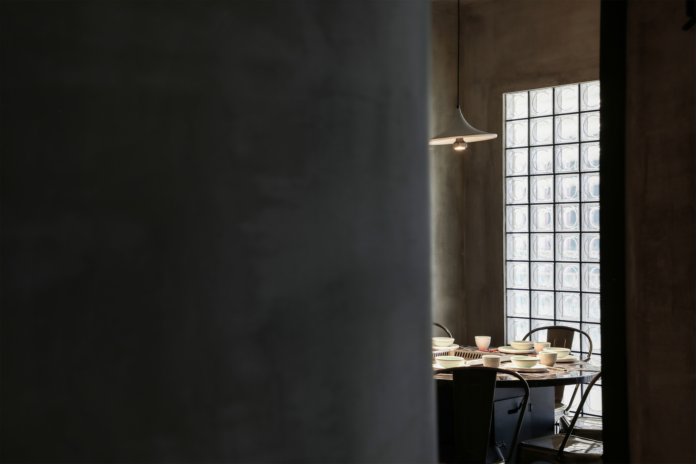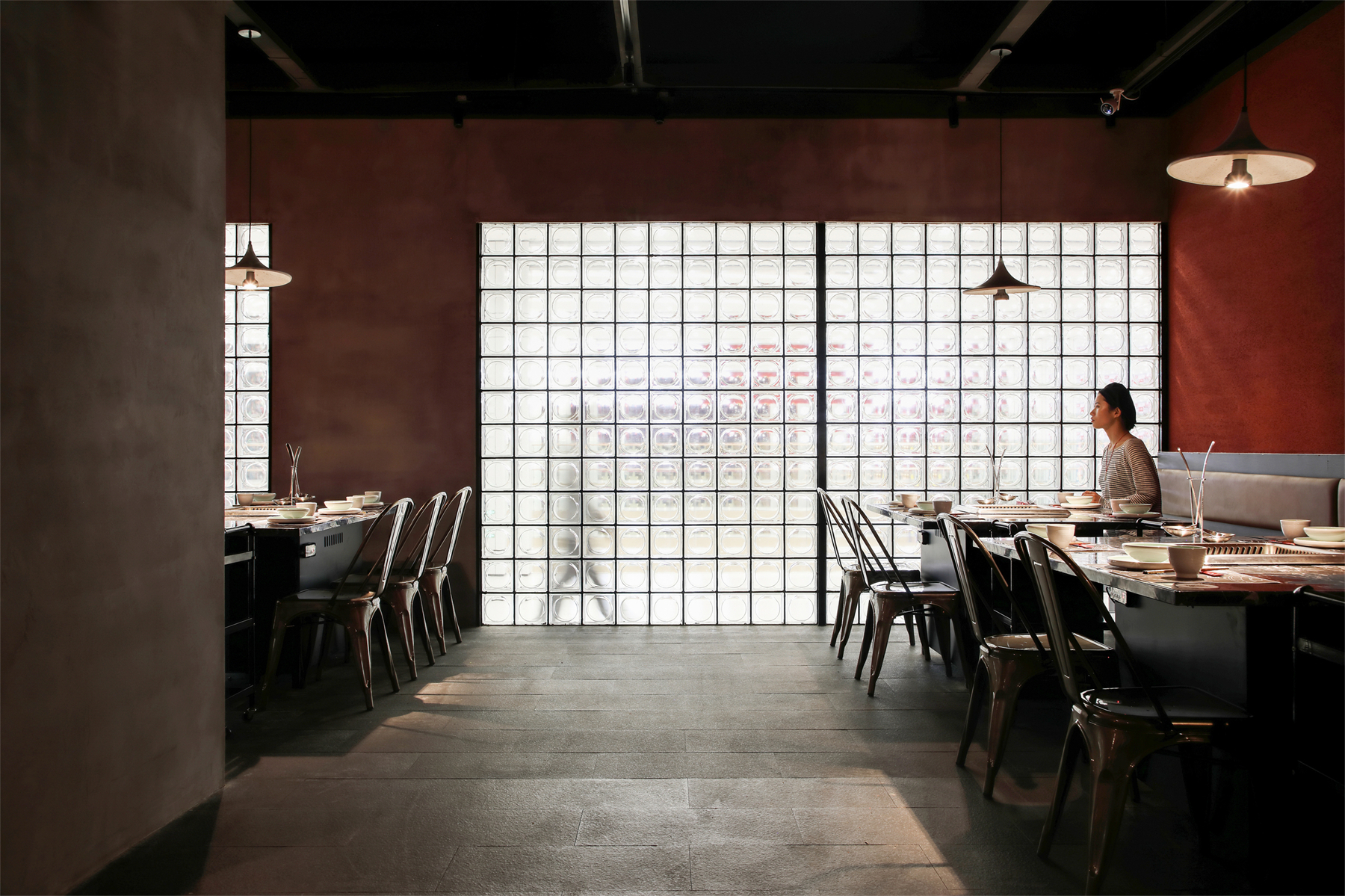 设计选材:设计选材:霓虹灯、清水混凝土、太阳纹玻璃砖、定制夯土