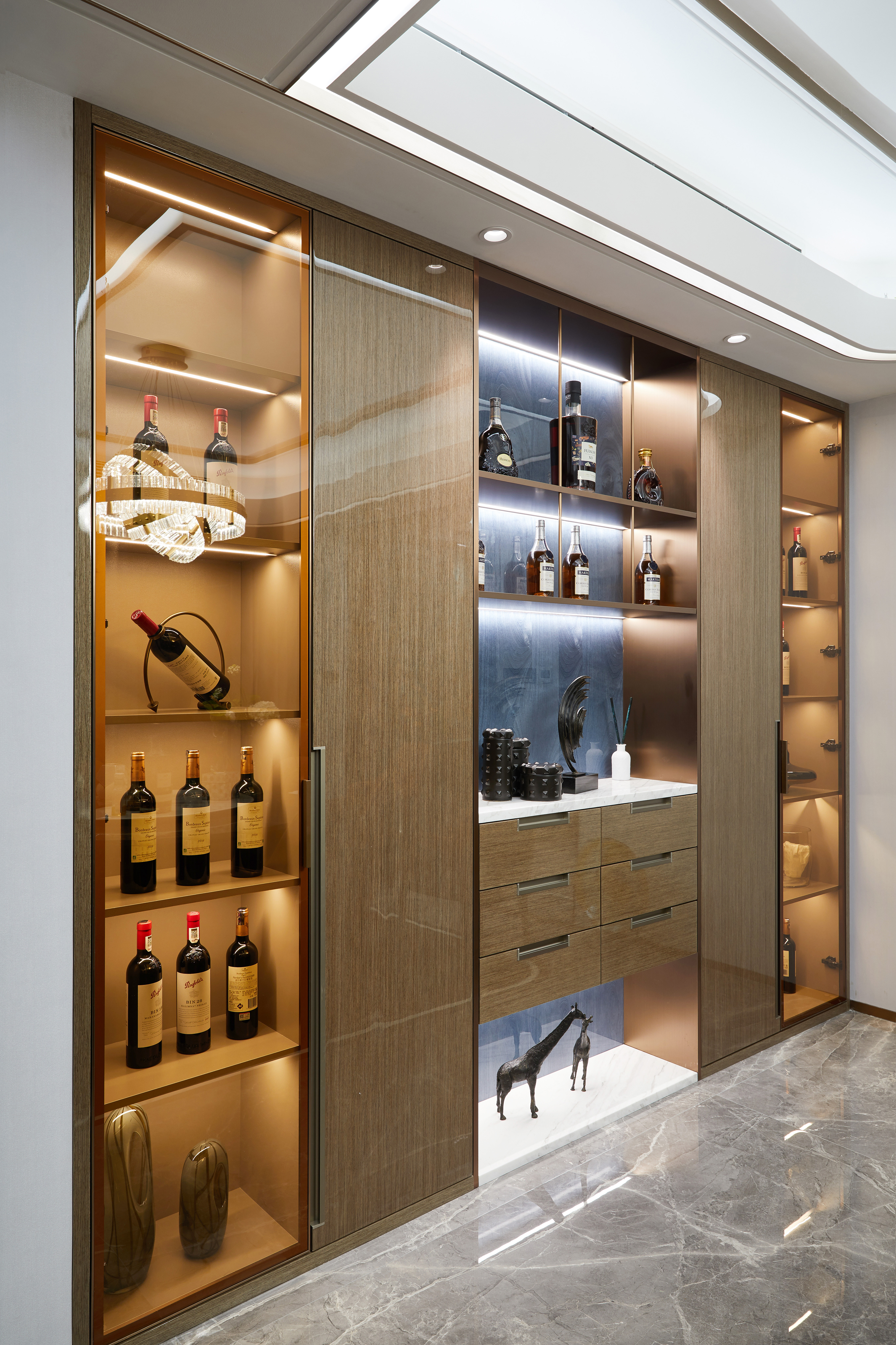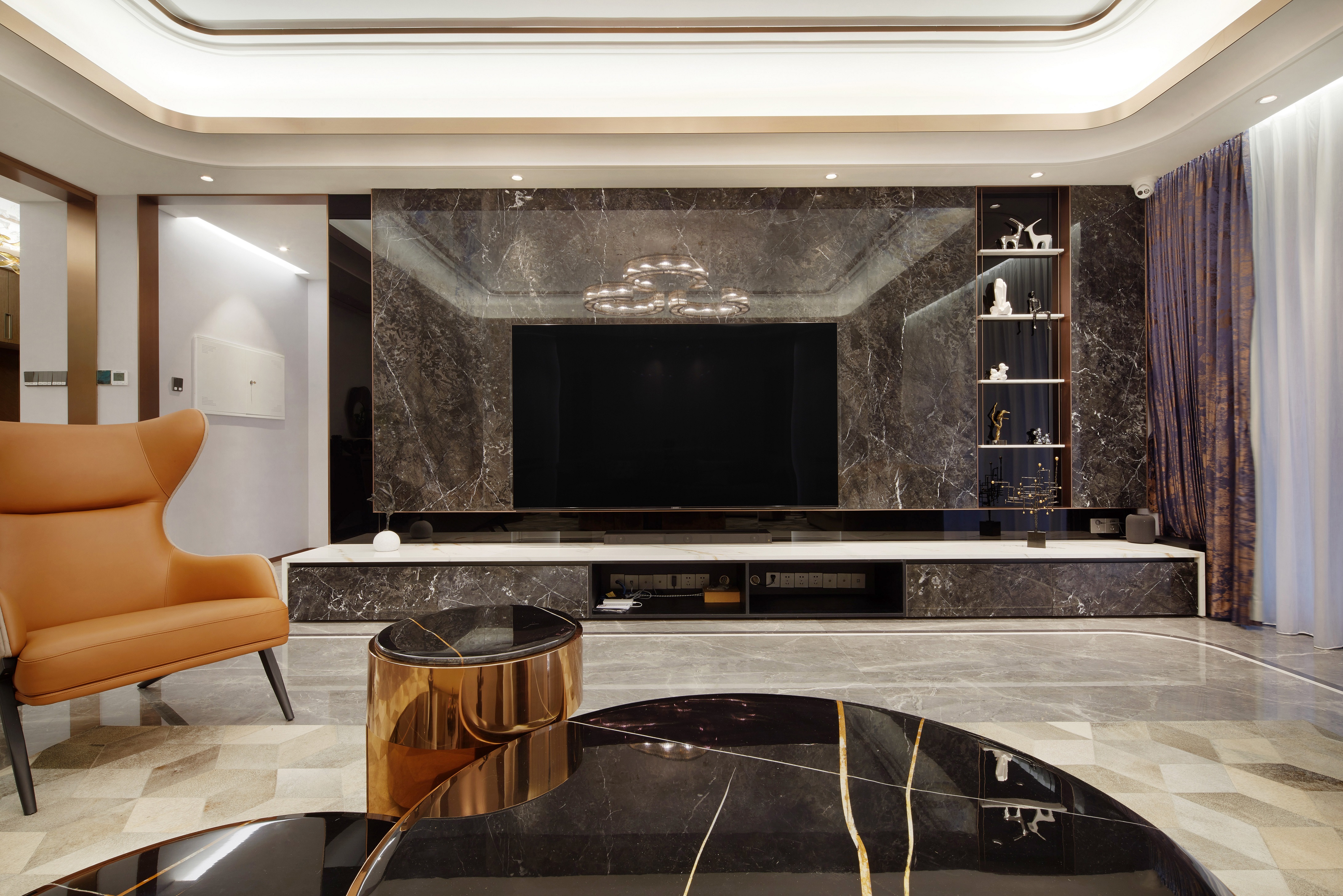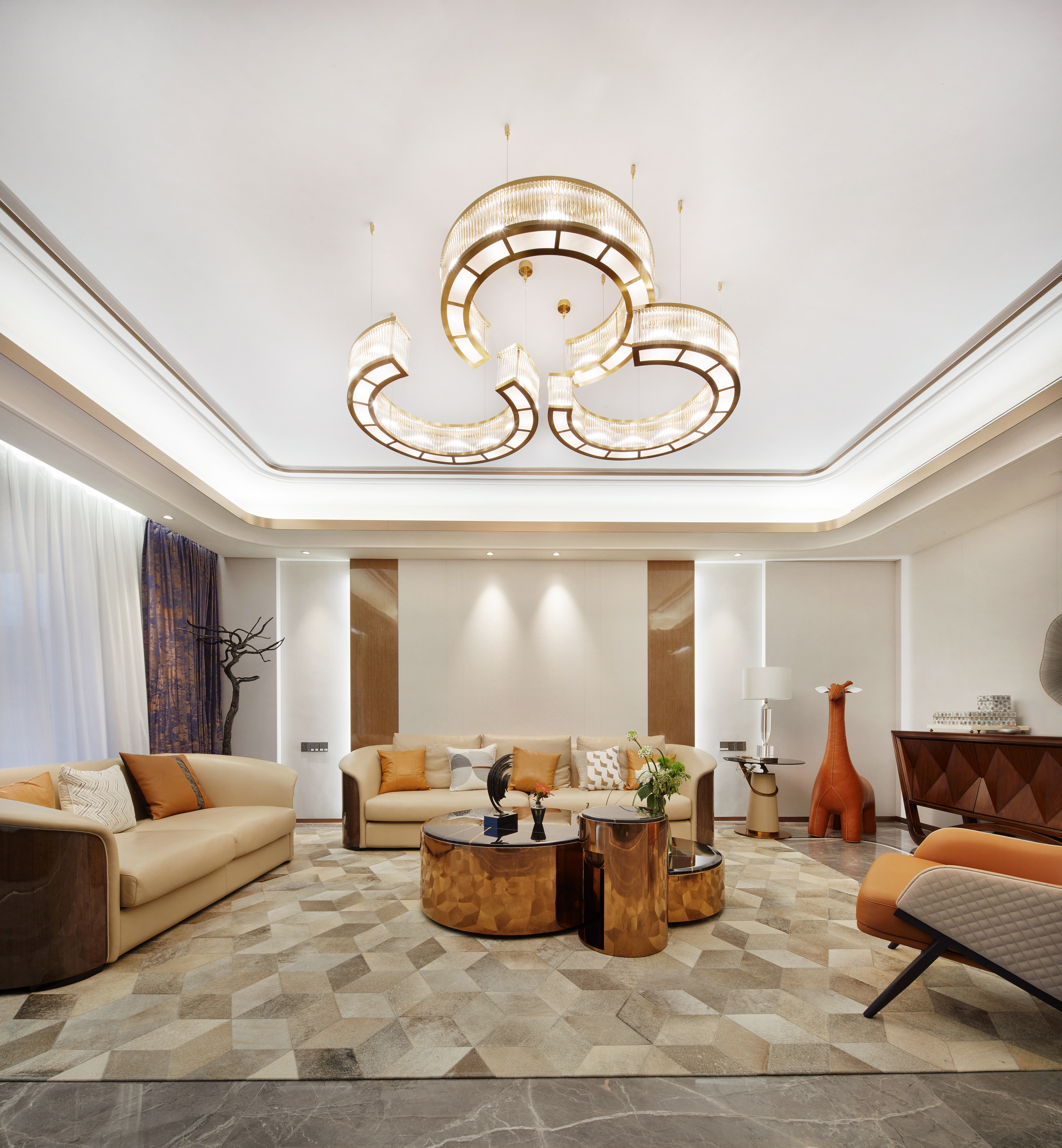 客厅:以现代都市生活为审美考量,构建现代家庭生活的开放式格局。金属与皮质的碰撞,将低调奢华的格调渗透至空间各处,在彰显卓越工艺的同时,予人精致优雅的聚会氛围。