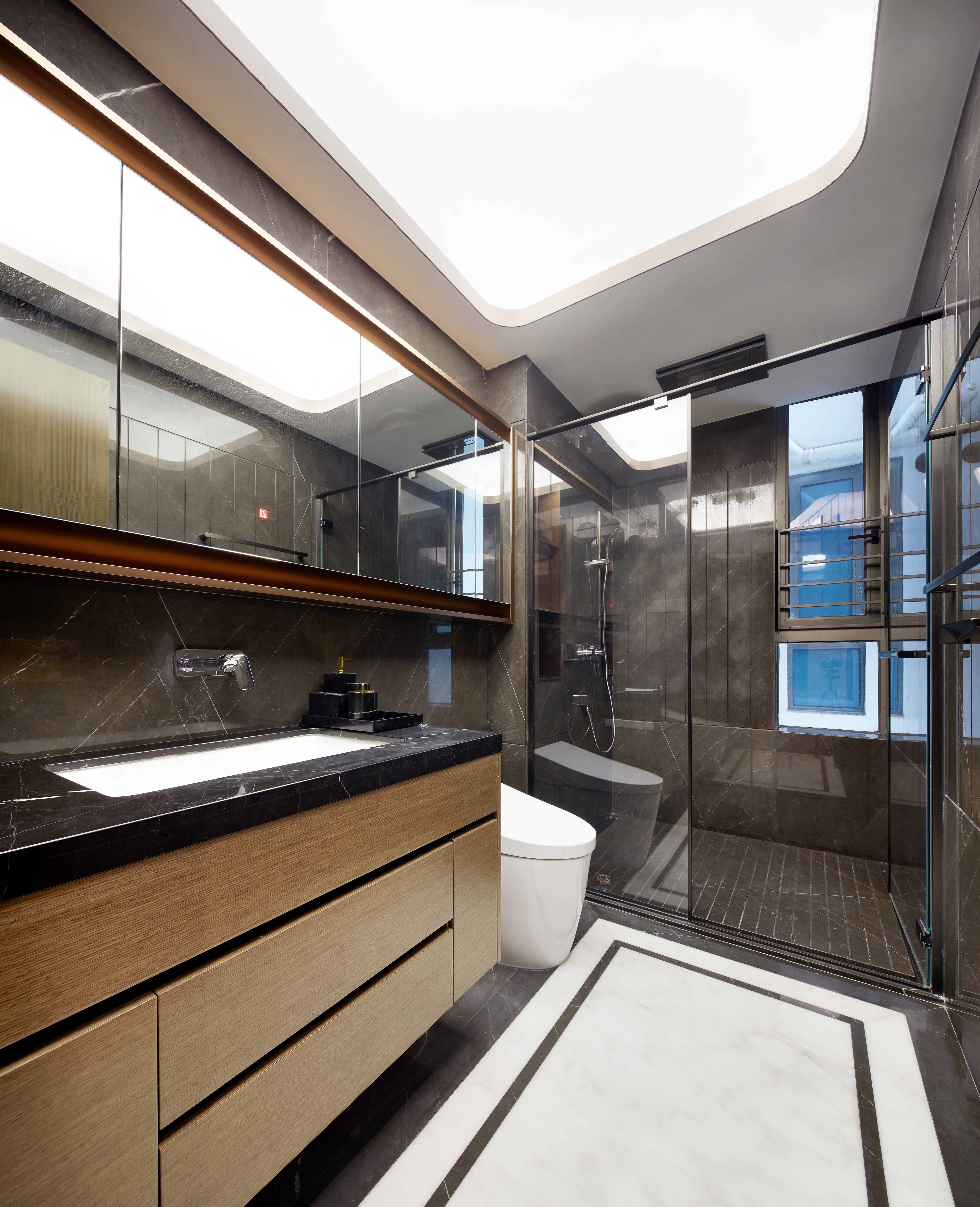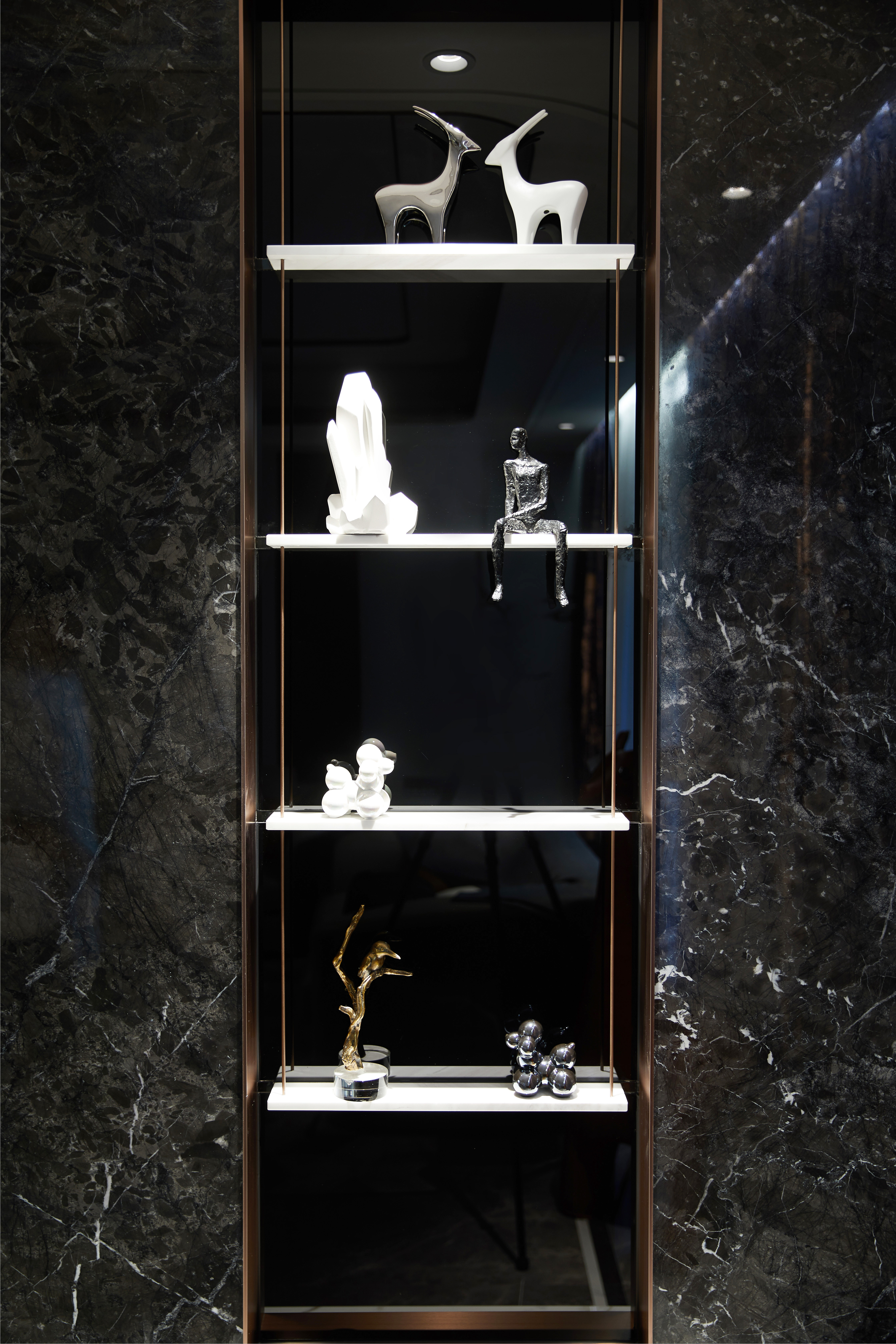 黑色的镜面与大理石的拼接,拉伸空间的视觉体验