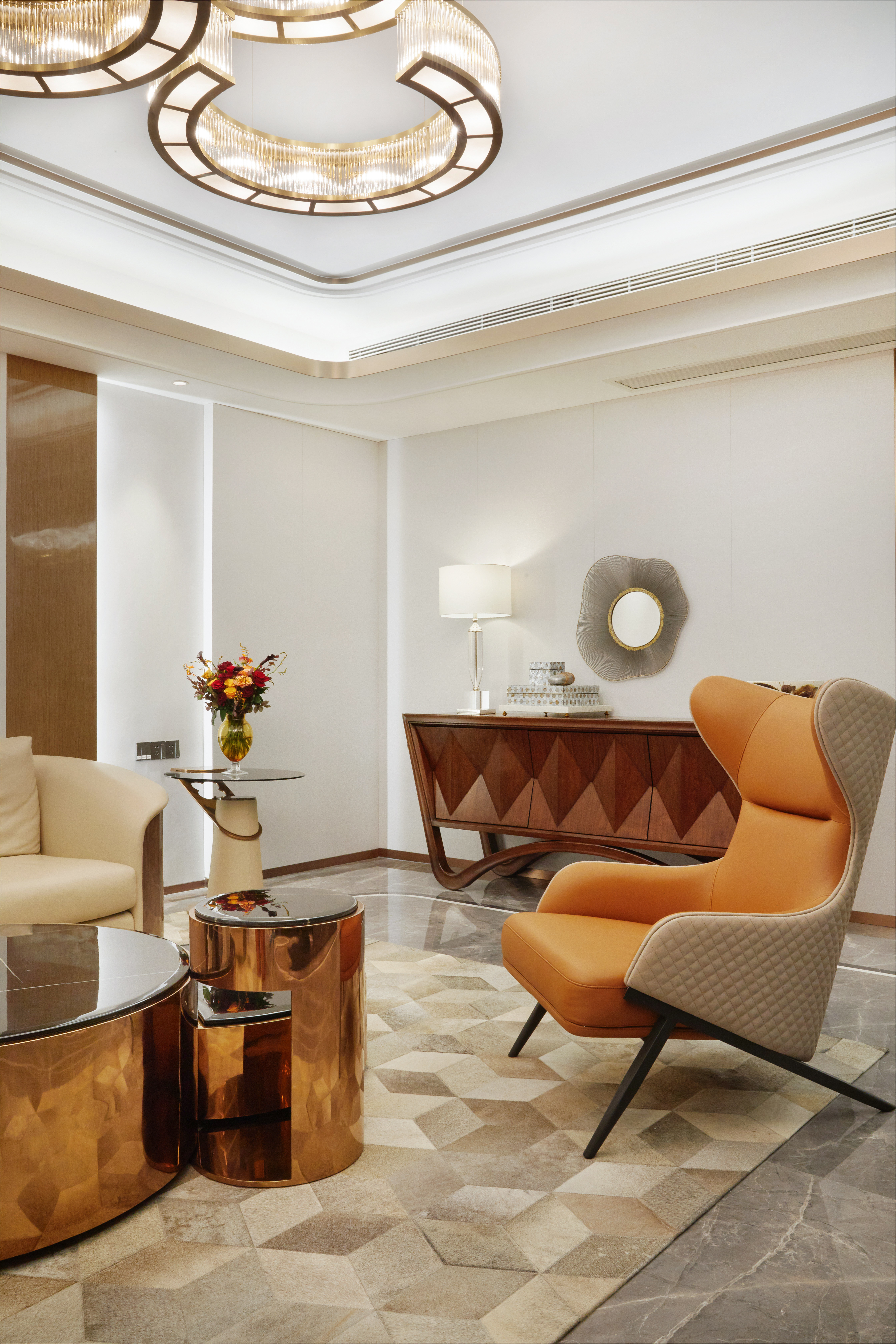 客厅:内敛与绅士般的沉稳是会客厅的写意,重视空间线条和比例的纯粹,精于细节和材质的组合。