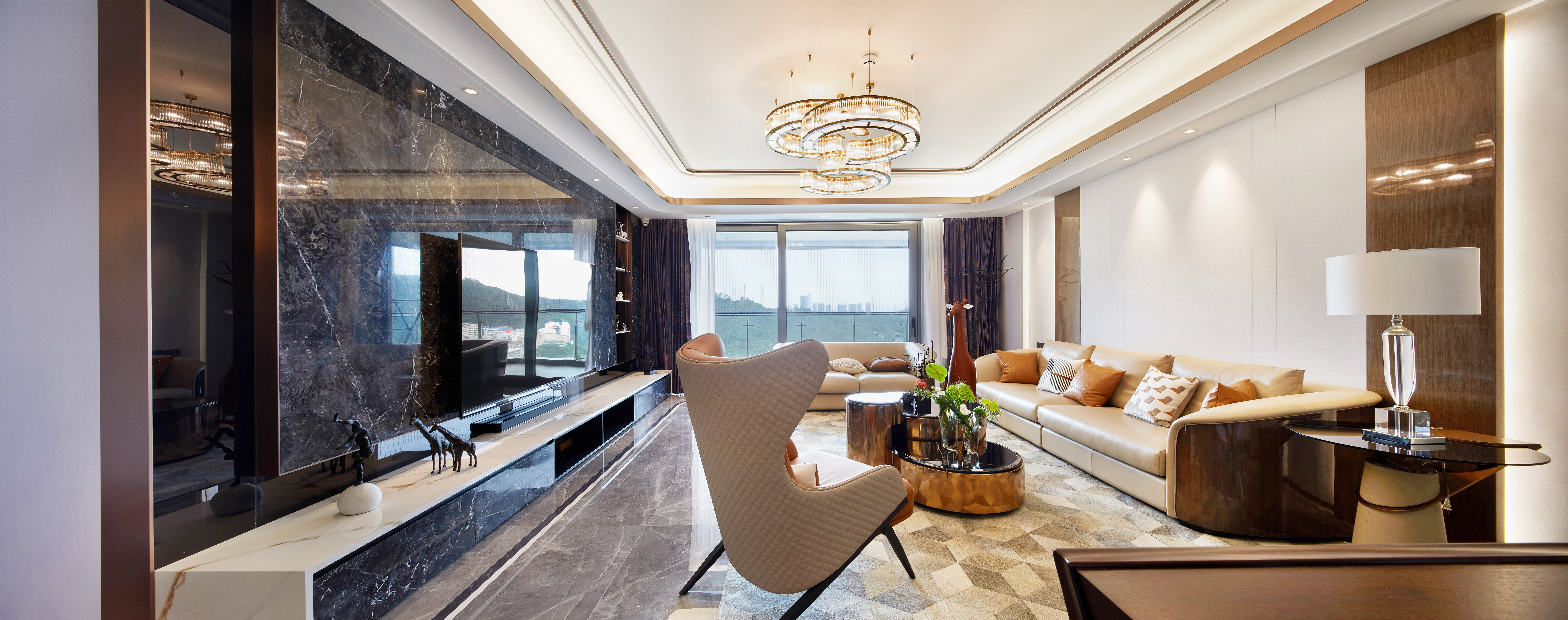 空间意境:遵循简奢原则,以木色作为基调,混合皮革与金属石材作为点缀,以此丰富的层次变化,立体的诠释了生活与现代都市之间的关系,从极简到奢华,从视觉及质感上呈现出多种变化,赋予居室极致的入住体验