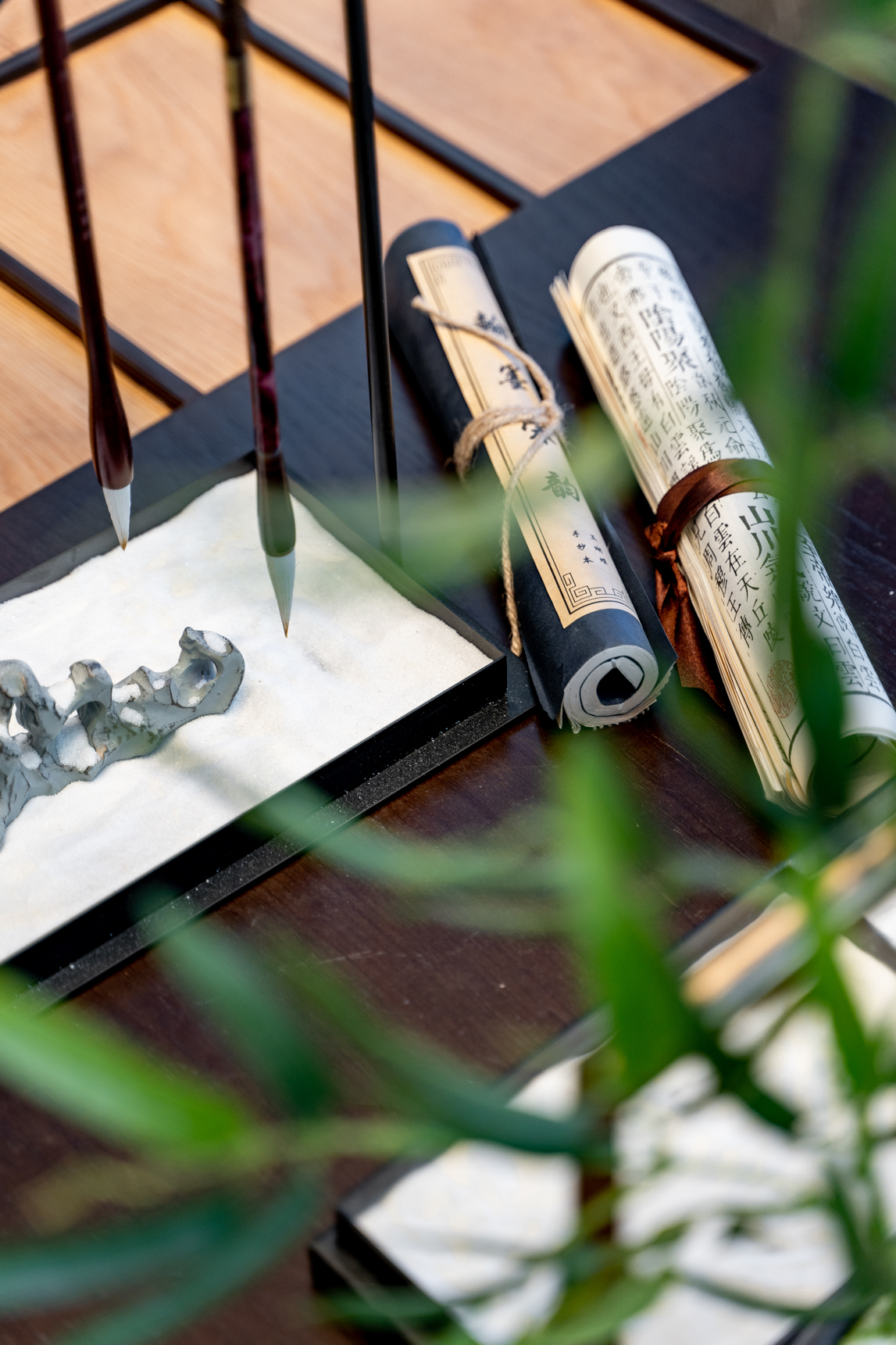 入门伊始,沉淀千年的浔阳文脉扑面而来,大气、沉着的气息在空间里缓缓流动,无水似有水,无山似有山,每一处都是我们与此处山水自然交流的纽带。