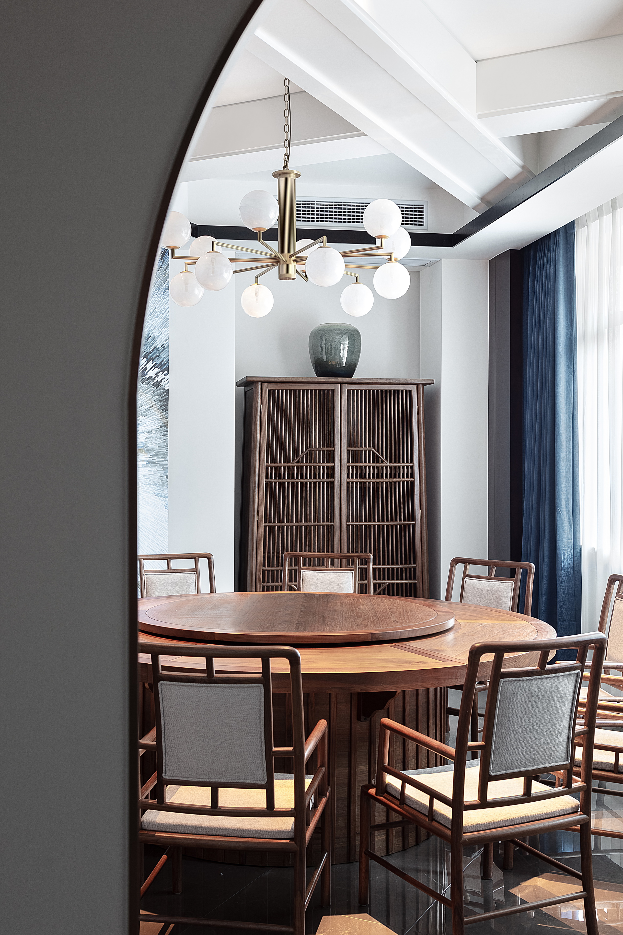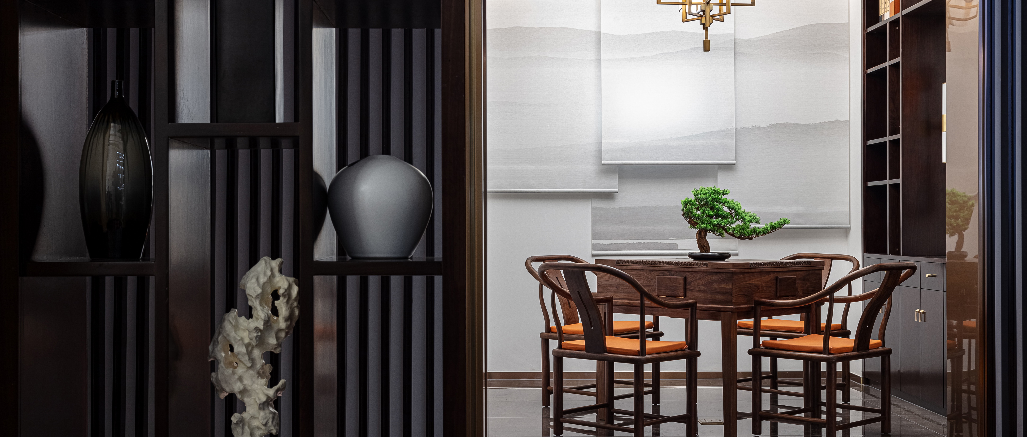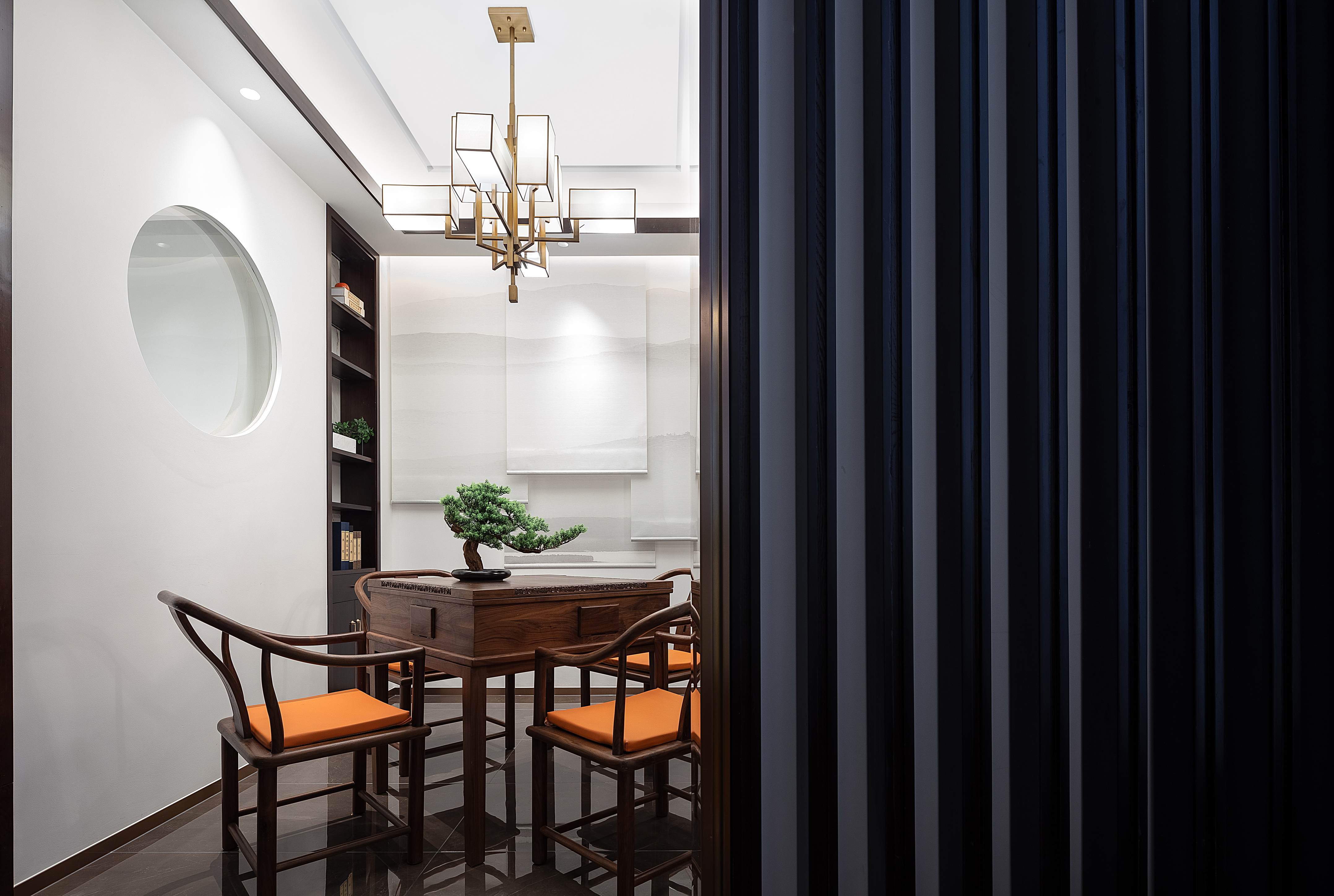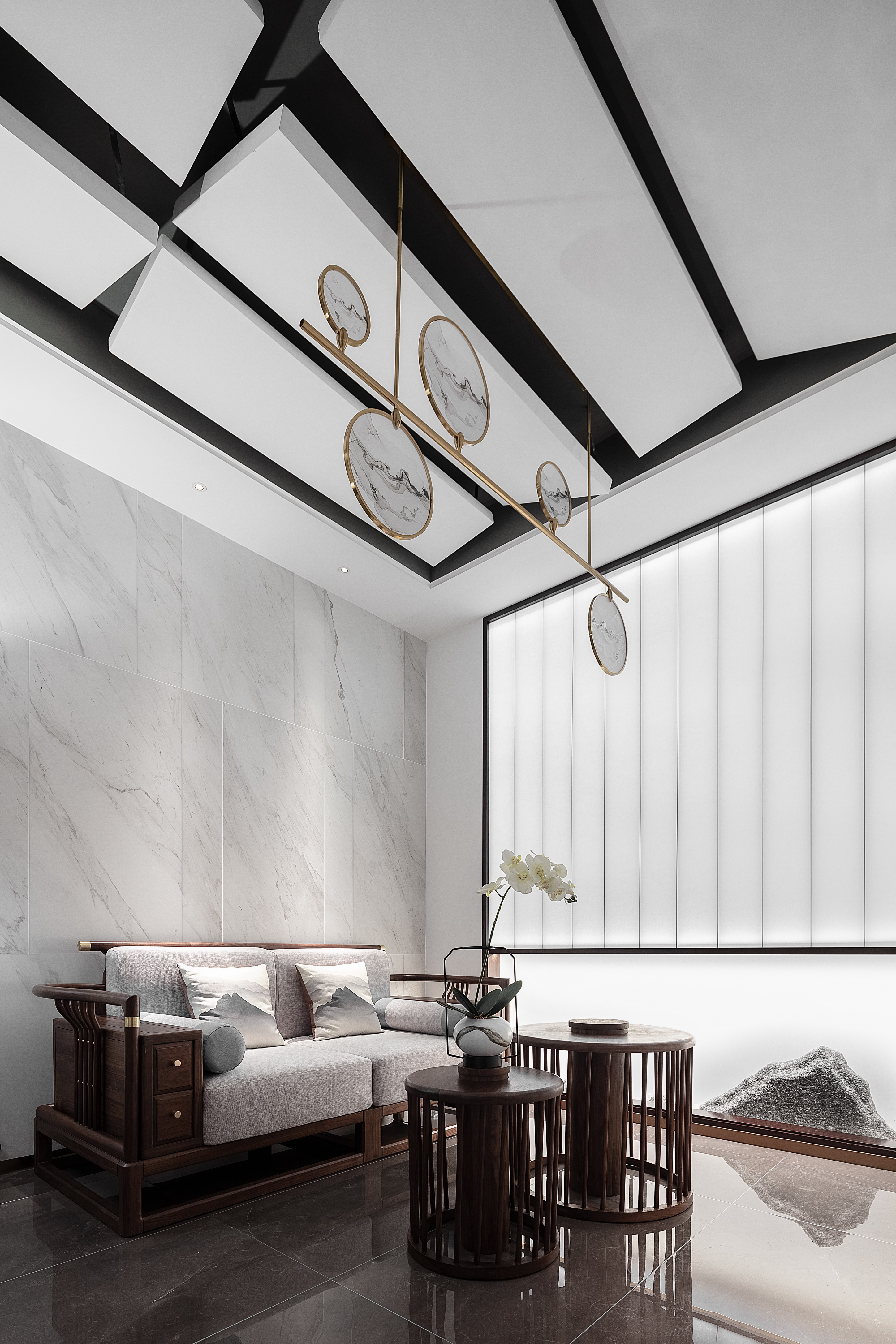 以儒家文化所倡导的“礼”作为设计思考,建立有秩序美的空间,同时赋予它悠然自得的隐士情怀。“蝉噪林逾静,鸟鸣山更幽”,听音赏乐,品茗小酌。