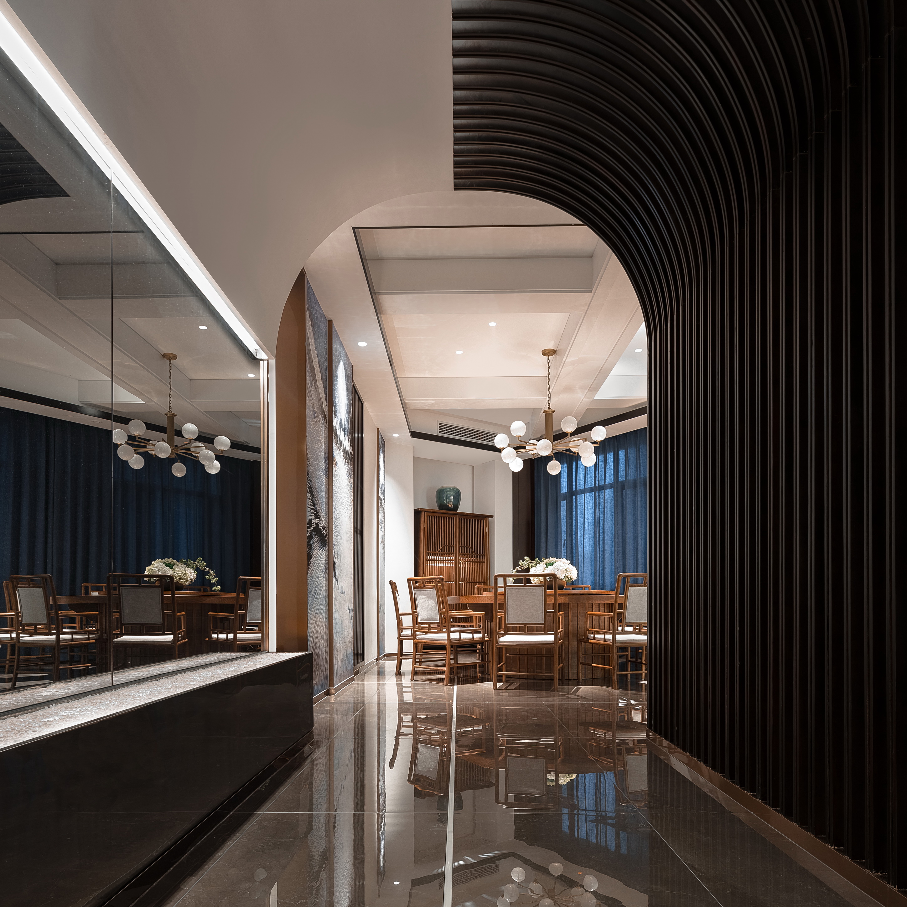 项目定位:项目为私人会所,私密性及客人体验至关重要,“序曲”作为空间设计脉络,加以延伸和梳理,运用对比性和规律性的设计表达方式,使其文化气质与内在秩序和谐统一,旨在打造亦动亦静的空间韵律。