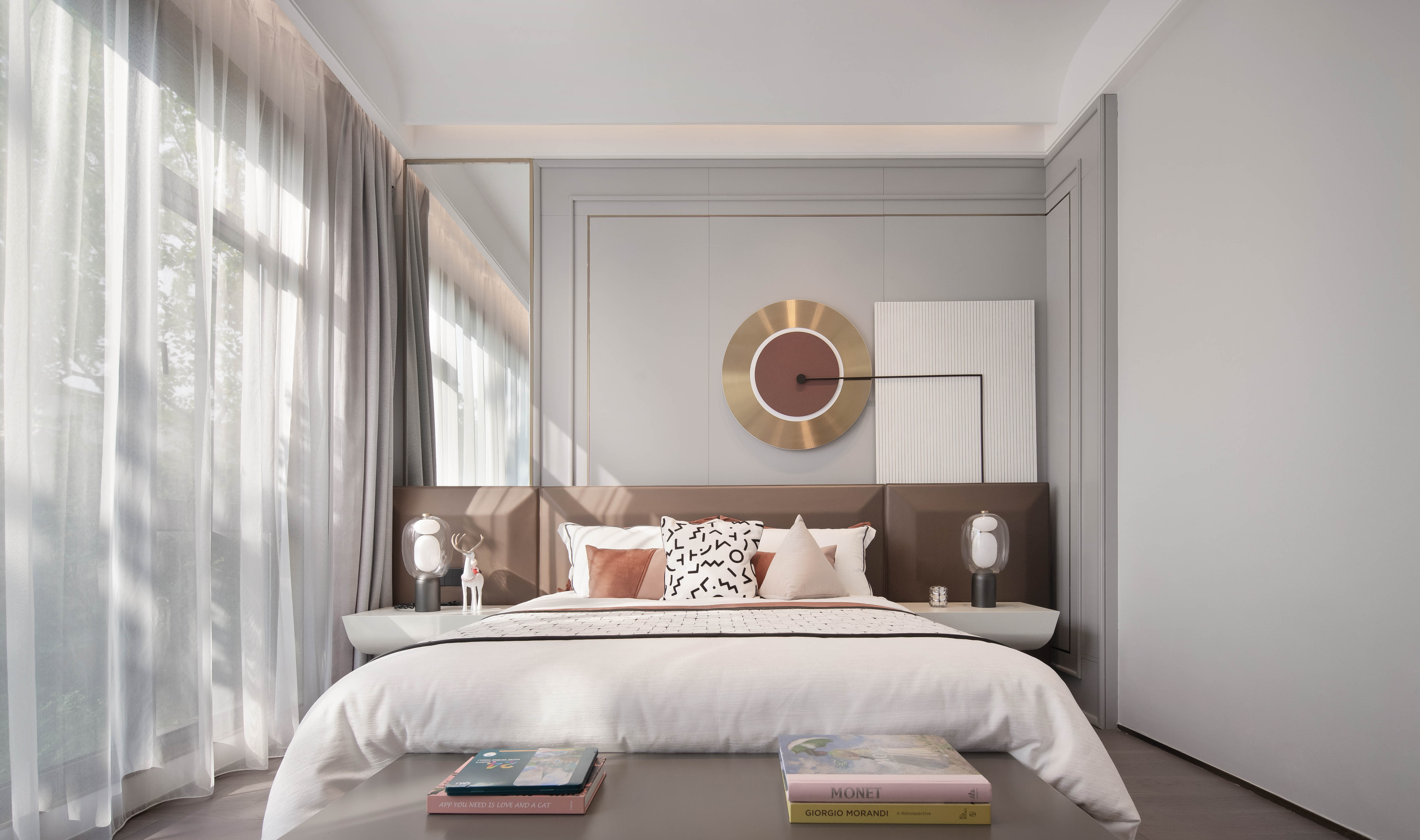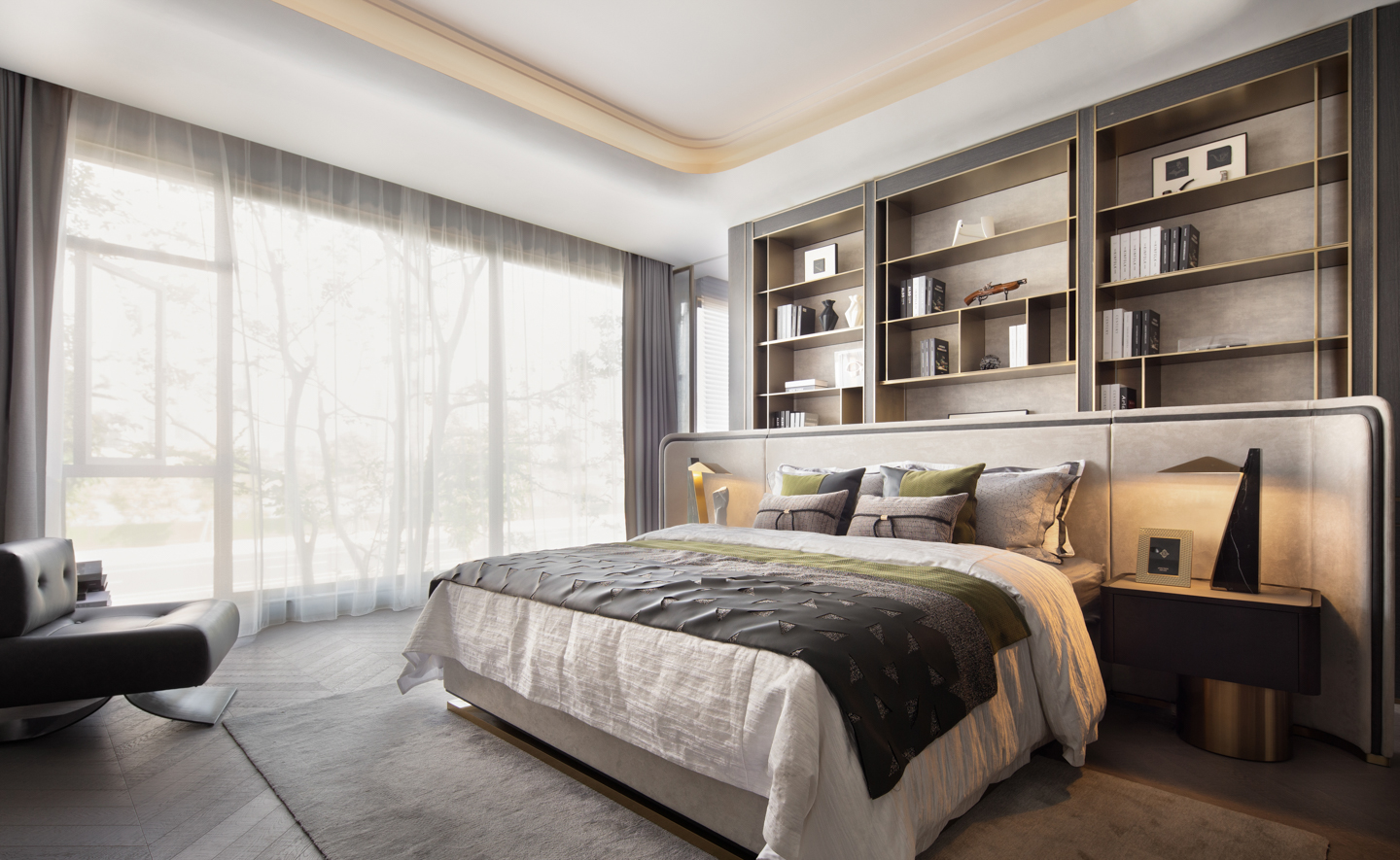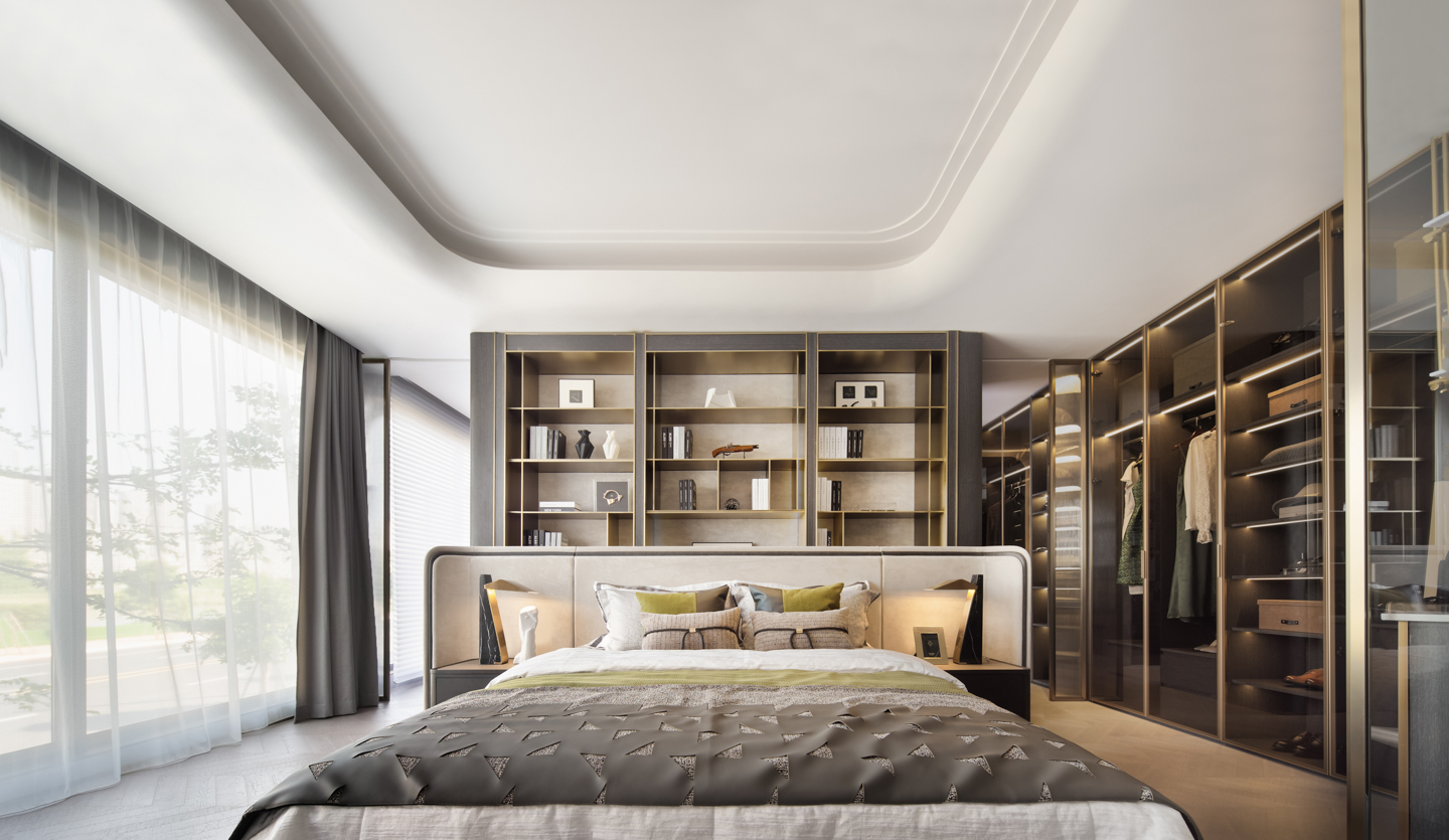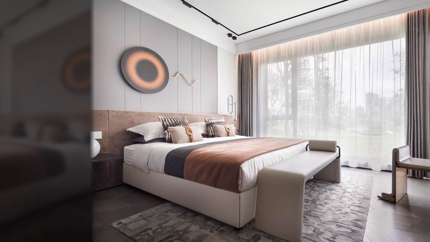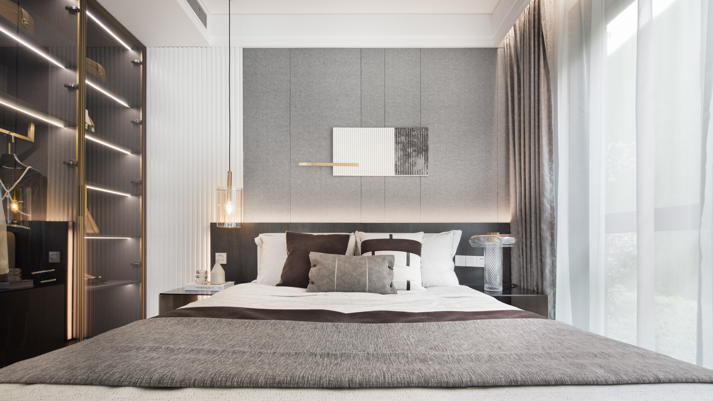 阳光正好,清风微拂,自然与艺术的对话慢慢发生。空间配置中性色调为主的弧线角宽屏床,雅致的格调被艺术的笔触描摹、铺叙,使美学的体验达到最大化。