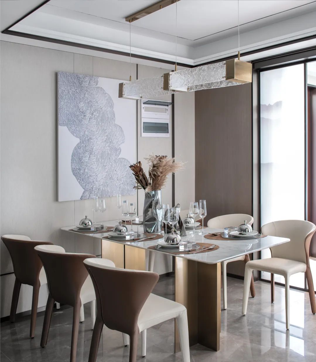 极具现代感的家具形态,搭配东方文化底蕴中诗意般圆润清和的气息,每一个的细节处理,都成就了高级的仪式感。