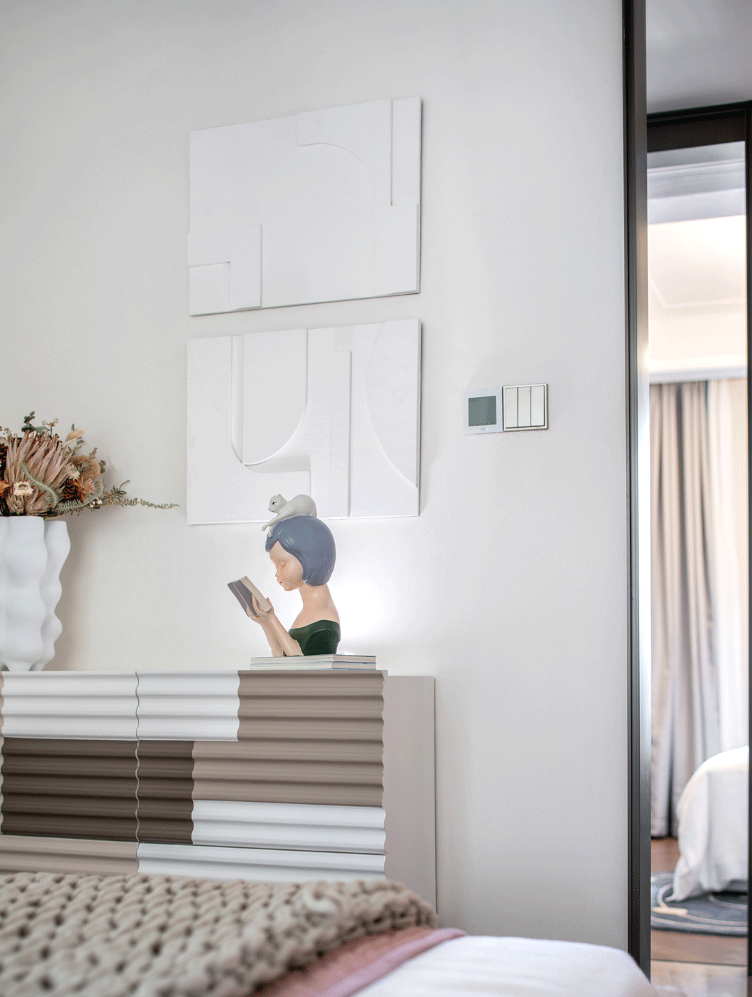 以典雅为伴,诠释现代风华,以简约几何交织,简约而不简单,用情感重构生活场景,文化与生活交融无间,表达对家的热爱与艺术的执着。