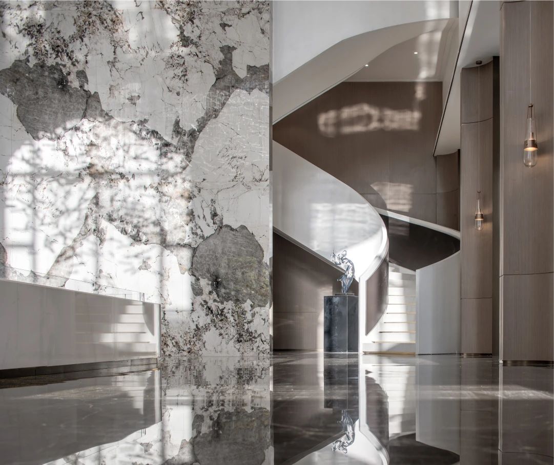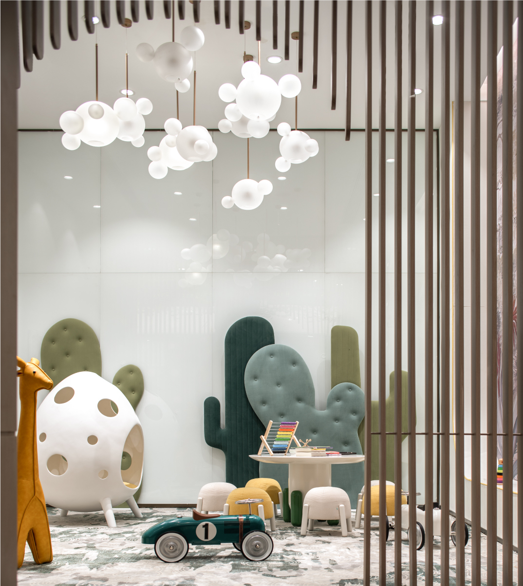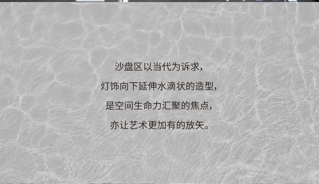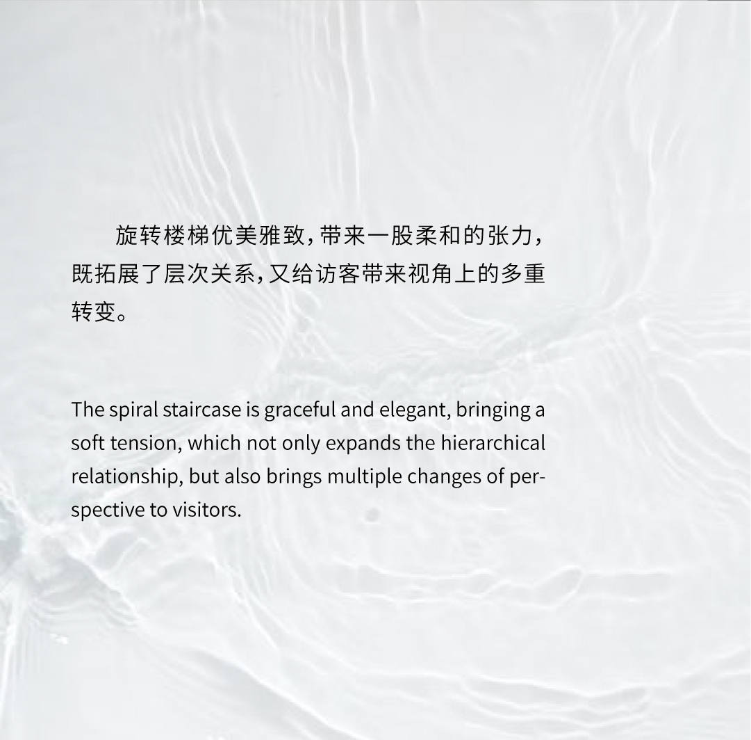 空间布局:开放性的动线布局体系,实现各功能区的穿插交汇,满足了适用人群在空间内的体验感,关于城市的理想和变迁,室内空间的有序转换,收放的递渡有法,传递着一种细水长流的浸入感与时间的流动感。