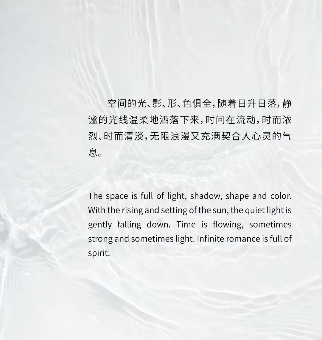 用户体验:光影在其间变换,空间以素雅的色泽,纯粹的用材和通透的格局,独立尊享,展现了一种艺术感和现代之美。
