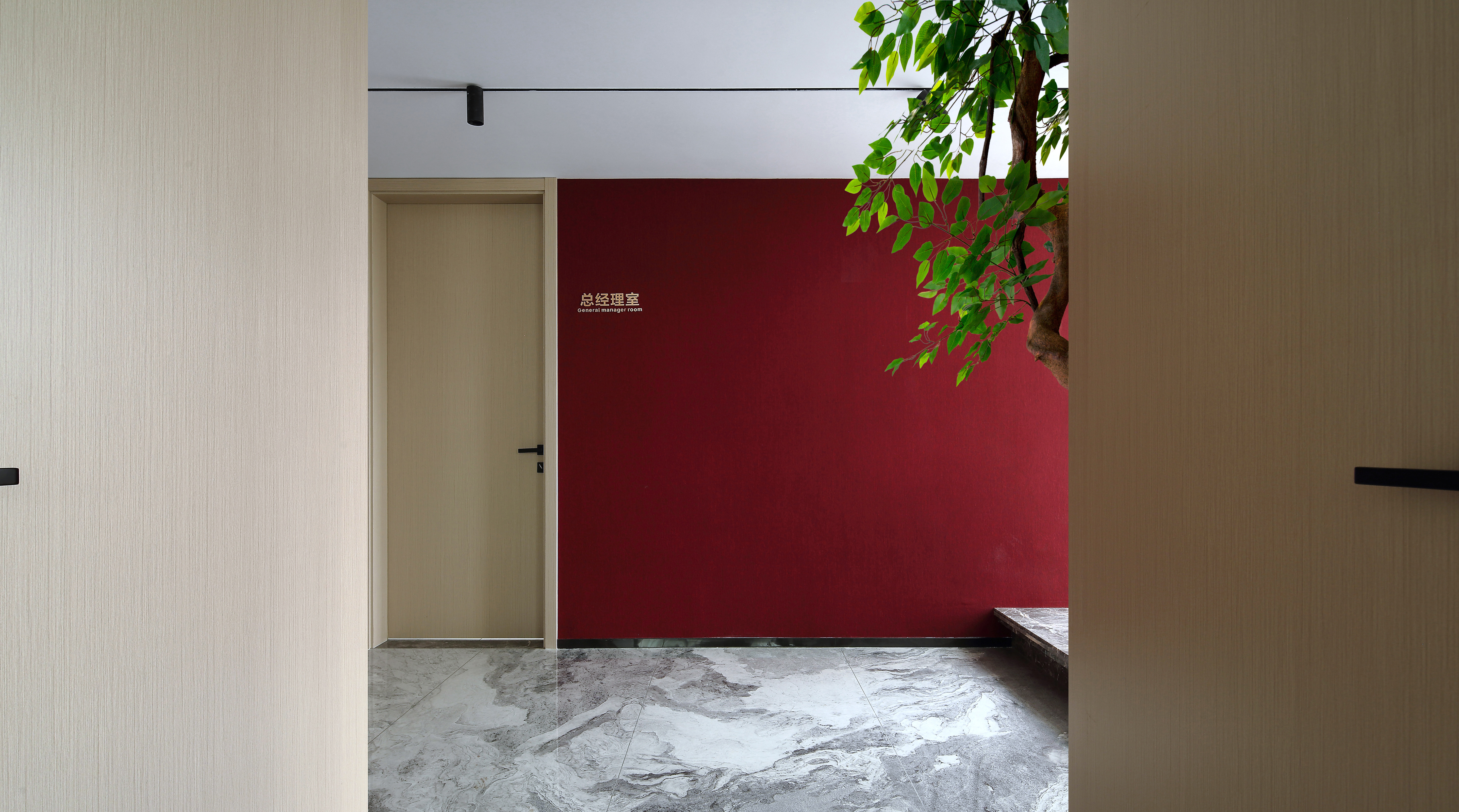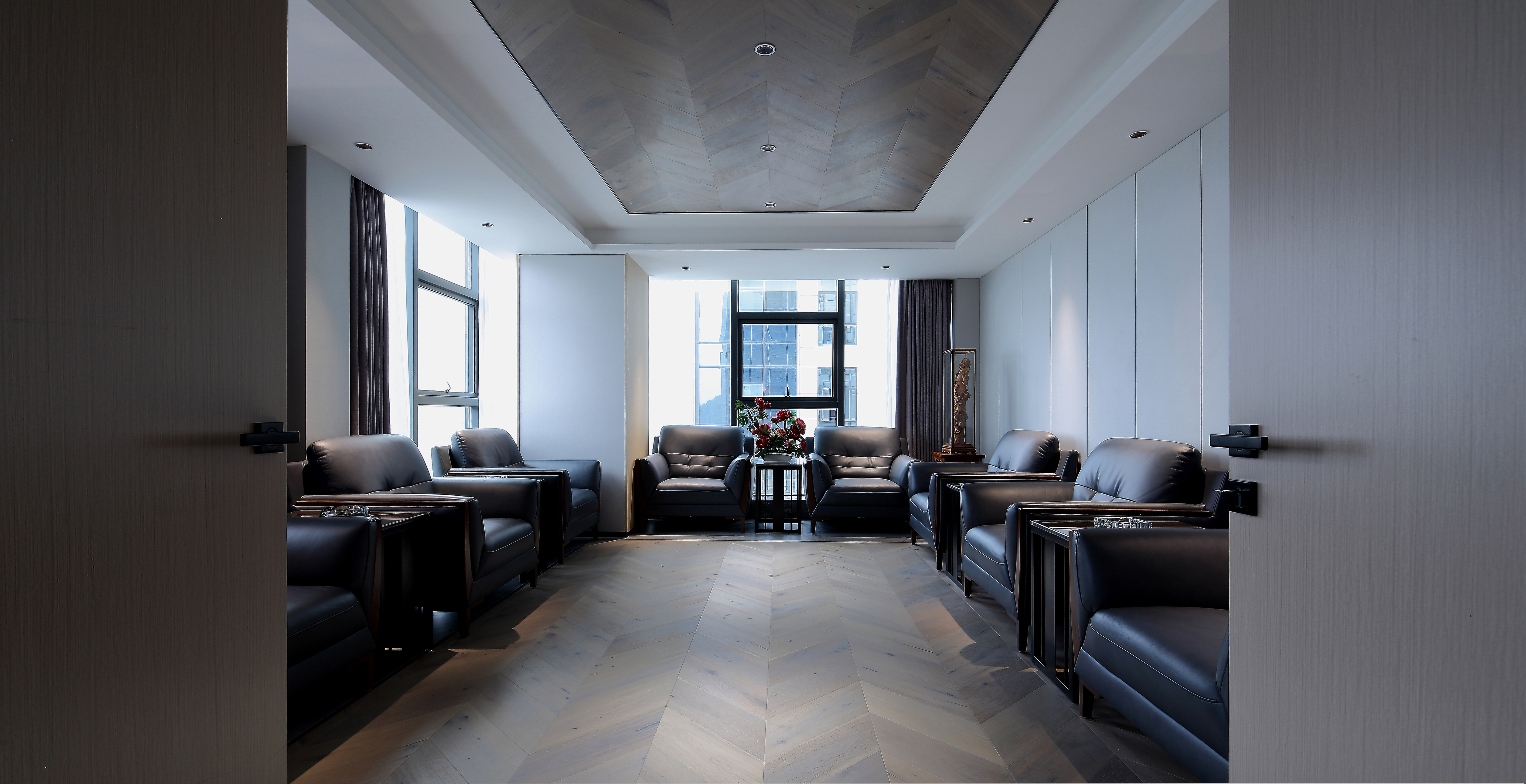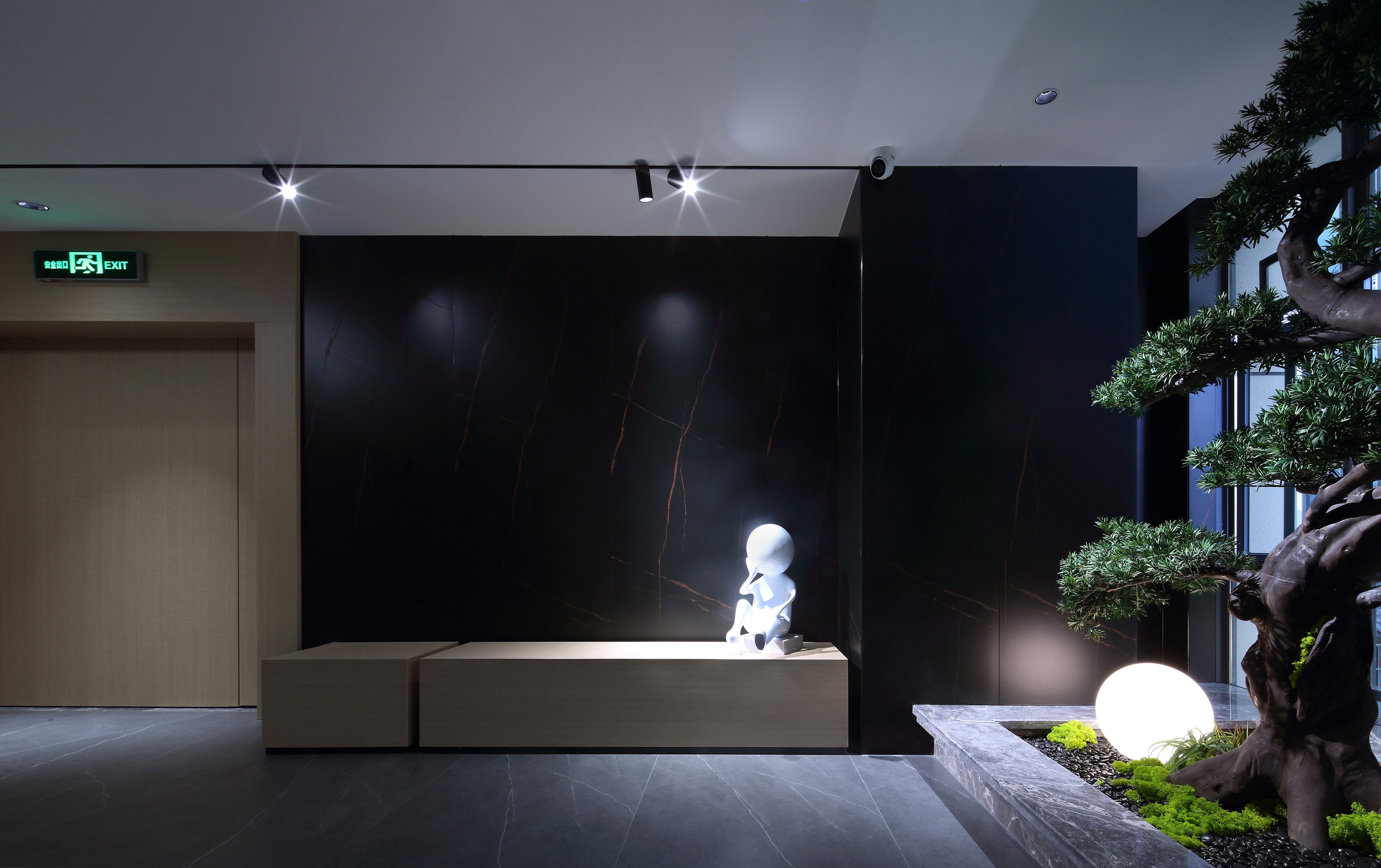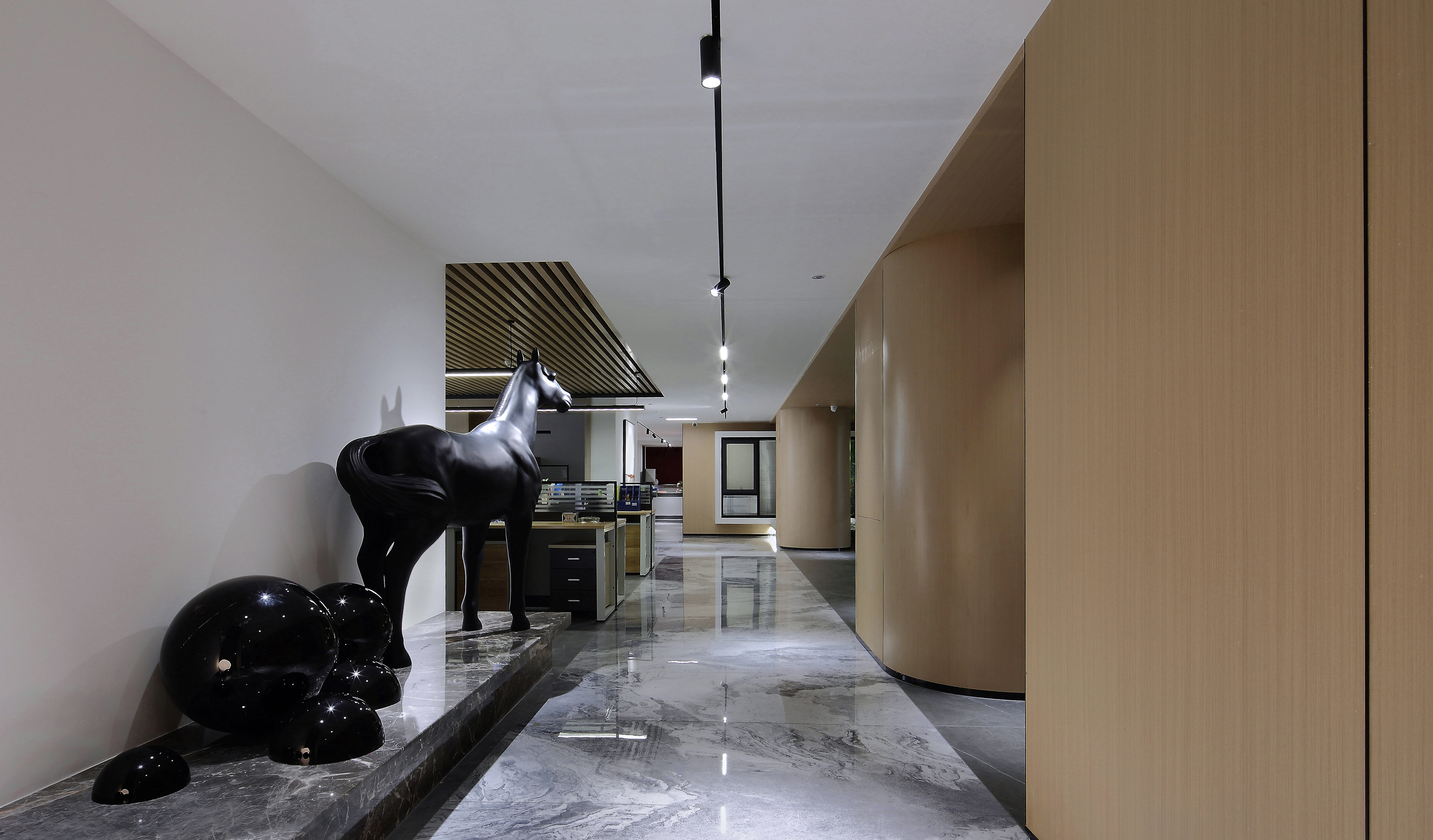 项目定位:设计理念源于陶渊明的《桃花源记》,色调上先抑后扬,豁然开朗。电梯厅墙地面800MM*2400MM的大块面深色岩板墙面,过渡色浅色木饰面墙、顶造型延伸至等候区、走道,庄重而时尚,空间简练而富有内涵。隔而不断的造型是为了保证空间的独立性基础上,增加空间穿透感和映入室外光影,最大限度的减少灯光照明,低碳环保,同时形成一个既相互独立而又相互连贯的空间系统。