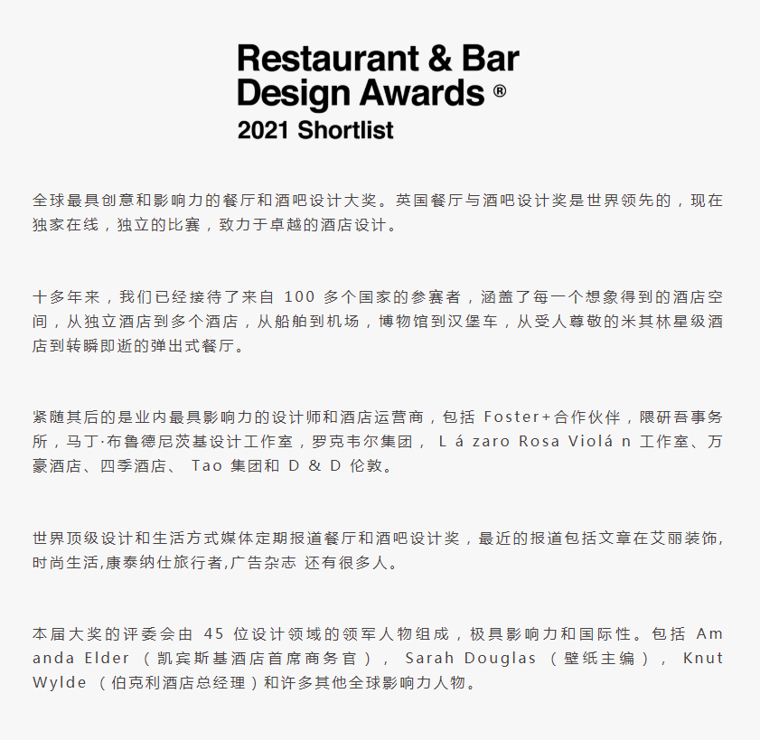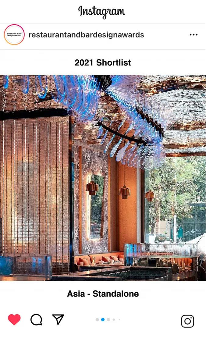 应物象形作品入选英国2021Restaurant&Bar Design Awards大奖