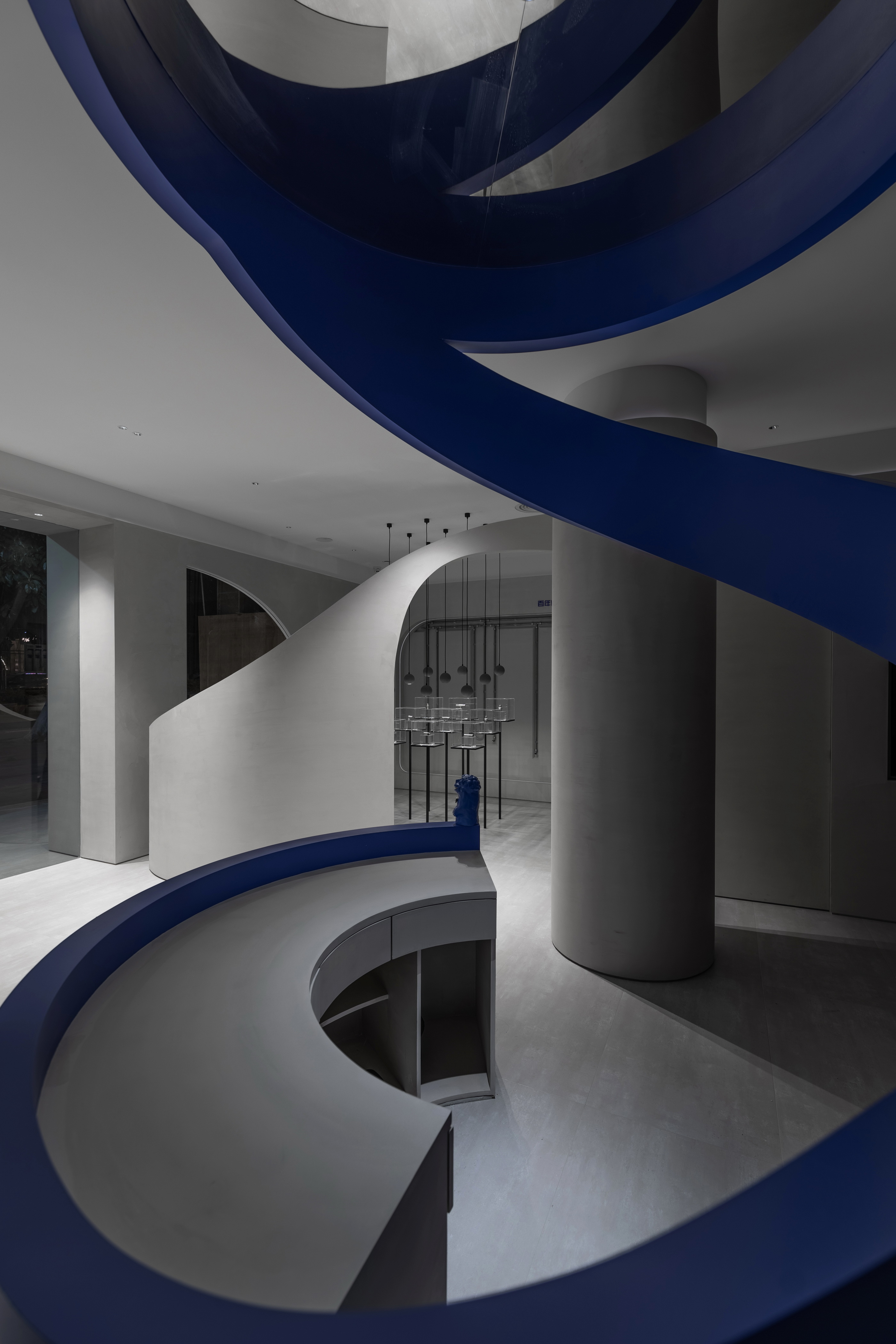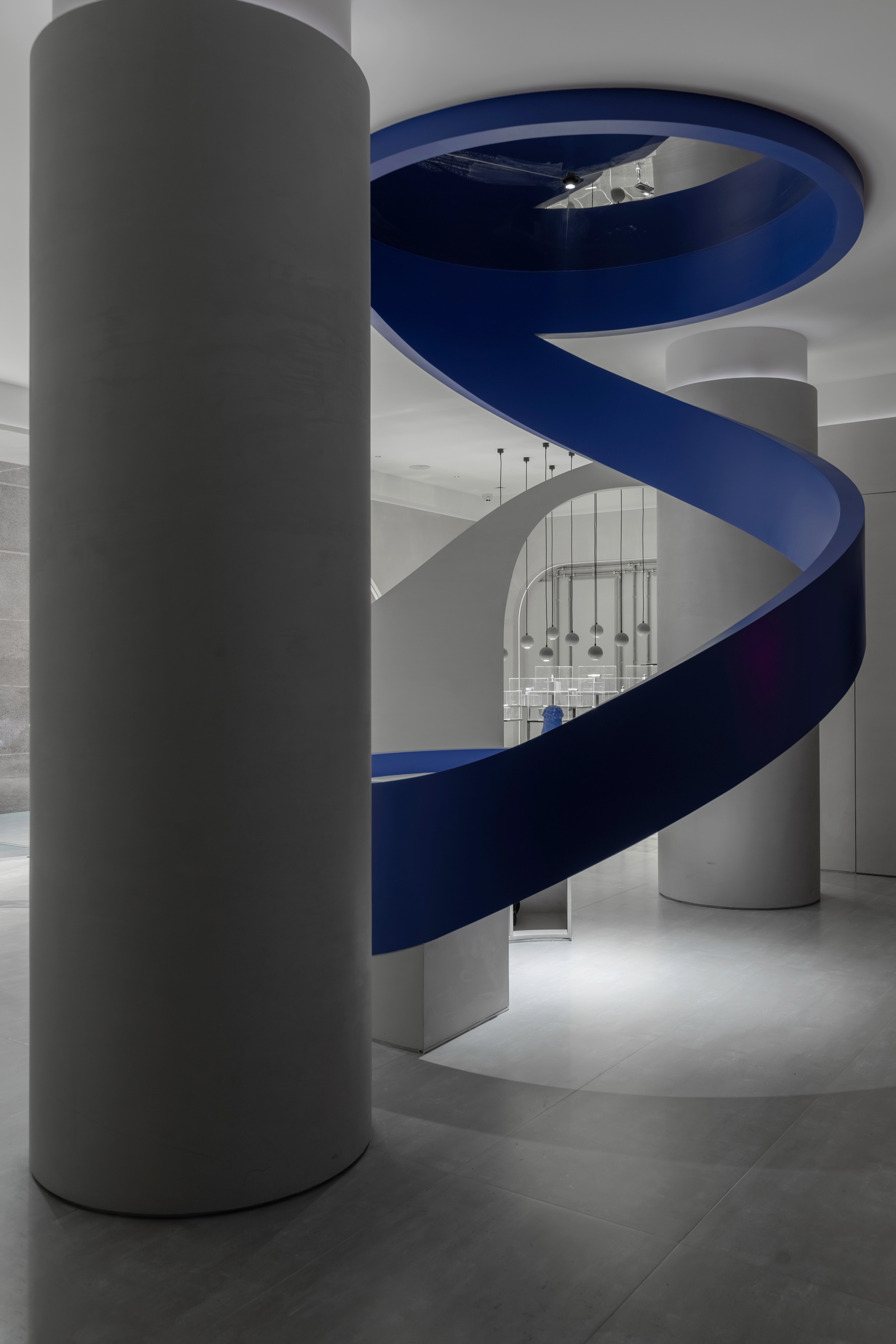 展示空间讲究的是人与物的交互,设计师用波动的方式使空间的展示路线呈现出自然、律动的变化形成多种墙体。给人于不一样的展陈体验感。