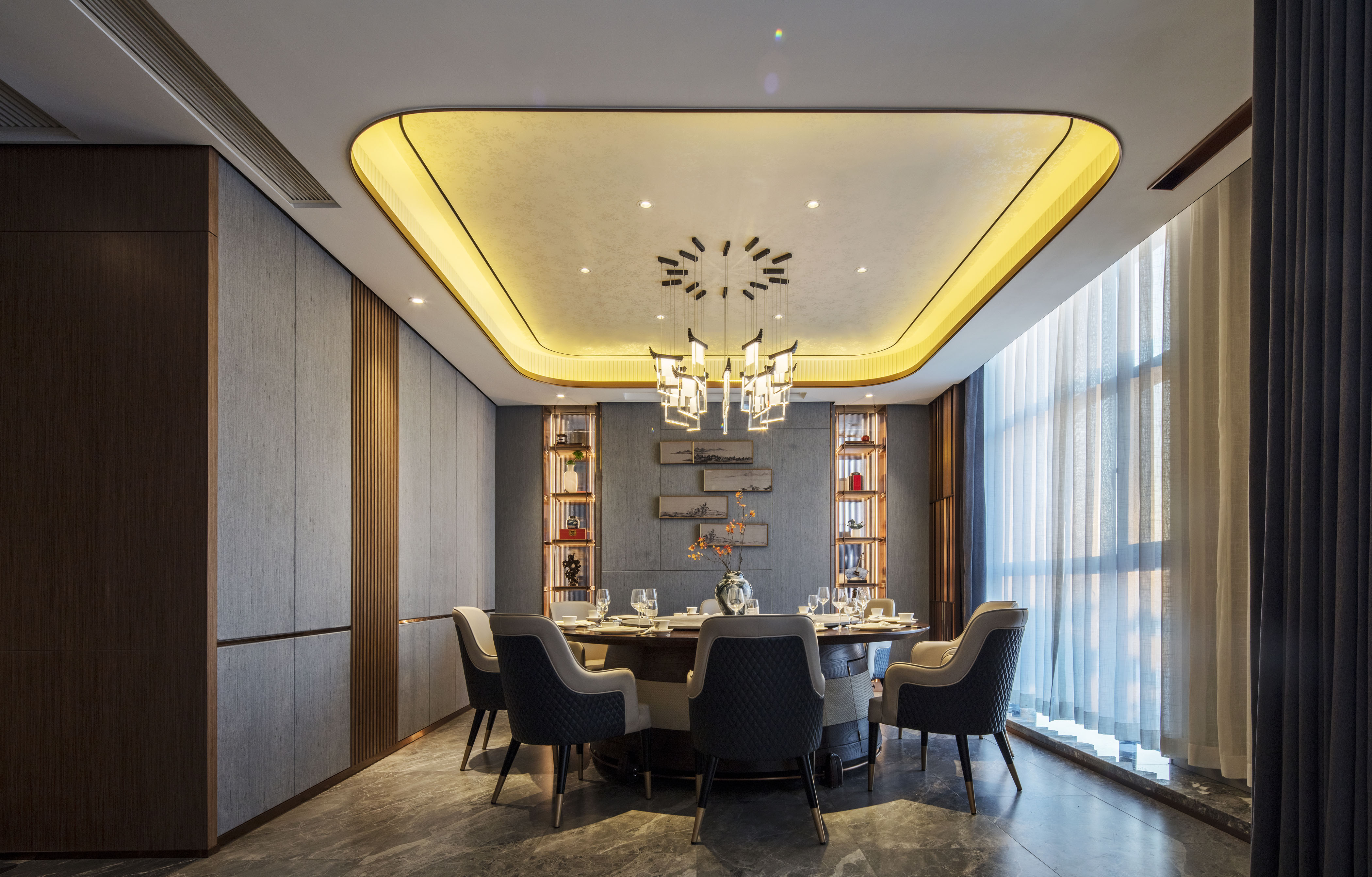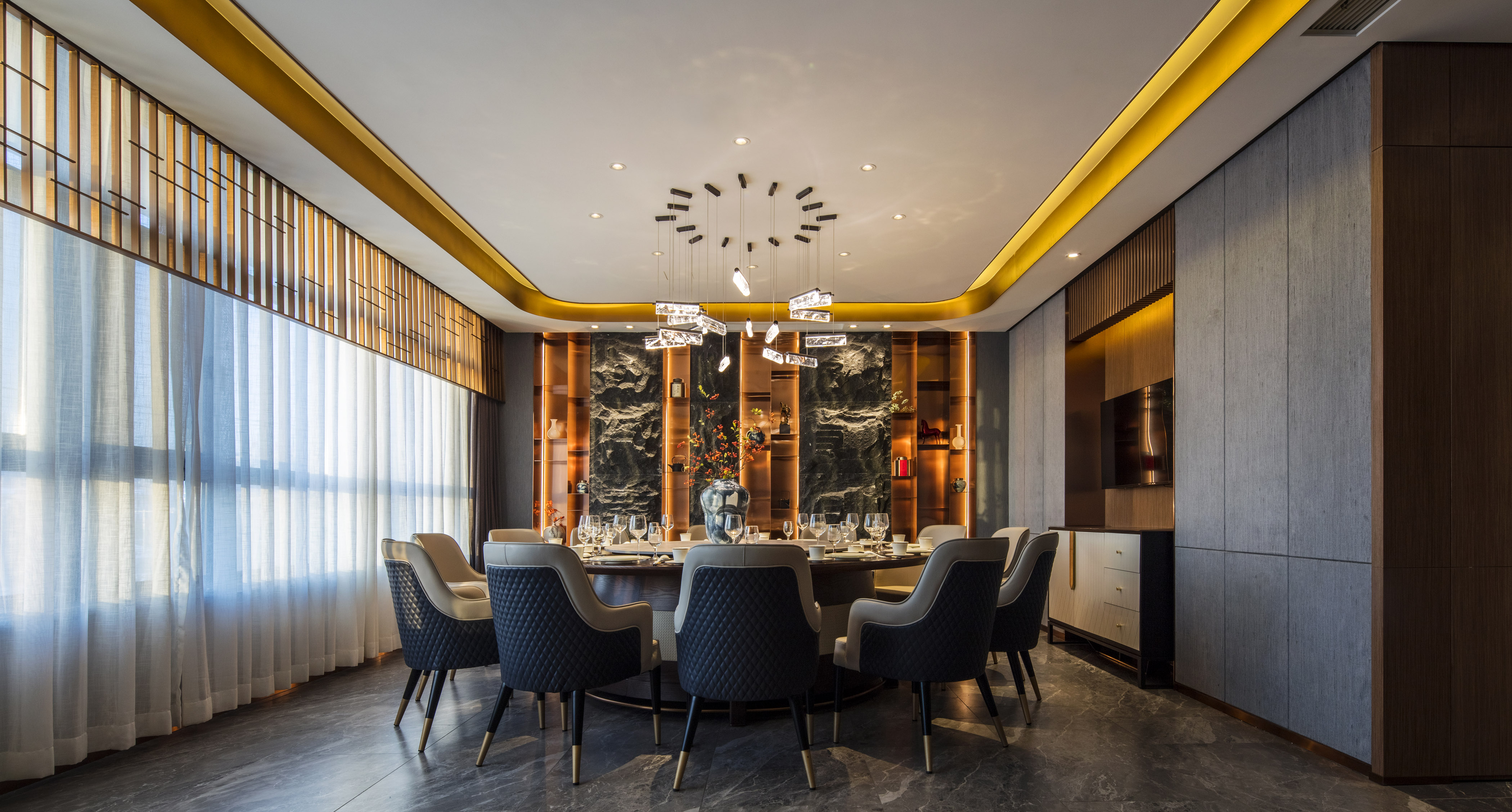 用户体验:氛围营造,设计师基于“自然东方,诗意人文”的理念,真正为客户营造出具有东方美学的就餐空间。