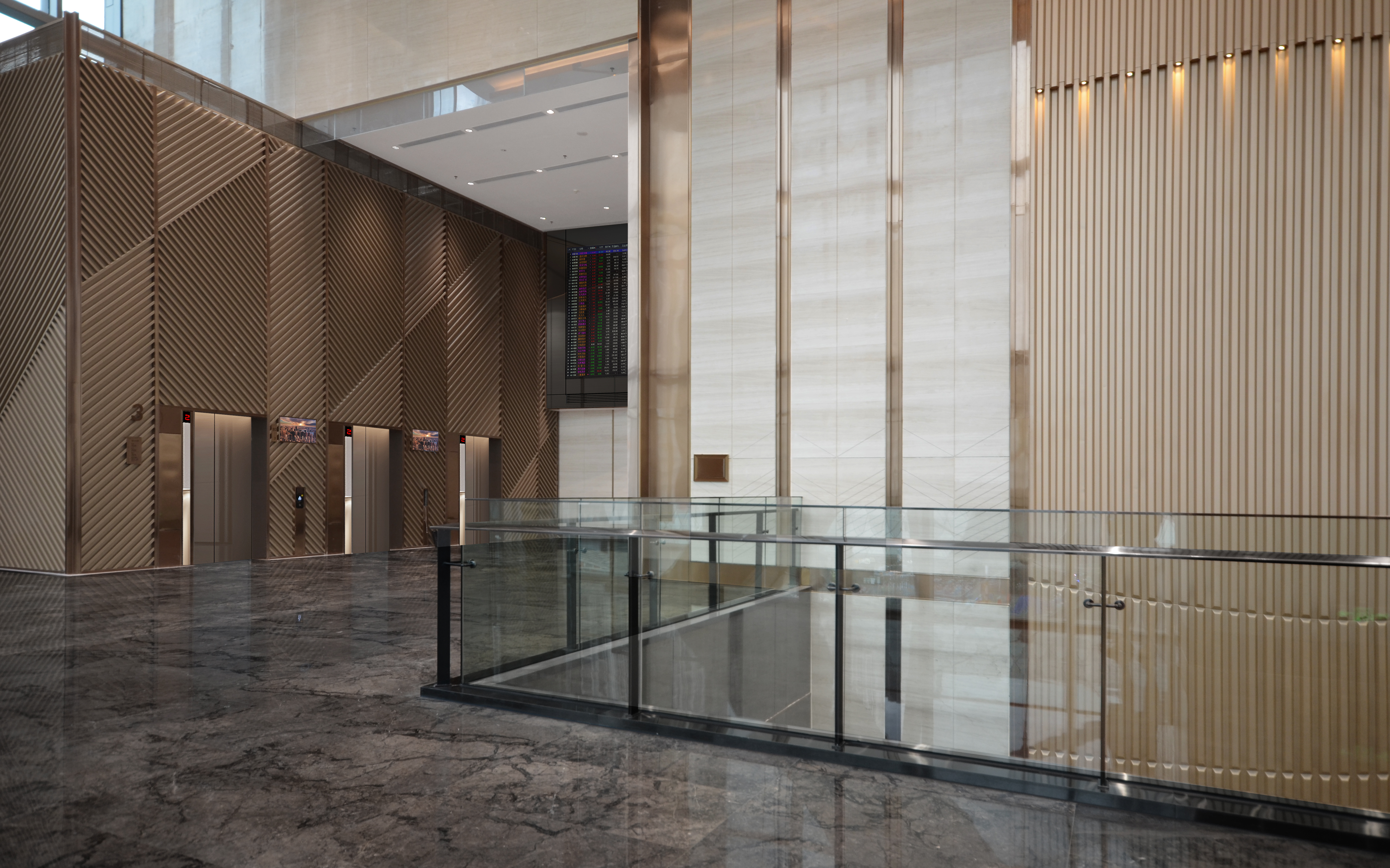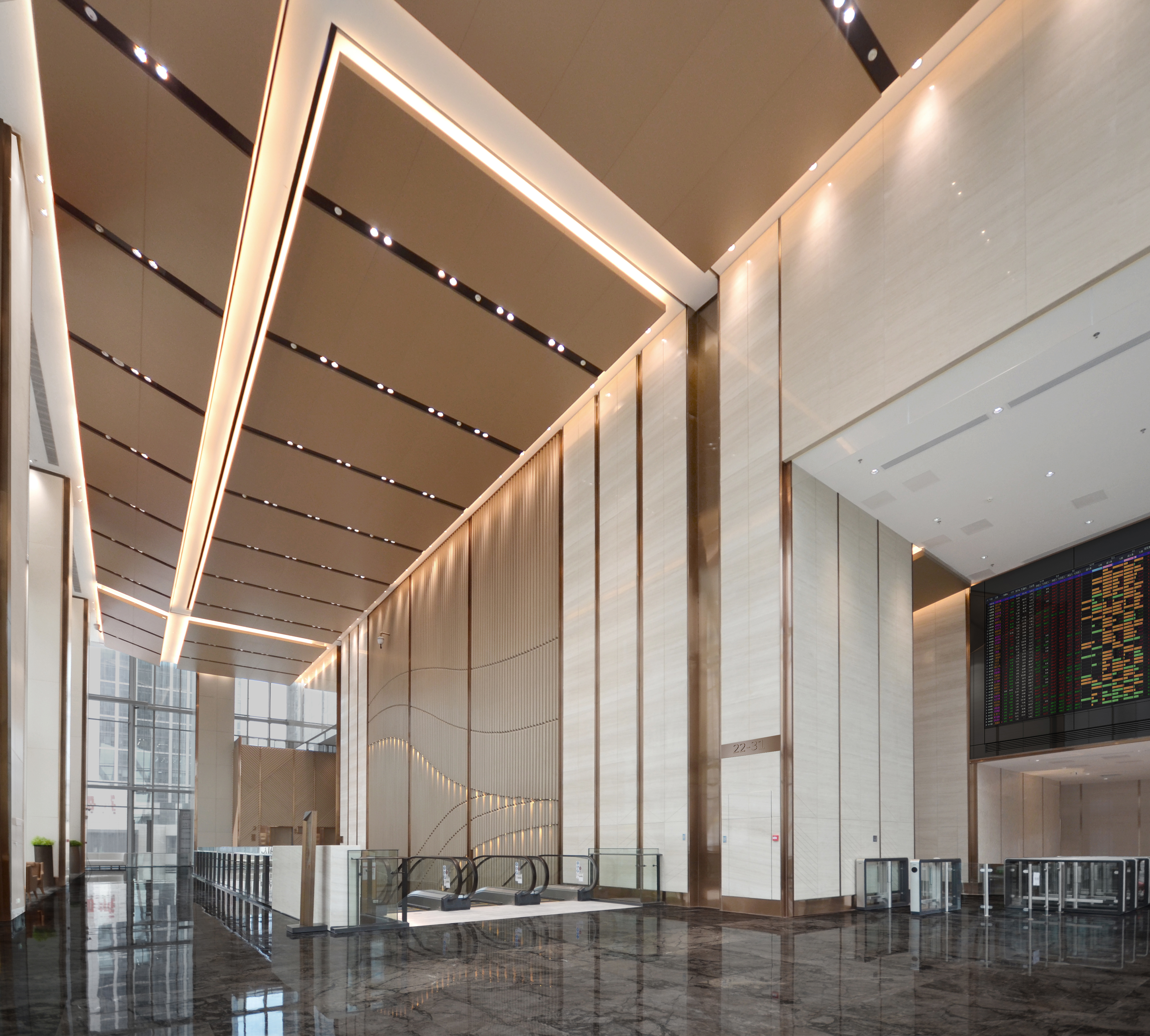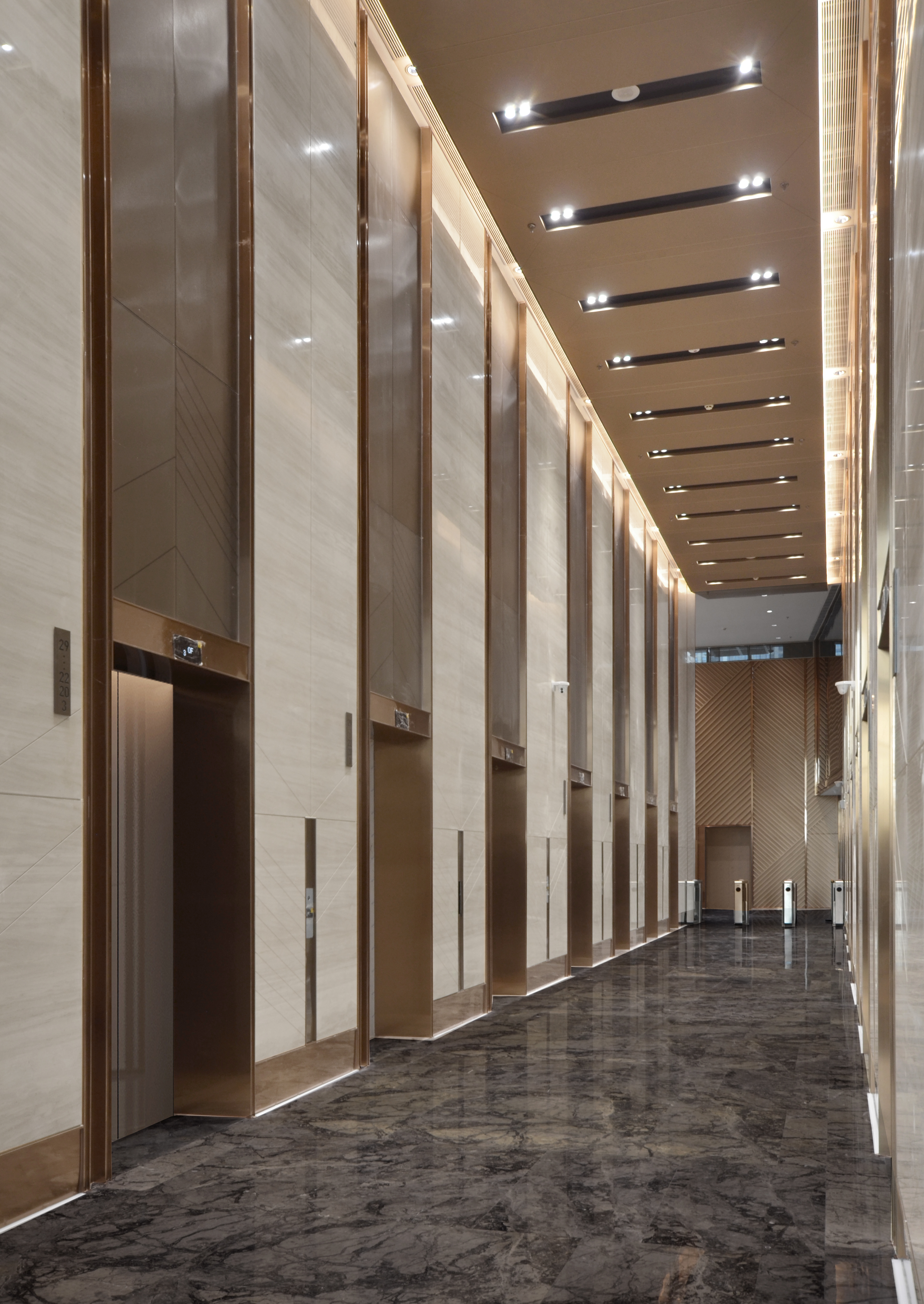 10米层高的核心筒中央电梯厅打造具有全球性商业办公目的地和文化艺术新地标。