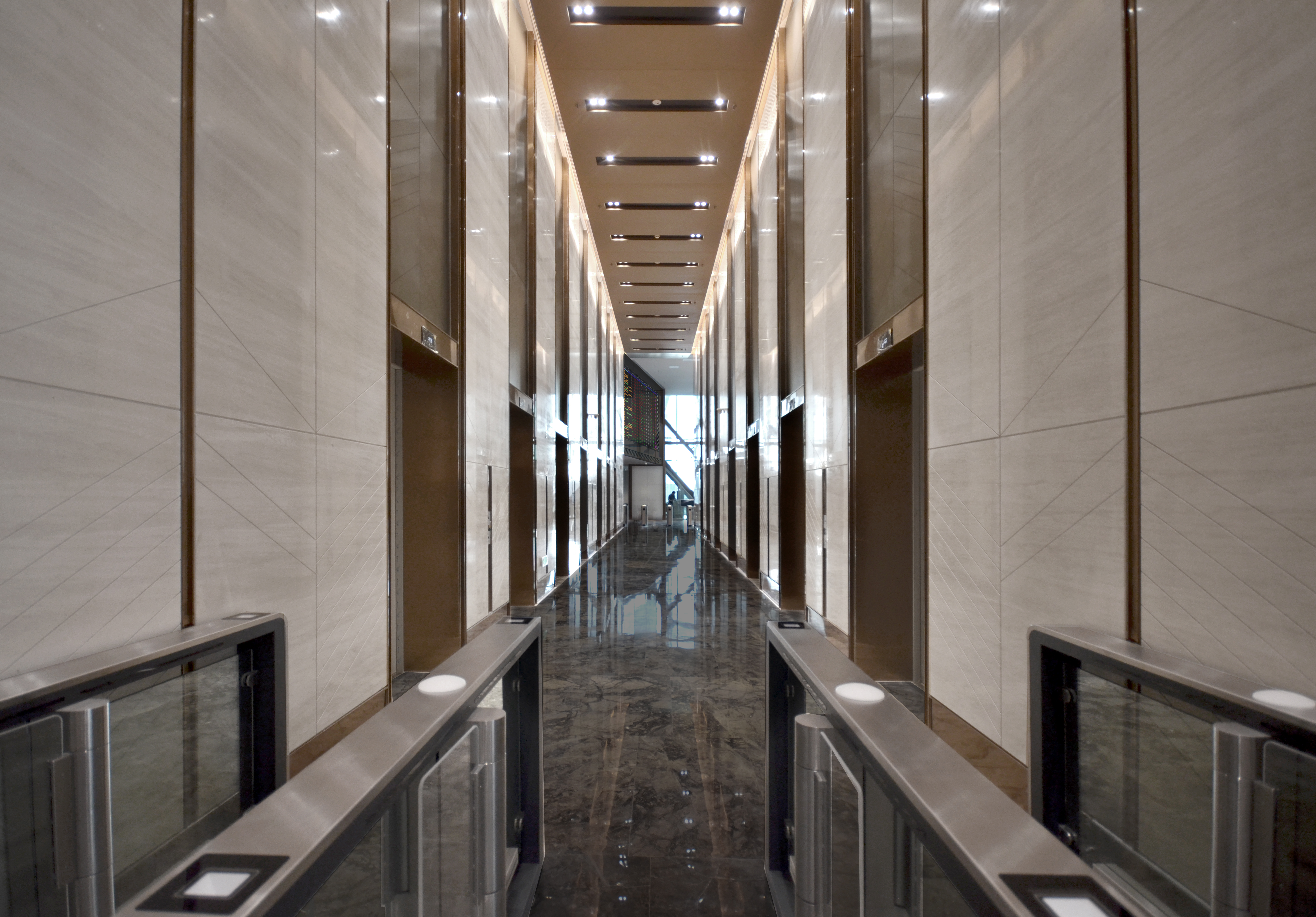 一层为次大堂,通过垂直电梯及手扶电梯连接三层主大堂