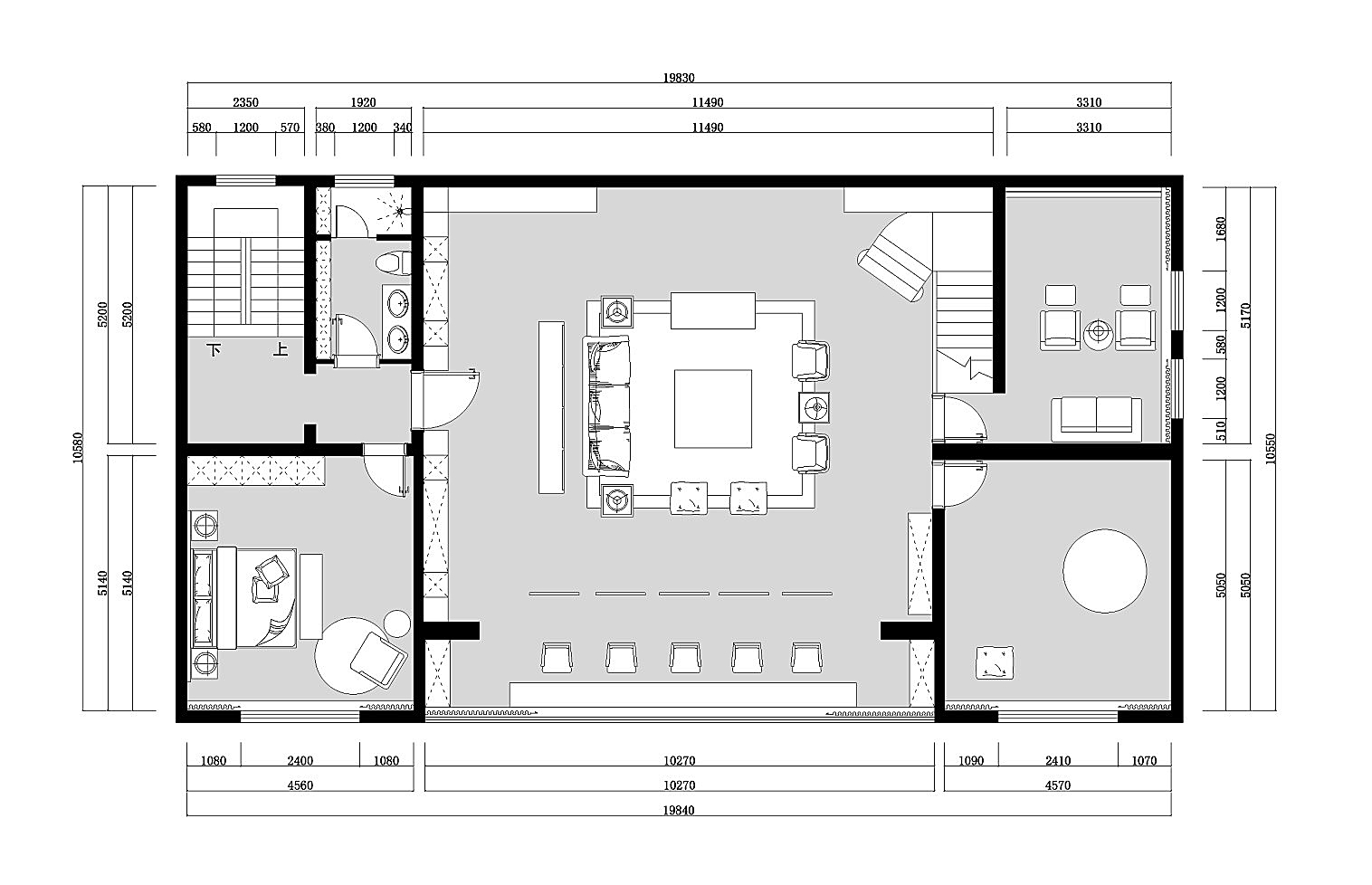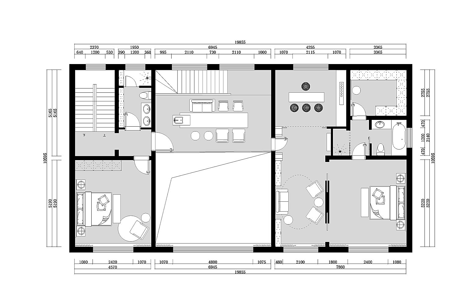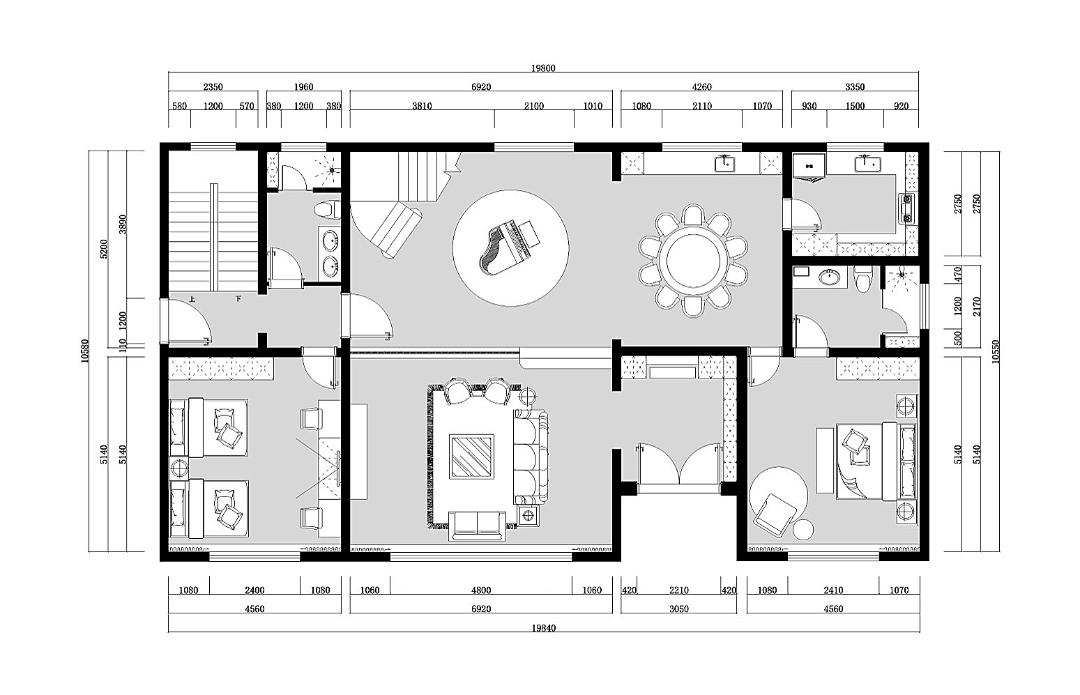 空间布局:空间多采用对称式的均衡布局,端庄稳健,格调高雅,造型简朴优美。