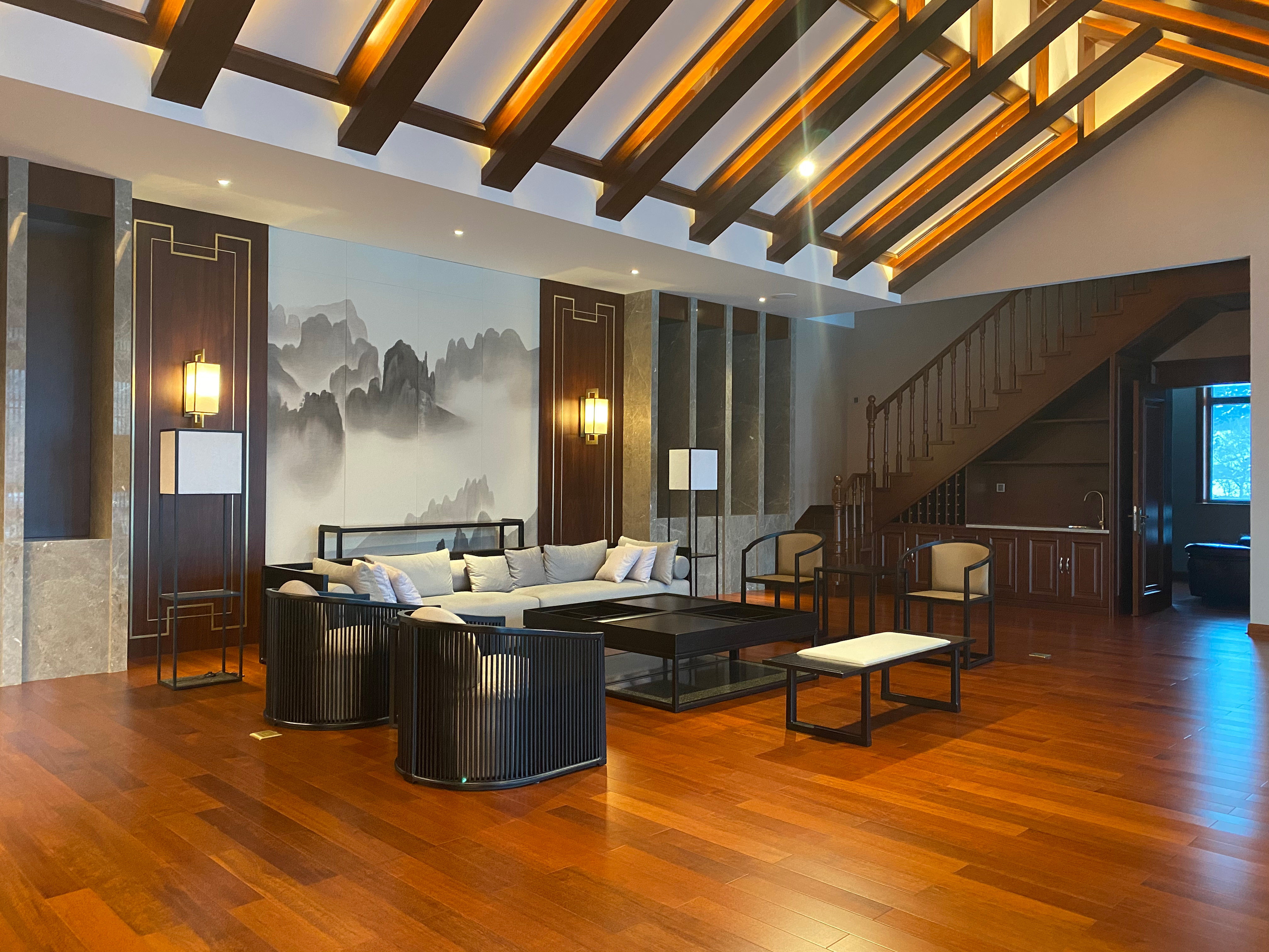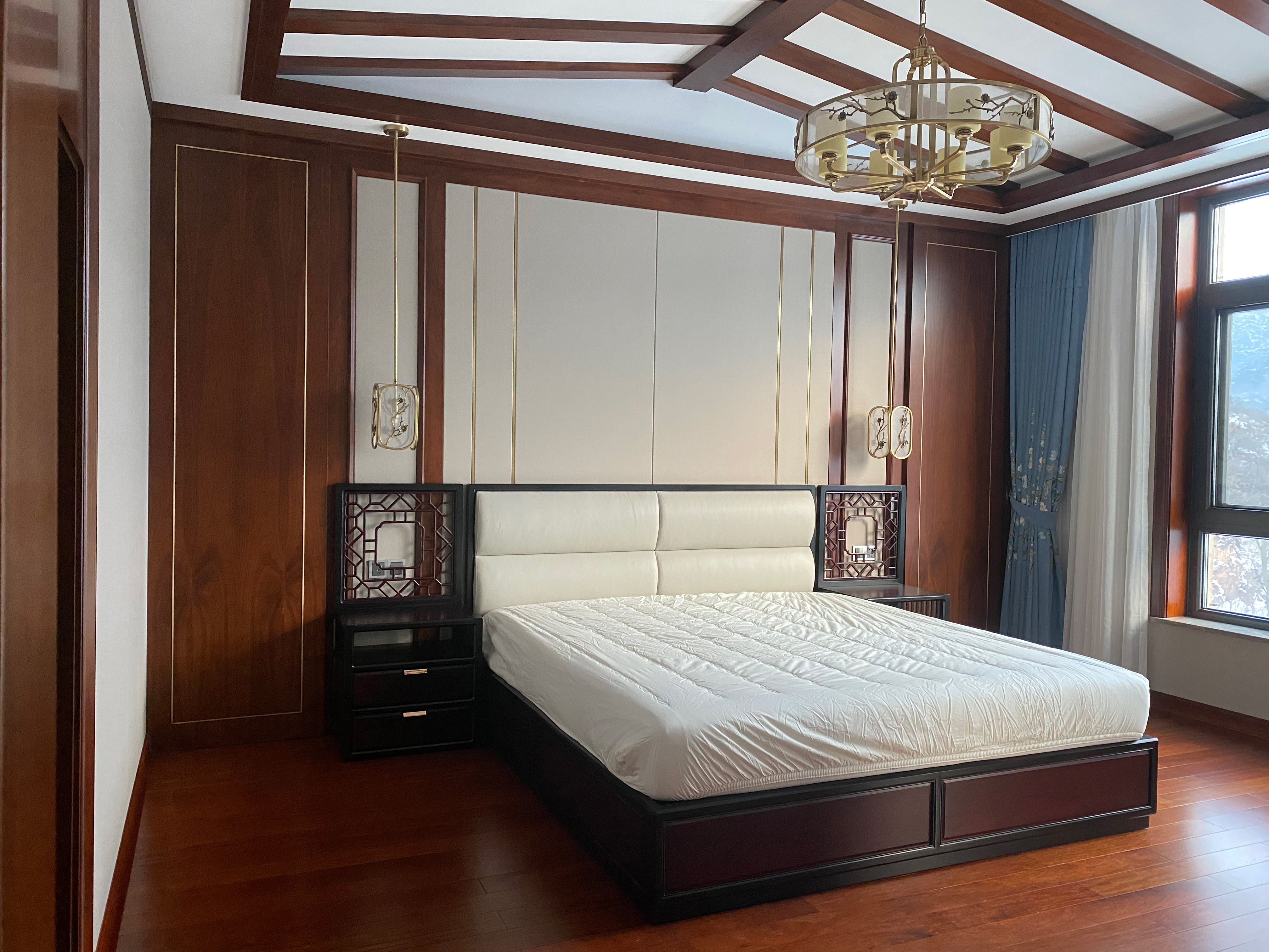 项目定位:保留原建筑的特色,结合新中式风格及实用性,设计中关注传统生活、文化习俗和精神意识层面的重组思考,发扬传统精华空间的继承