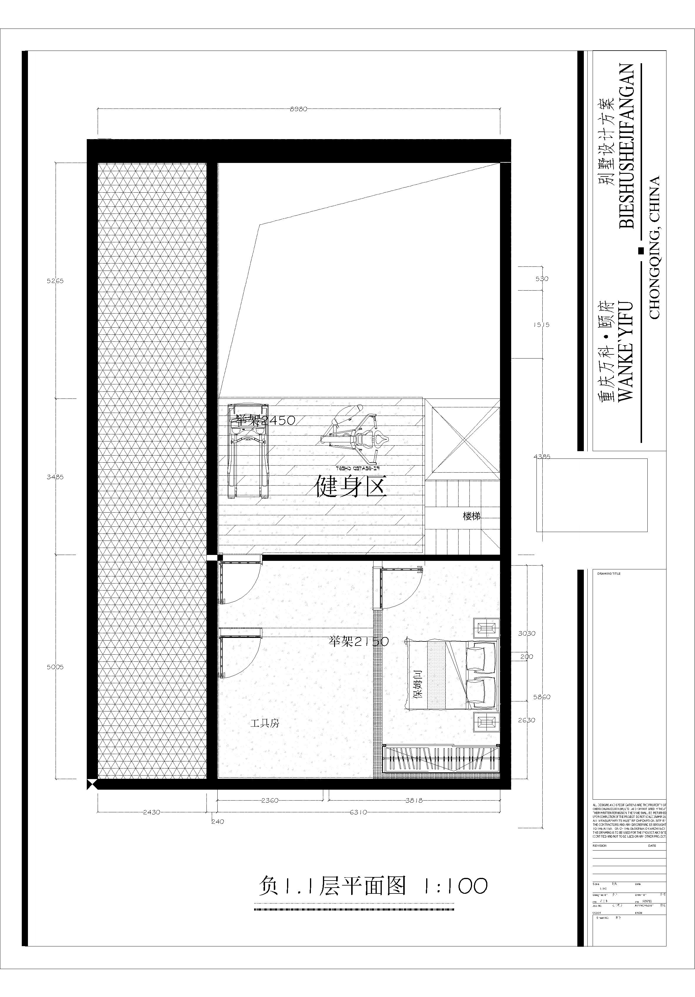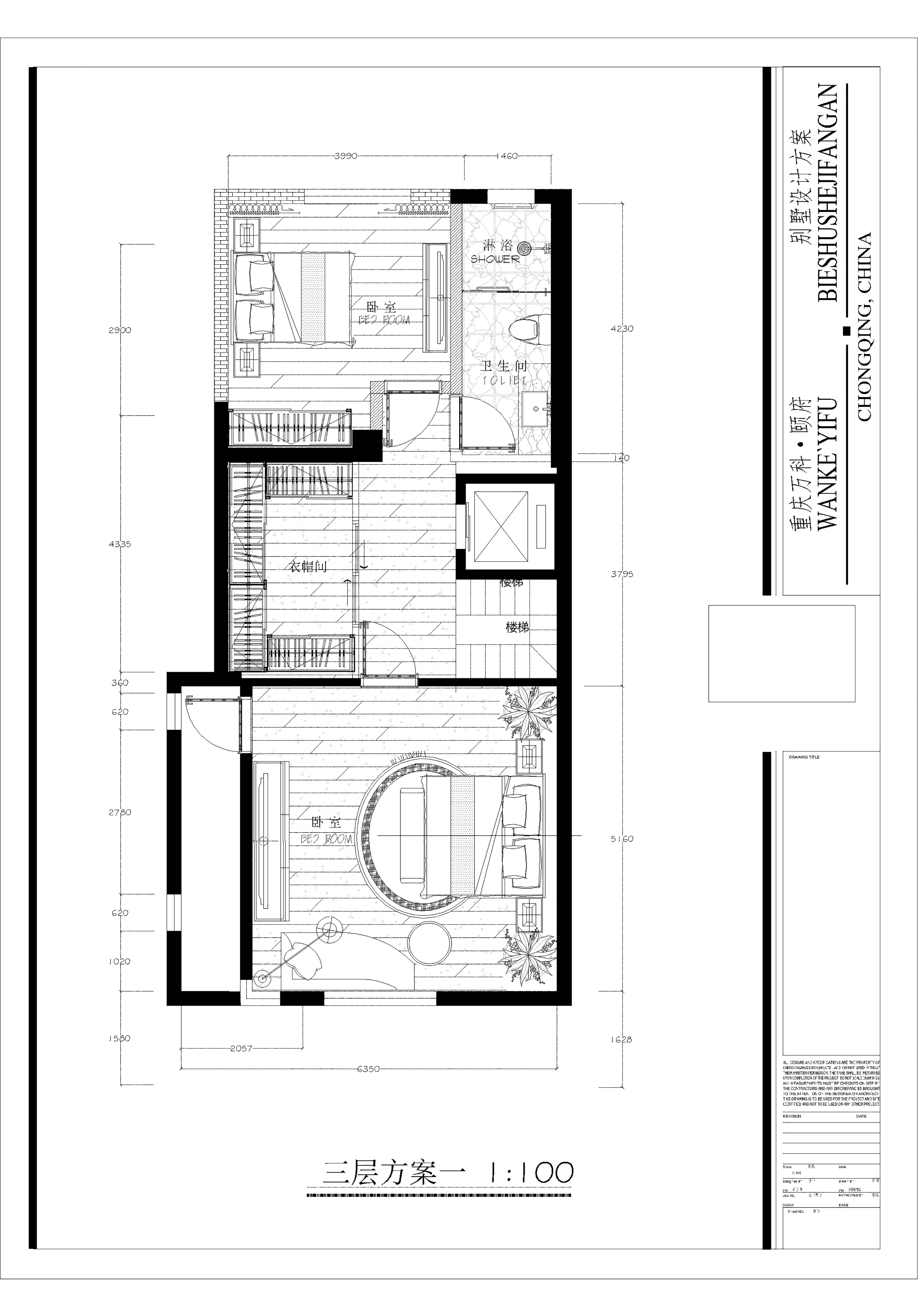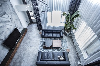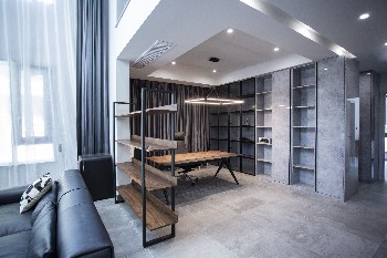 空间布局:设计上根据业主的工作属性及在国外的生活规律分析,将原有户型非承重墙部分全部打通重新规划,一层空间规划为起居及会客空间,开放式书房位于户型中心,打破传统客厅过于居家的生活状态;将二层空间规划为主卧室空间,衣帽间开放于本层空间中心,以满足业主对居住空间的要求并保证室内通风及存储便捷,避免山城潮湿的空气不能贯通。三层设计为孩子房间及客房(老人居所很近无常住需求)。
