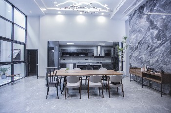 空间意境:设计上根据业主的工作属性及在国外的生活规律分析,将原有户型非承重墙部分全部打通重新规划