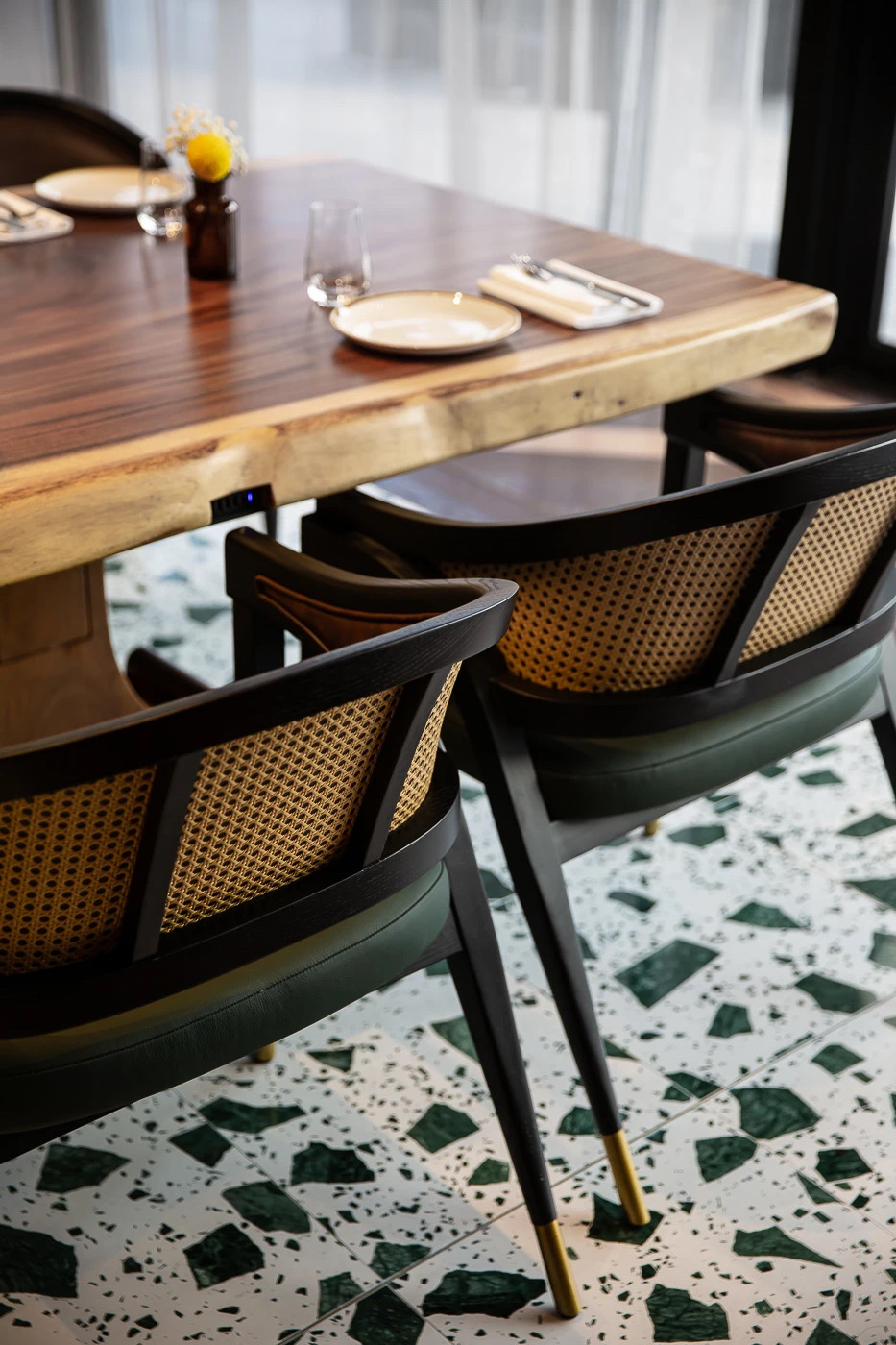 “Canter” 的主調顏色運用了傳統與現代感並存的墨綠色,這里是一個相當有隱秘性且非常適合一家大小周末聚會的空間。定制的長木桌、溫馨的台面擺飾、精致的餐具、透進白色的紗窗的陽光、溫馨的室外平台空間等,都一一展現出了香港特色的英式紳士風格。 -