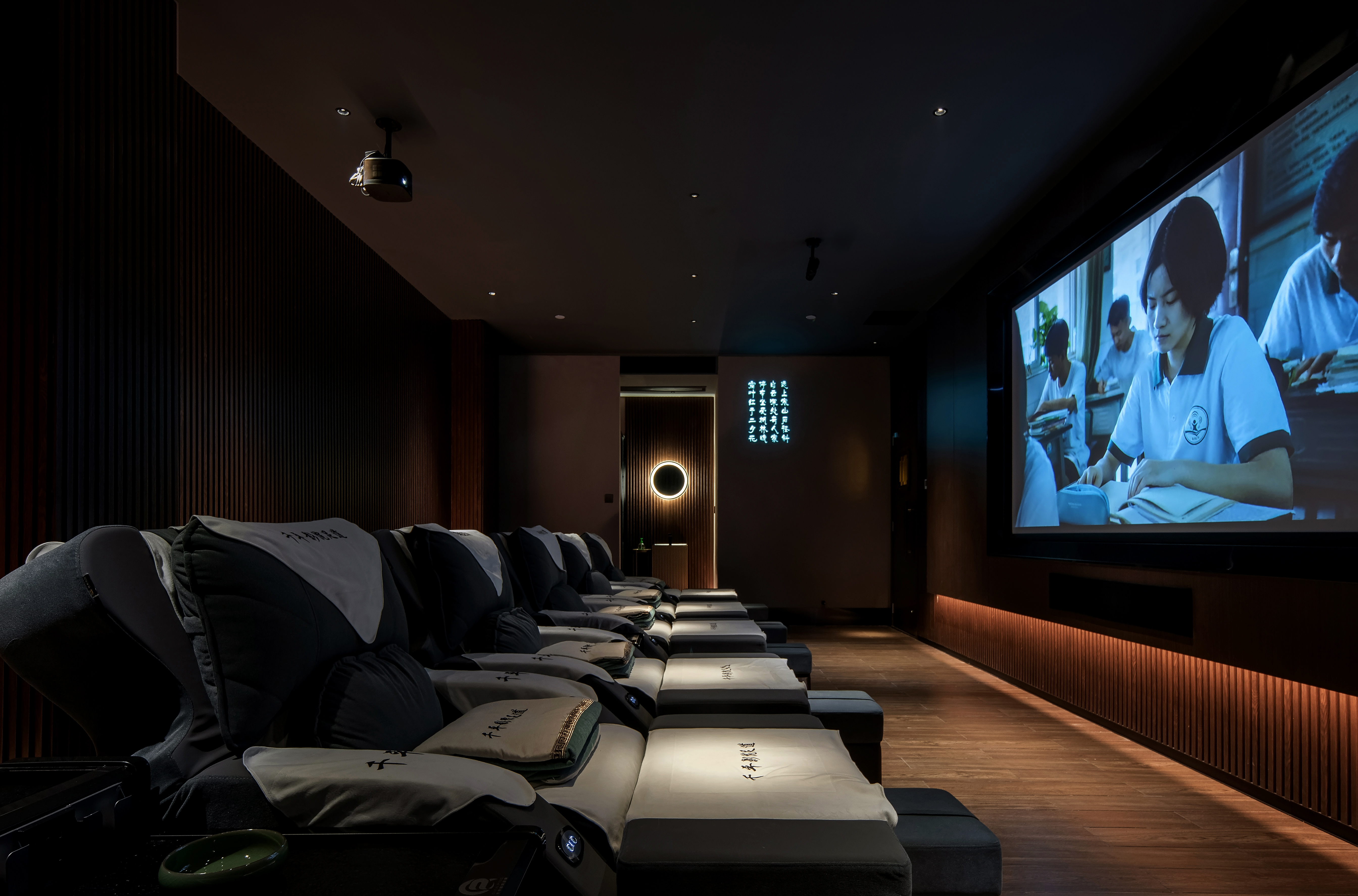 我们定位为休闲影院足道,在环境中以暗色氛围光为主,给人以静谧的空间体验,整体风格上我们以中式养生文化和在地文化进行结合,剖析出新中式禅意风,利用24节气作为每个足浴包厢的门牌,让顾客在一年四季的轮回中感受养生文化的重要性,SPA按摩房截取古代八大美女名字,让顾客置身其中,感受SPA放松后的舒适感。 -
