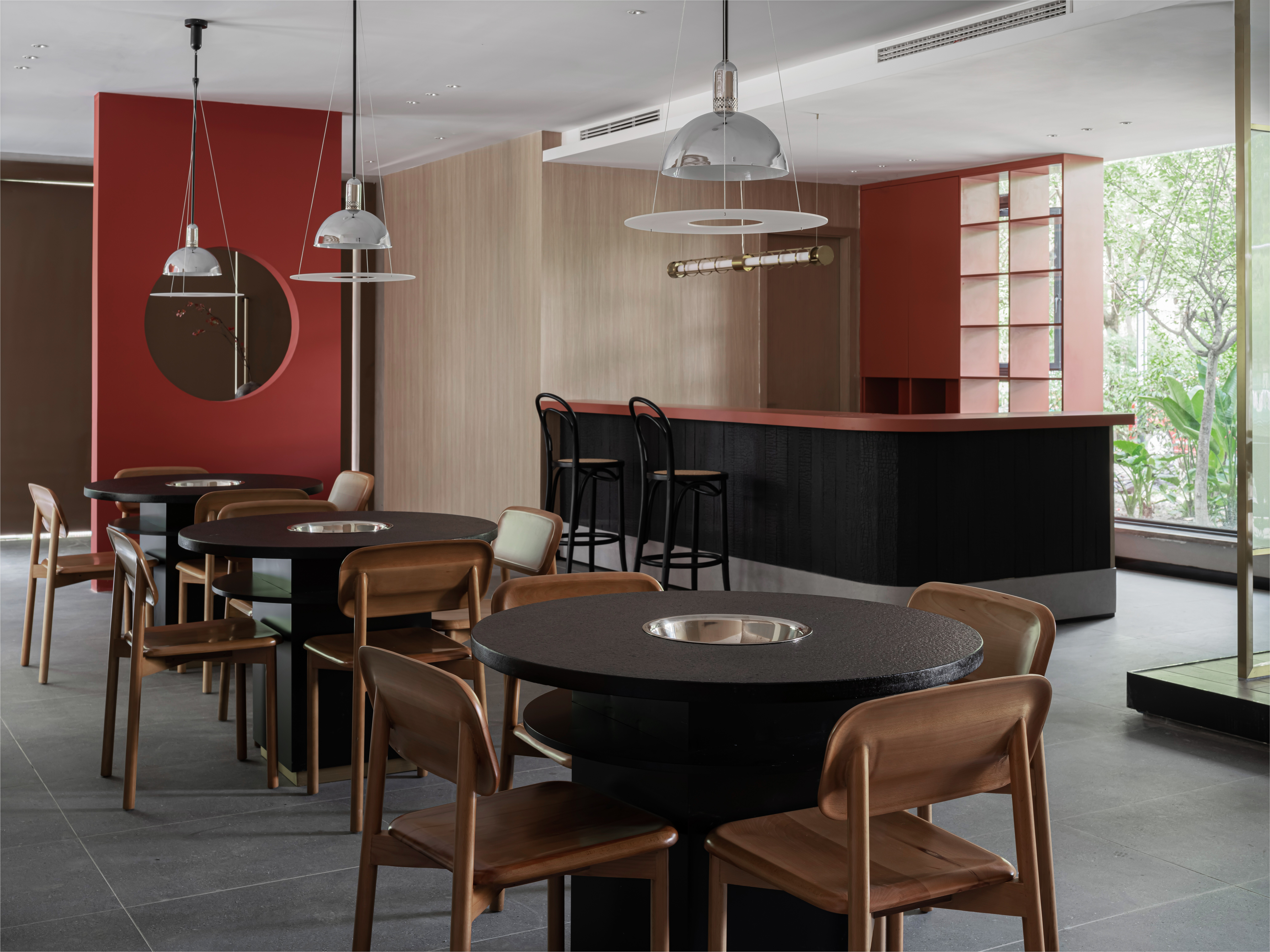 中国红与黑色餐椅,深深的比对的同时又深深的融入彼此。