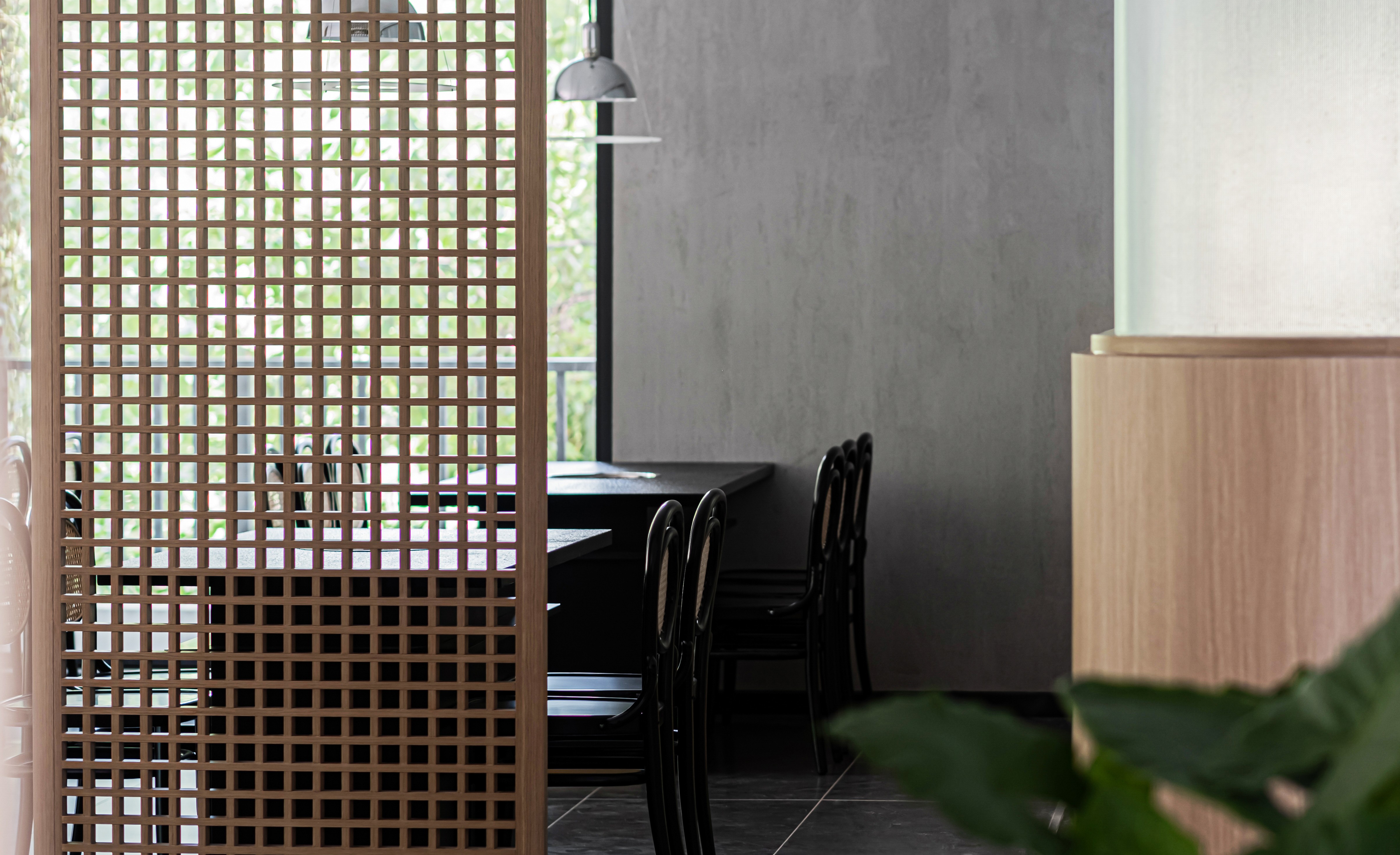 隔而又透的隔栅造型,更好的增加了空间的神秘感。