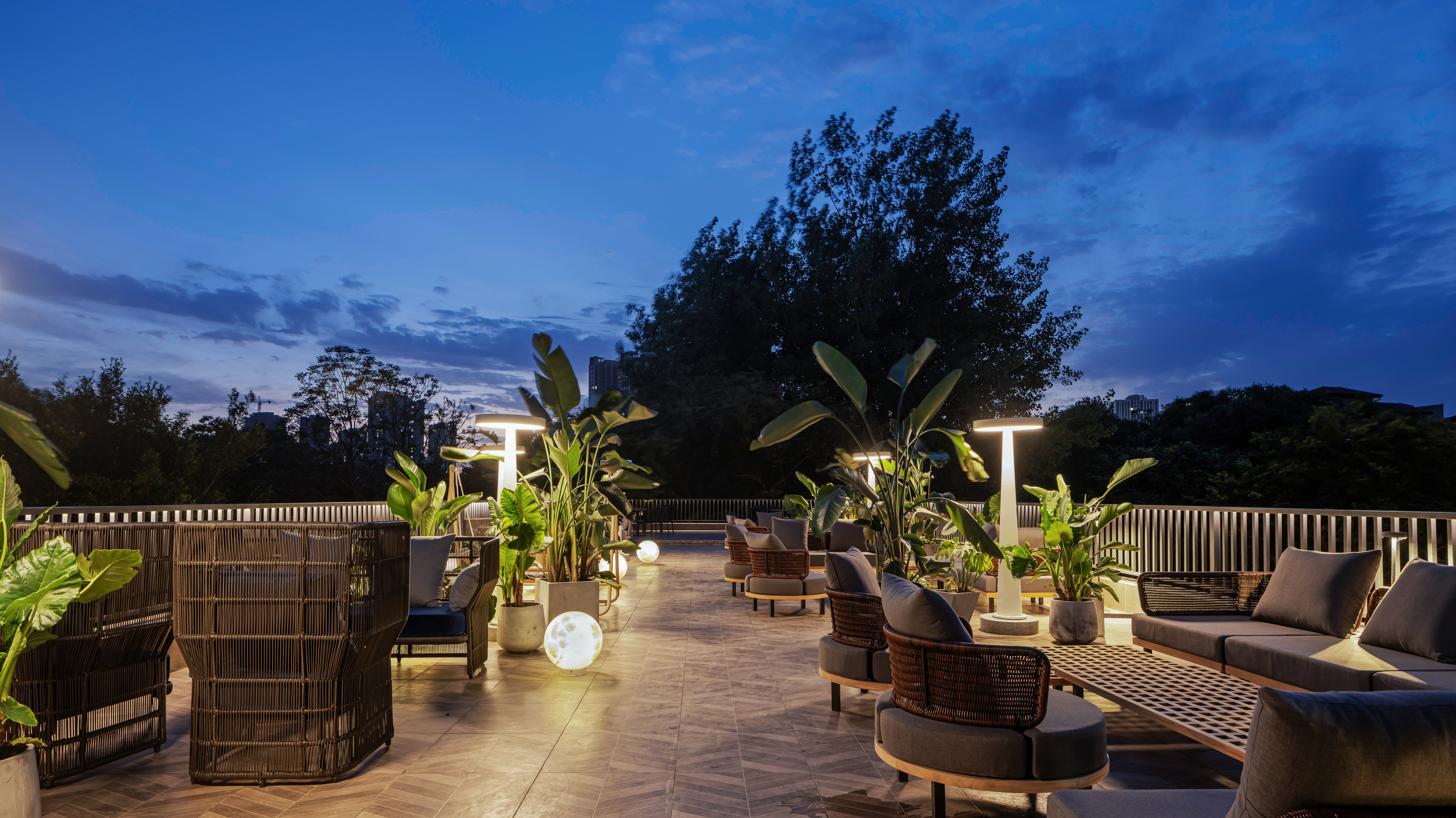 空间布局:①在空间的布局上,我们采用了分层分功能的处理方案。将1楼划分为更利于经营的咖啡厅、酒吧、花房、餐厅等区域;将2楼划分为独立的包间;另外将原本的楼顶拆除,进行了露台的搭建。这样就可以让3楼更有吸客能力,让原本“偏远”的3楼。变成一个更有吸客能力的区域,也可以更好的提升3楼的经营。