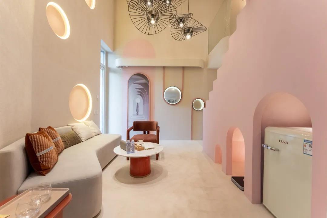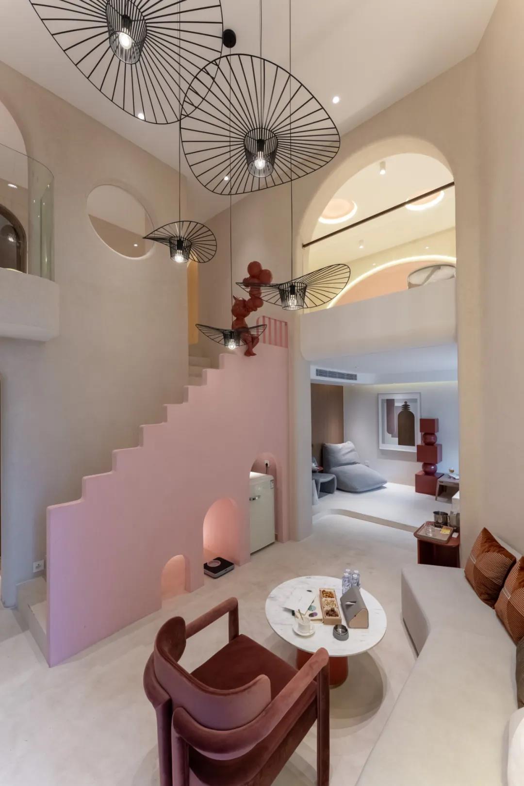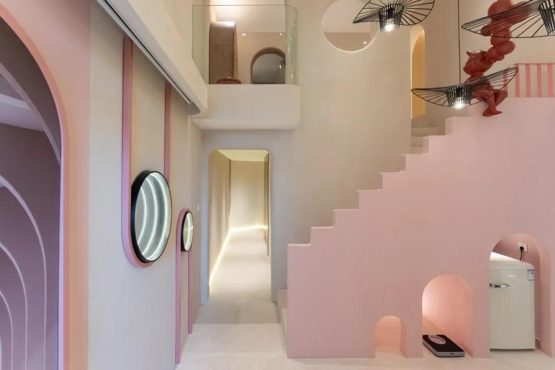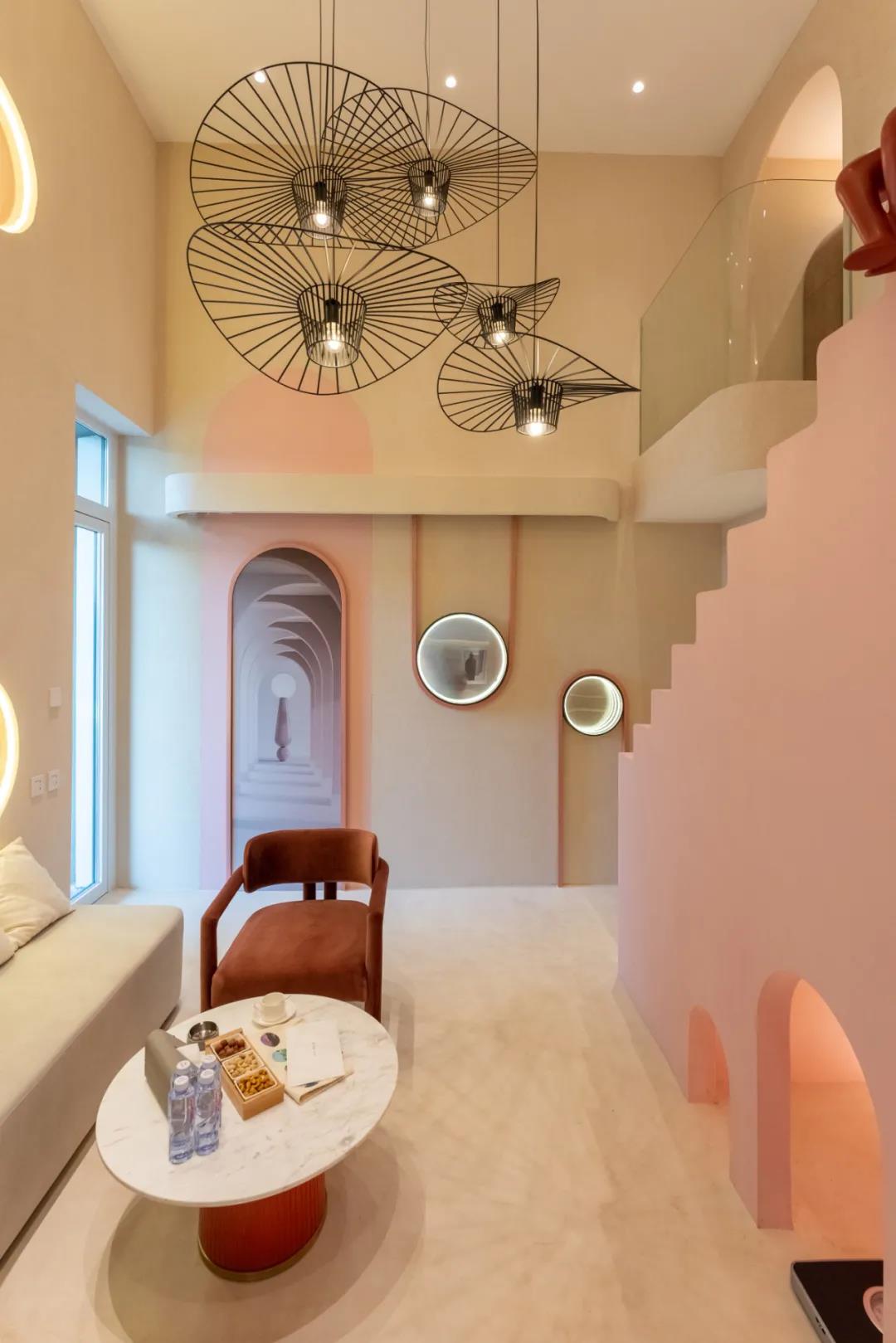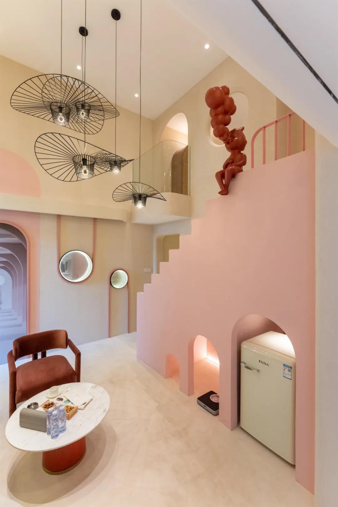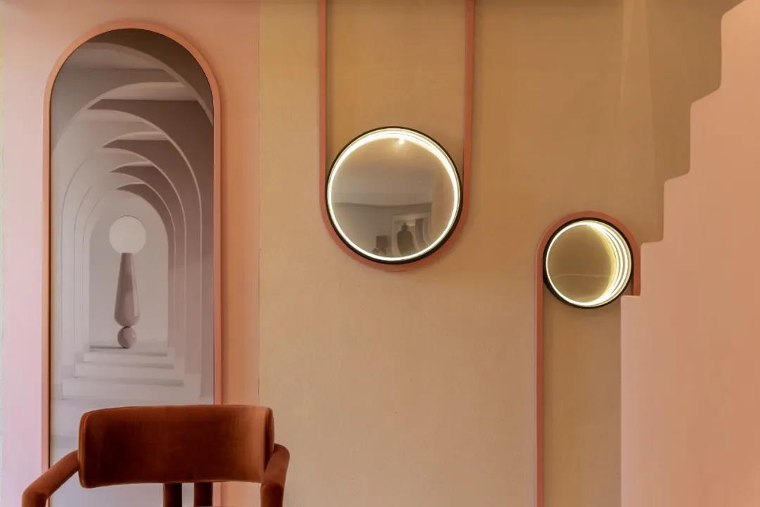 从入口开始,就可以看出这里的独特,从拱形的门框看向室内,画面被切合的优雅古典,但是元素又让空间变得梦幻而趣味横生。