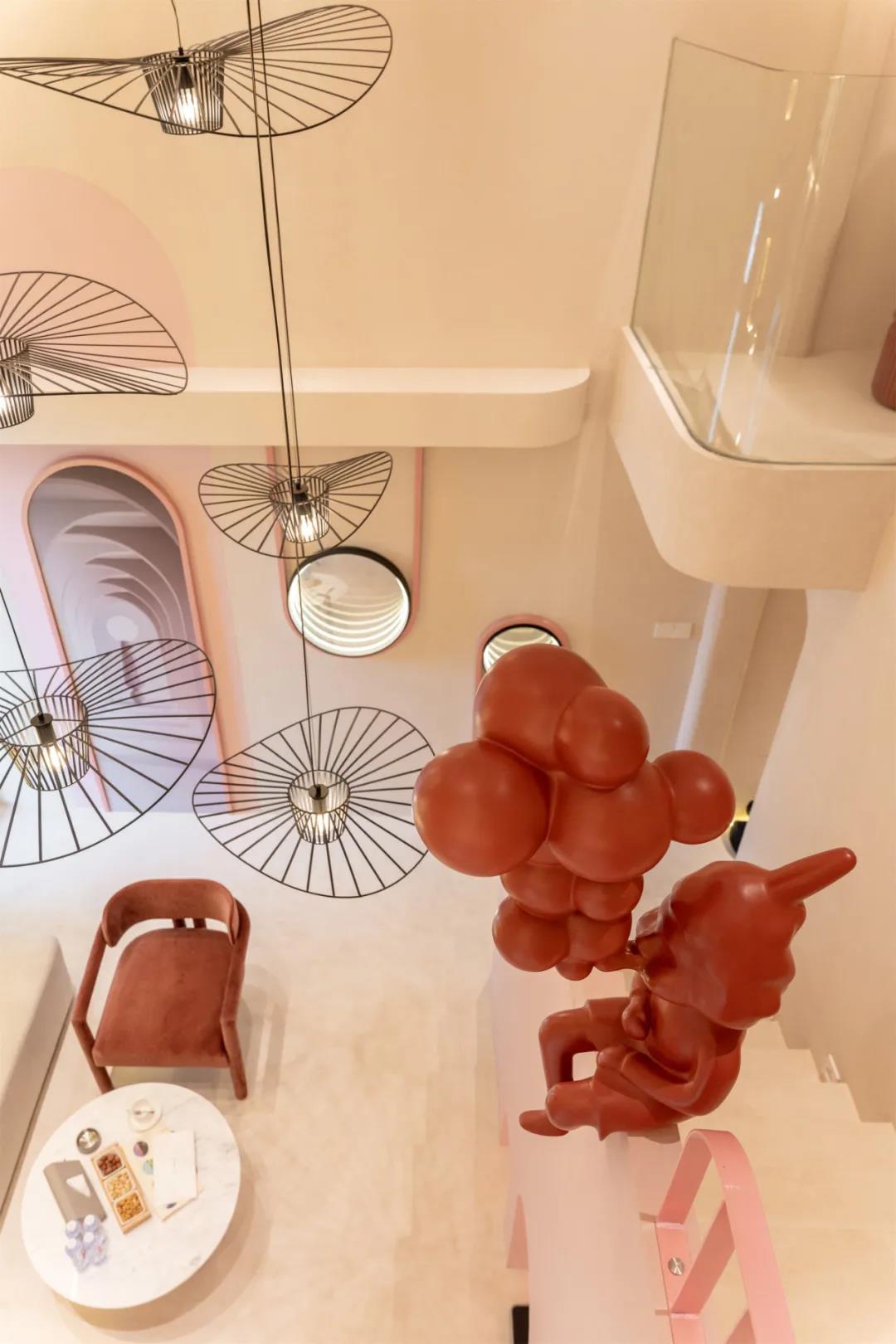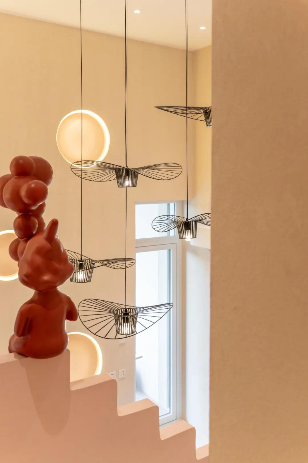 抽象的人偶与楼下的座椅色彩呼应,为整个空间加入了童话的感觉。