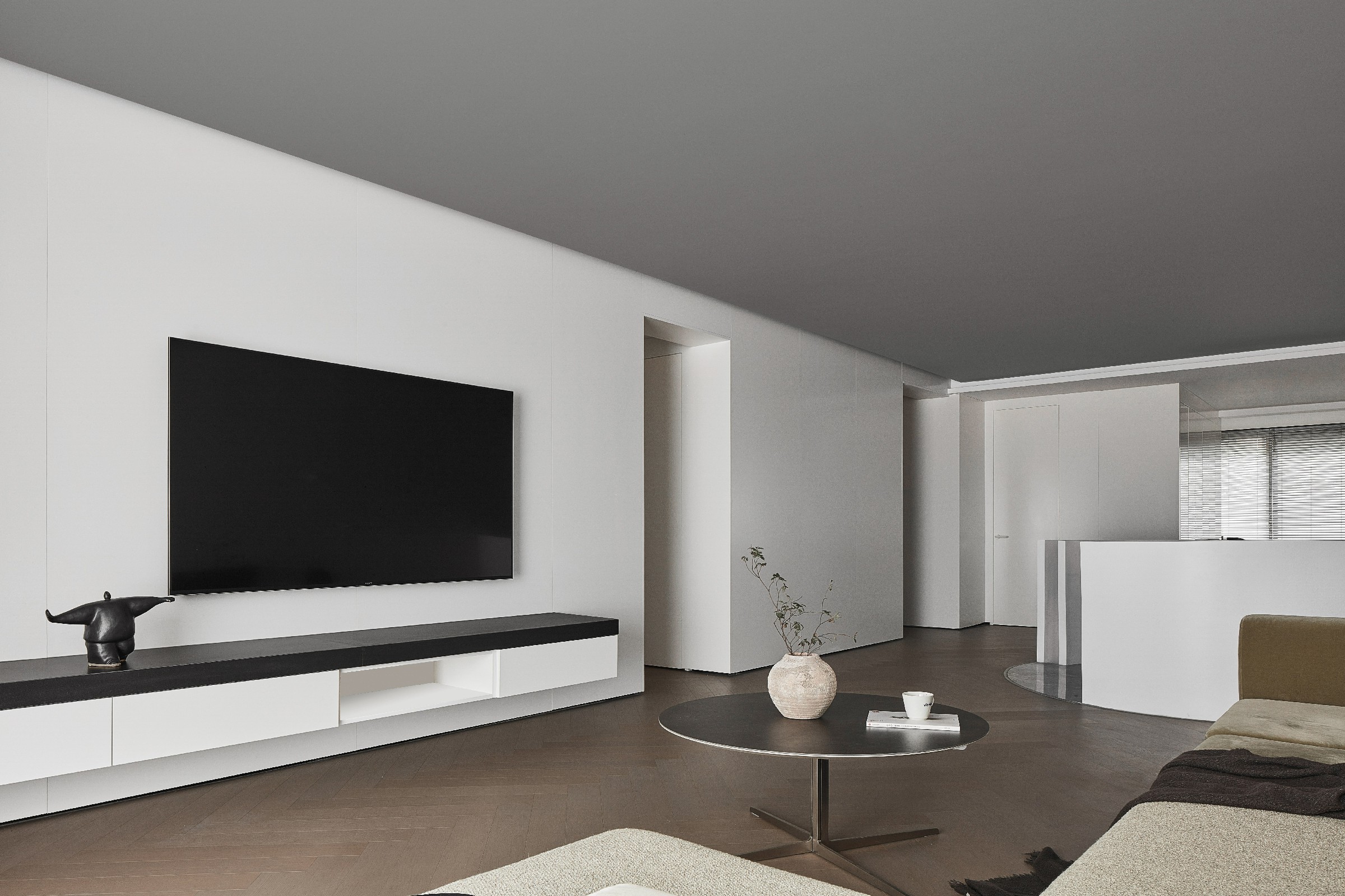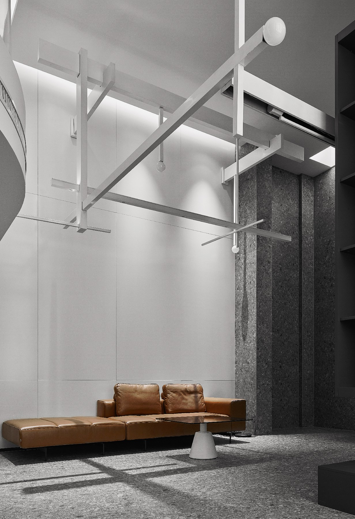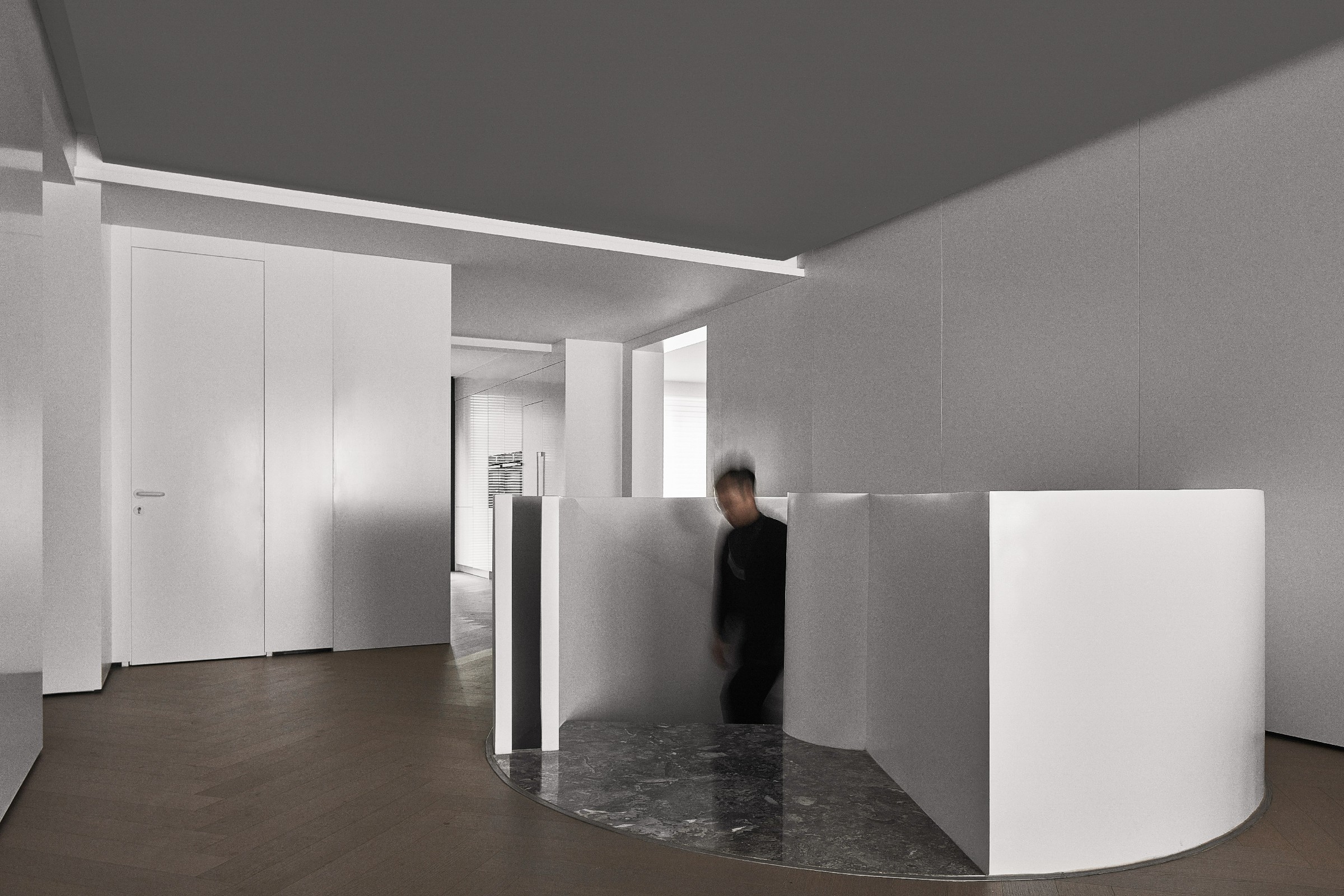 不同明度的灰白色材质相互叠加、映衬,在耐人寻味的细微差别之中,似一幅单色素描。
