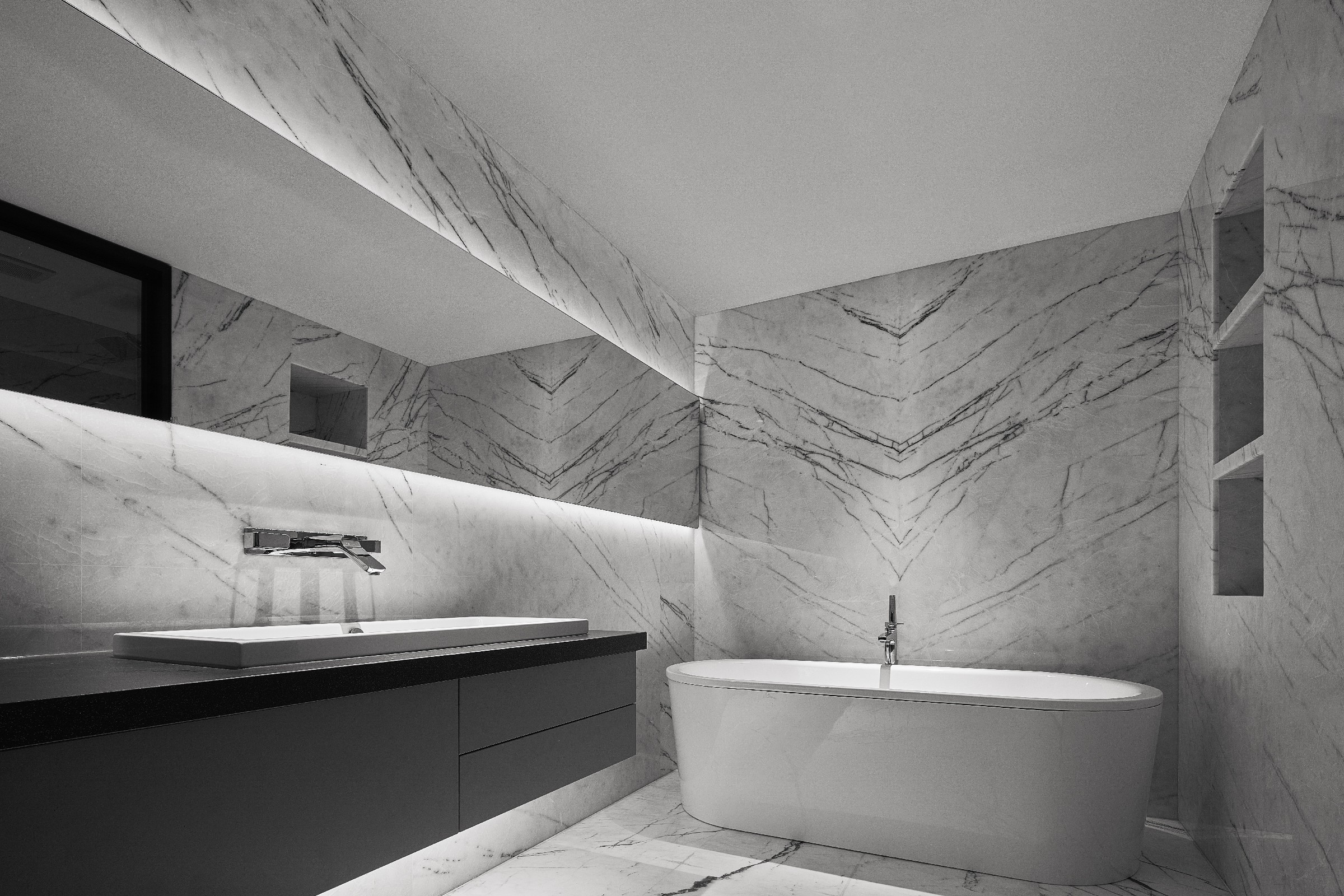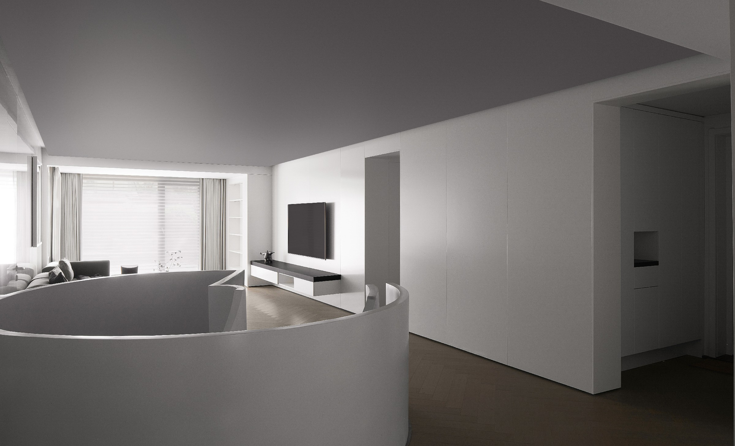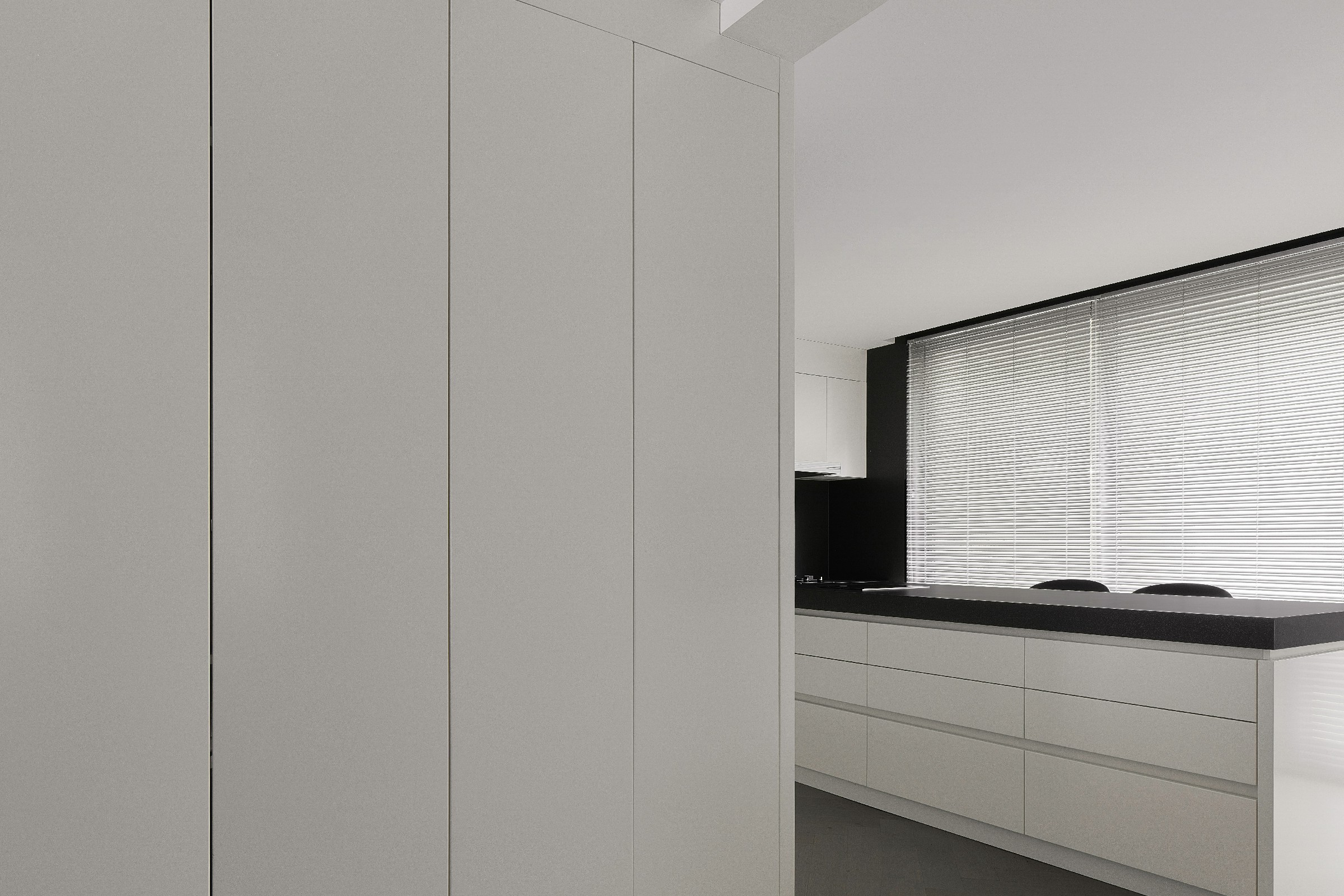 不同明度的灰白色材质相互叠加、映衬,在耐人寻味的细微差别之中,似一幅单色素描。