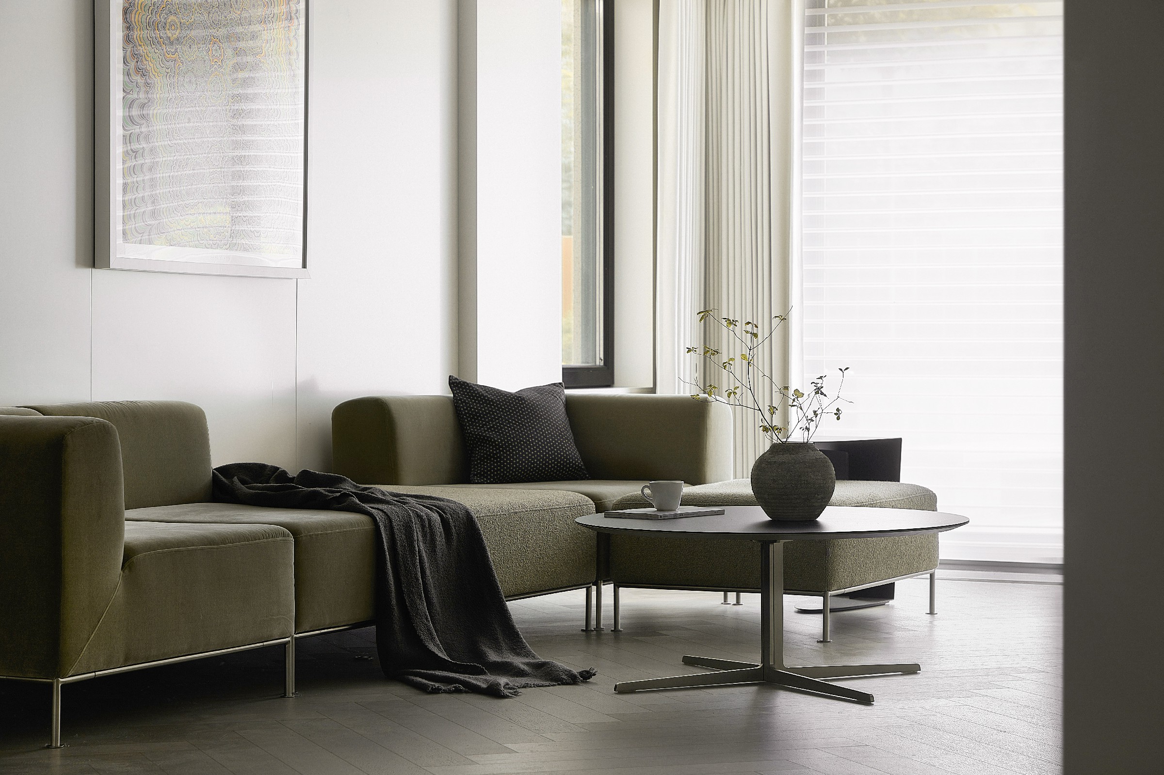外观看世界,内观看自己。 如果说公共空间是对外的展示,那么居住空间则是自我的投射,诠释出简约、静谧、舒适的生活情趣