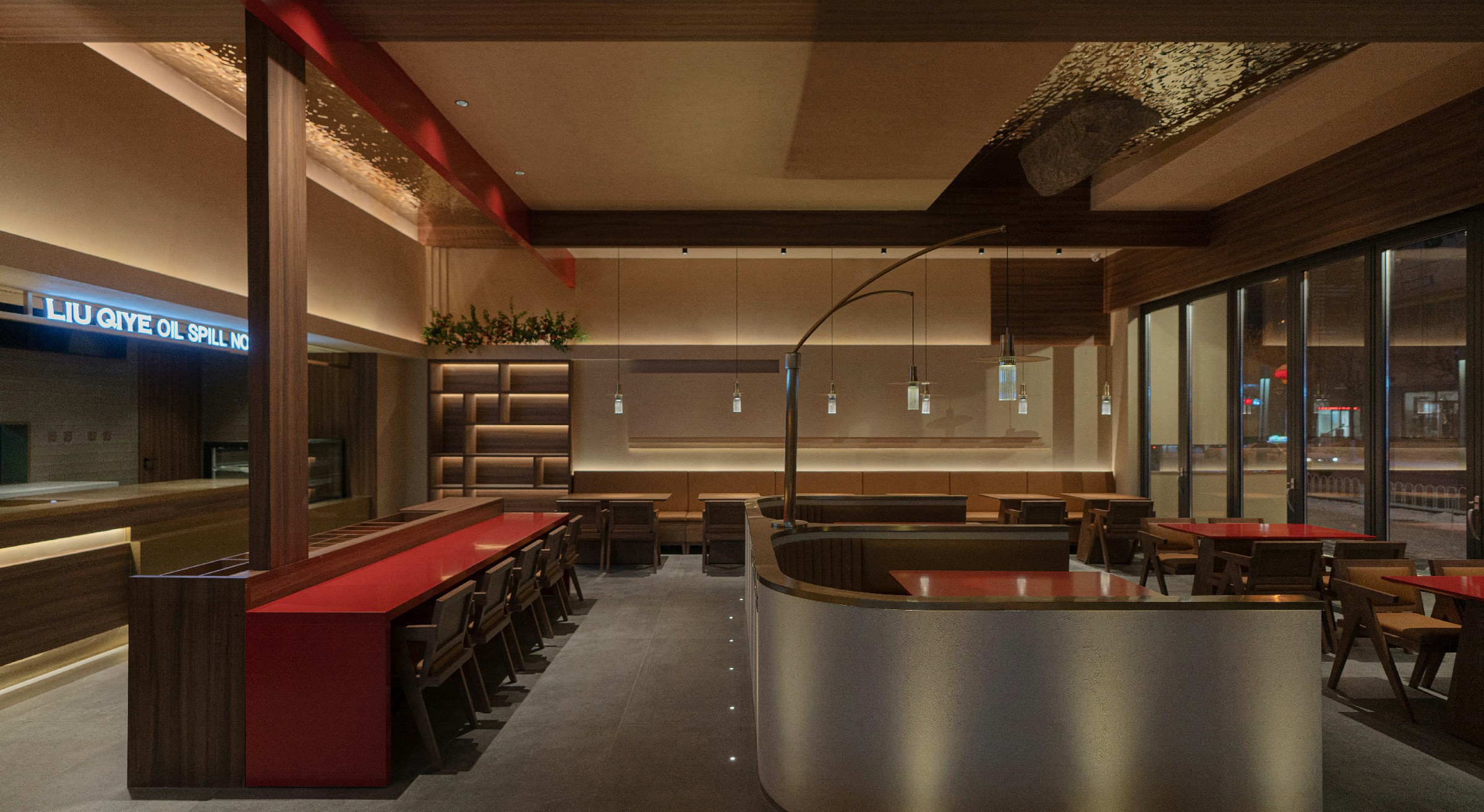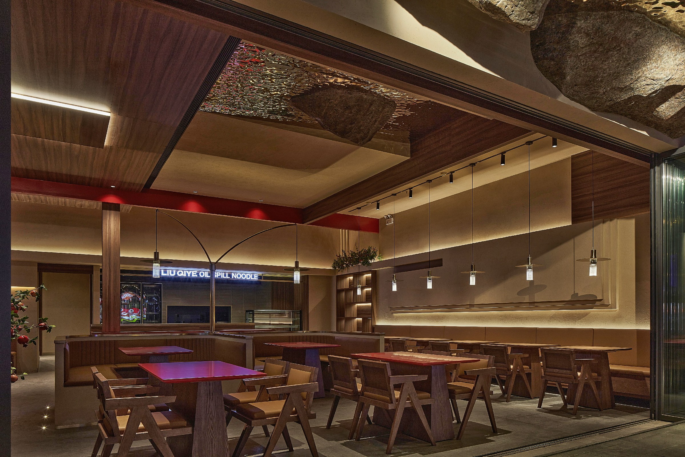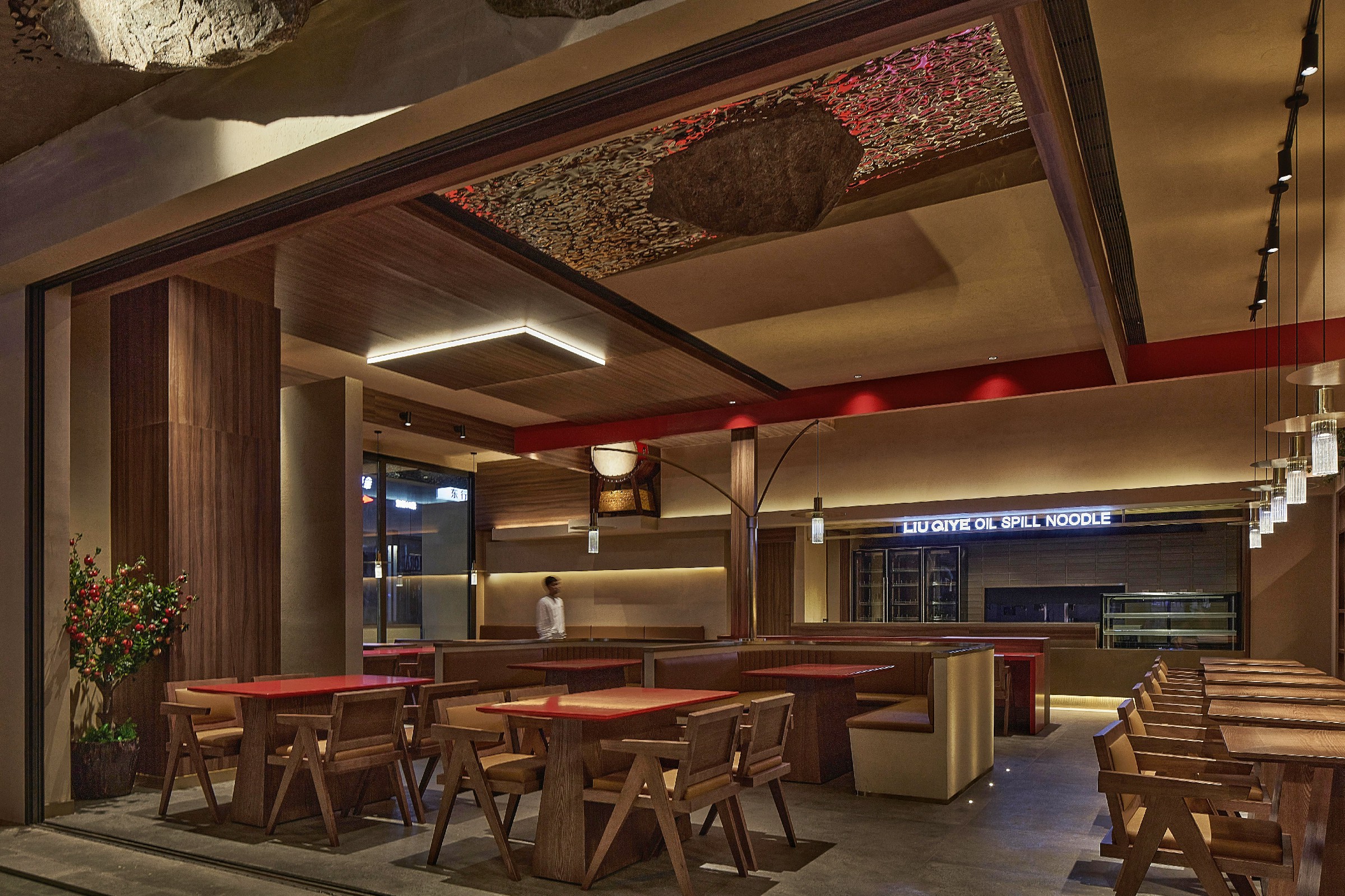 从整体出发设计而成的空间彼此穿插,既相互分离又相互连结,为陕北特色美食的现代化演绎提供了可能。