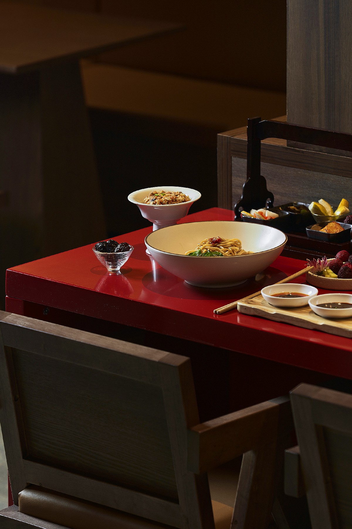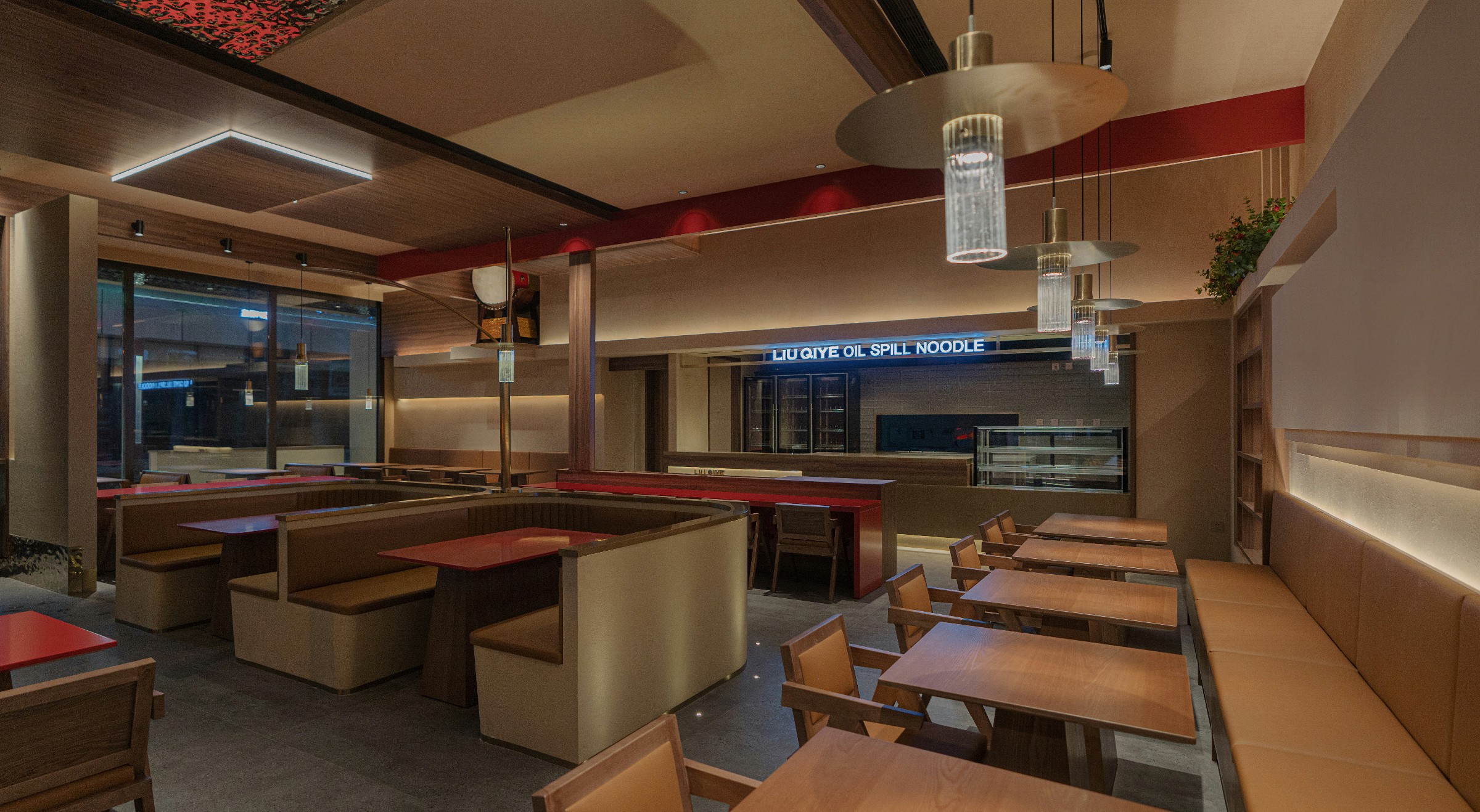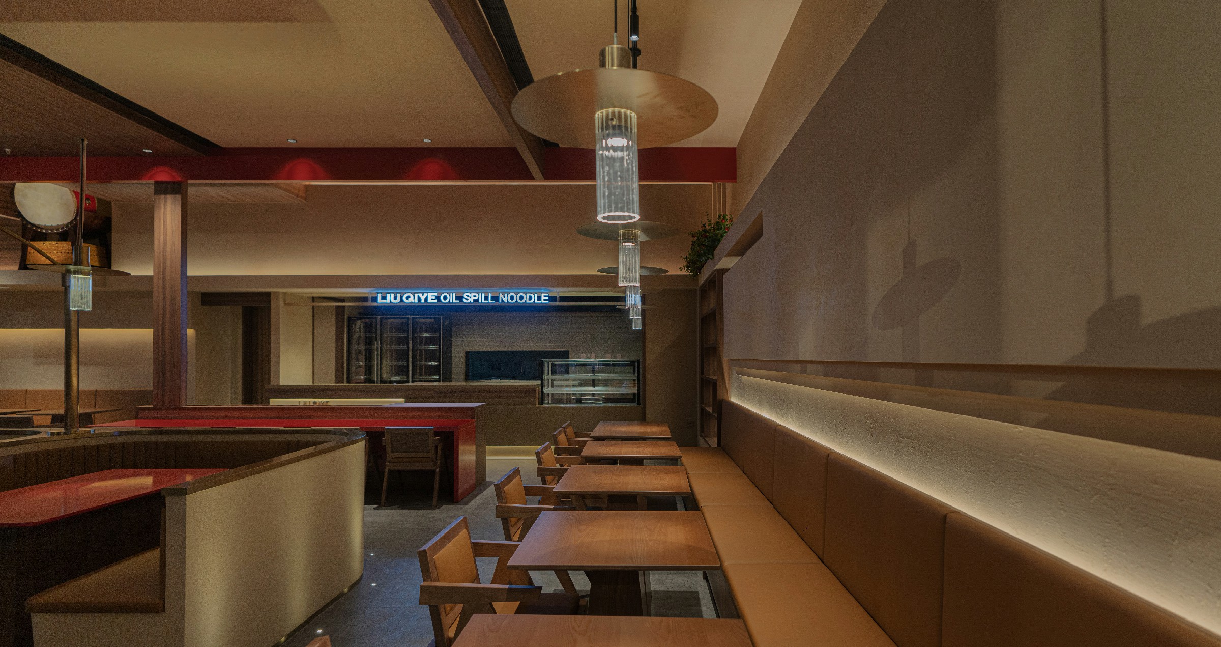 从整体出发设计而成的空间彼此穿插,既相互分离又相互连结,为陕北特色美食的现代化演绎提供了可能。
