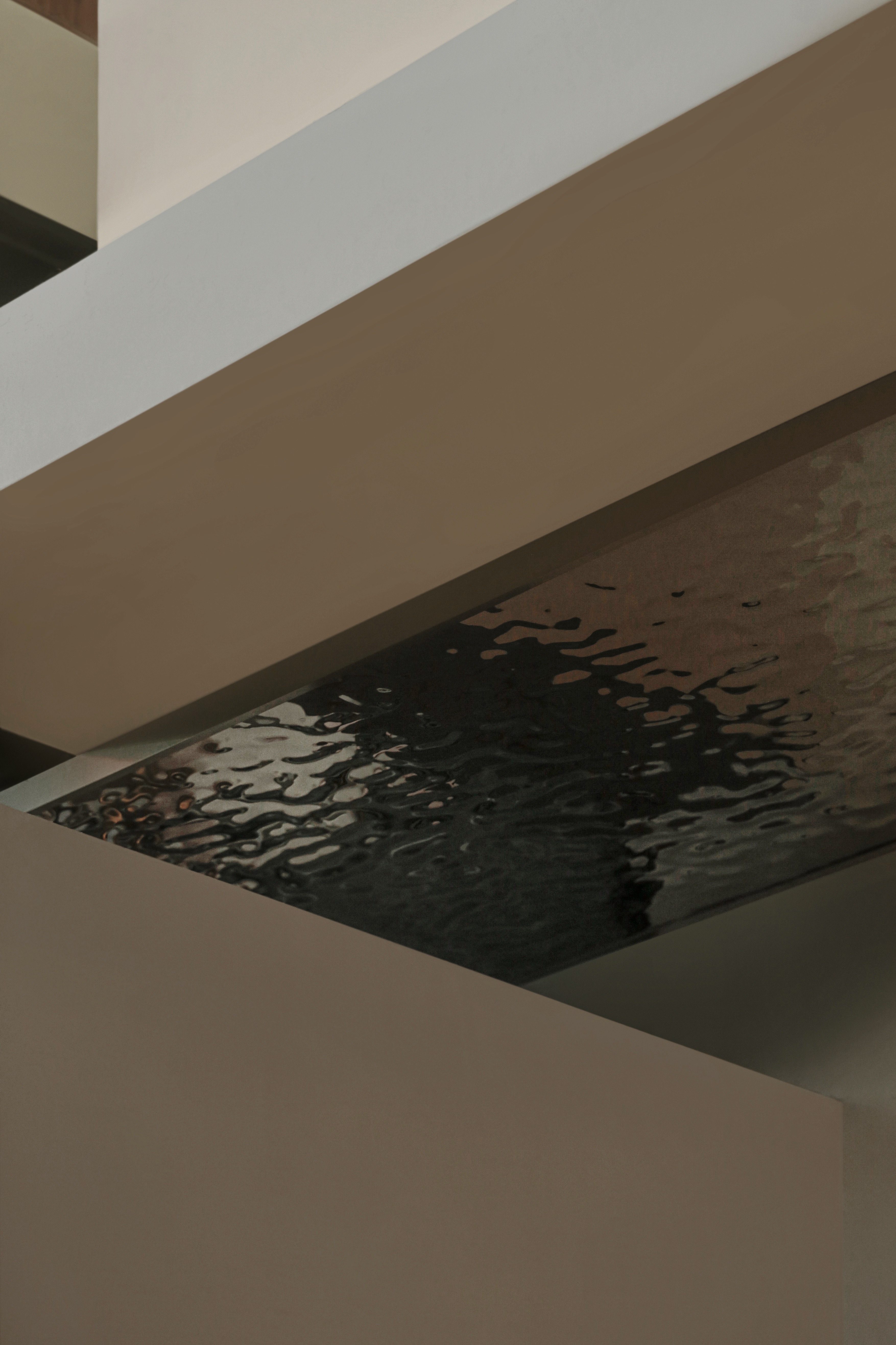 浓缩着经典美学比例的墙体构成,配以木和皮革,穿插细节与考究肌理,使得每一面墙体都成为优雅色调的风格派抽象画,每一个方位都成为人与人、人与自然、人与建筑互动的取景框。