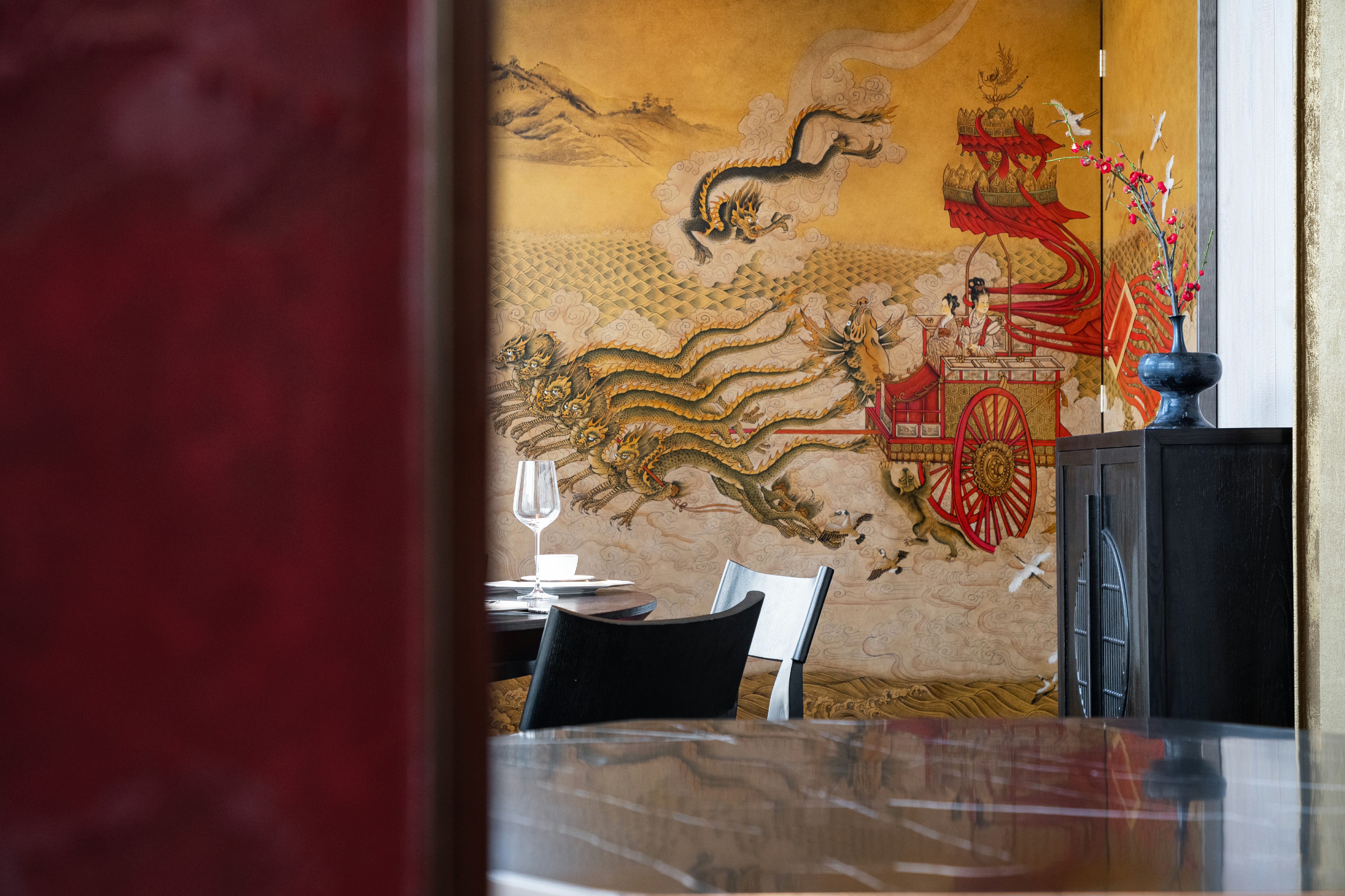 六朝承汉启唐,创造了极其辉煌的“六朝文明”,碑刻艺术更是其中重要的图像载体。该包厢以东晋将军印拓本为气韵转化,让食客在专注美食的同时,还可领略其创作语言及风格特点。 -