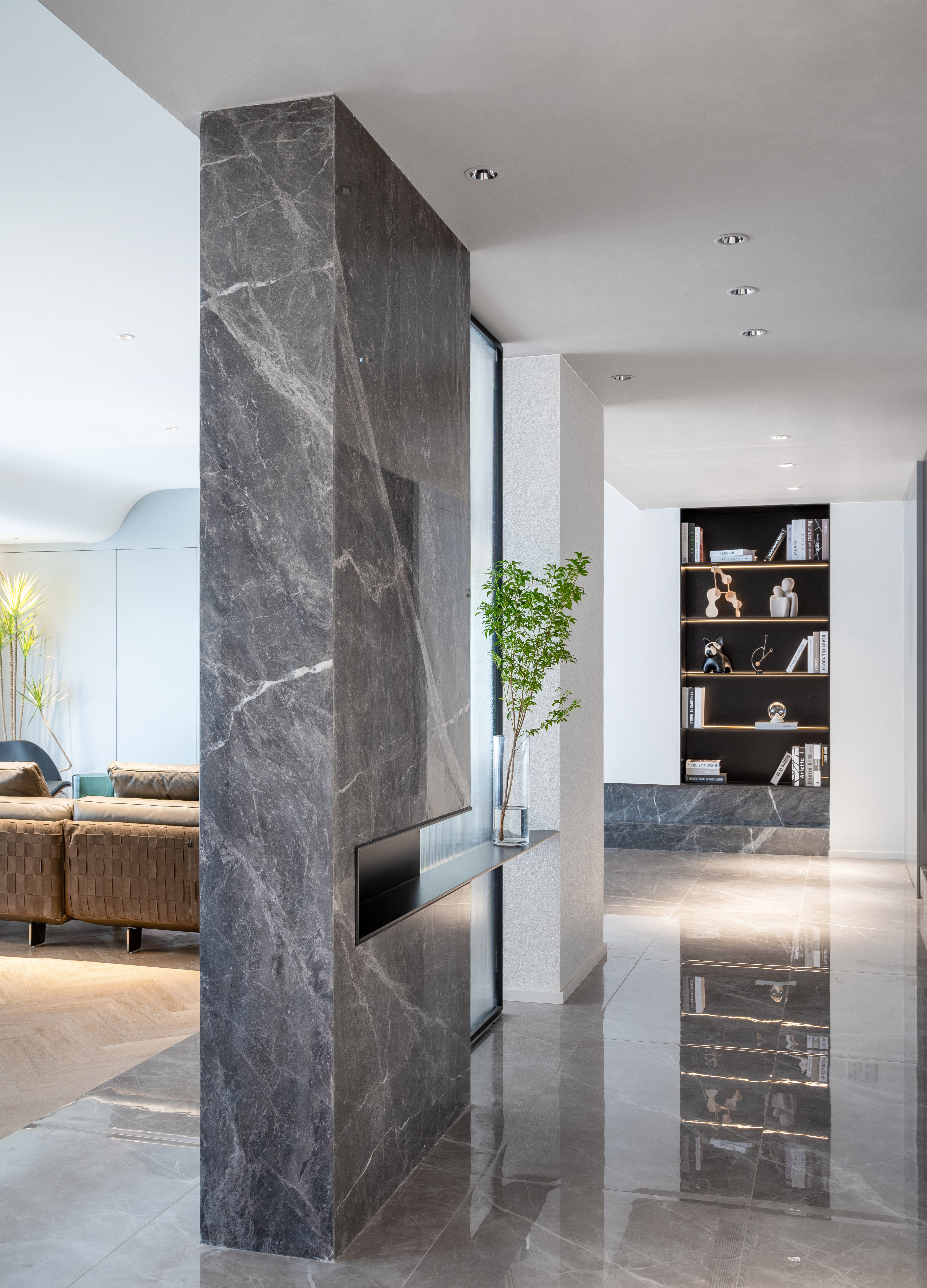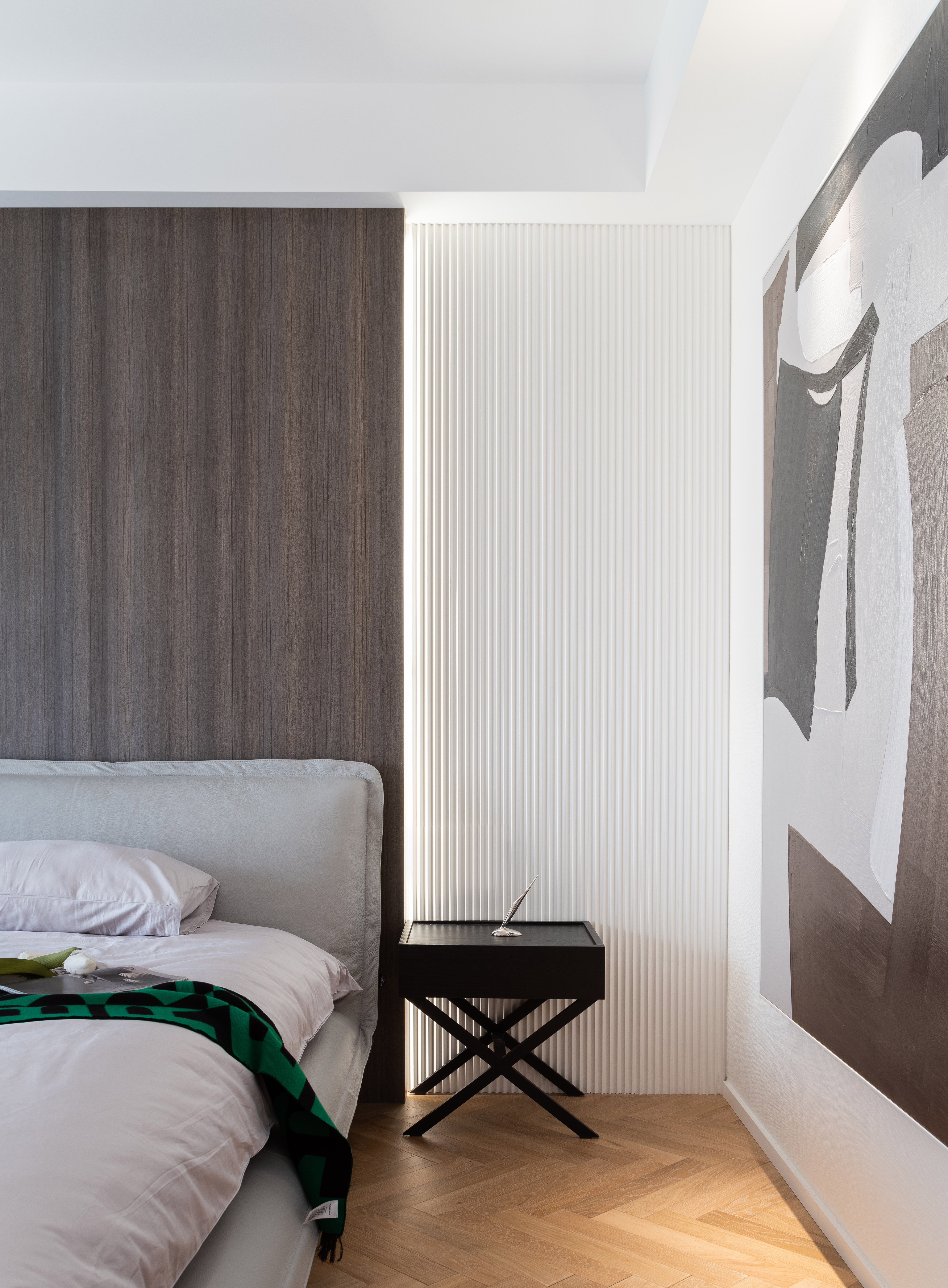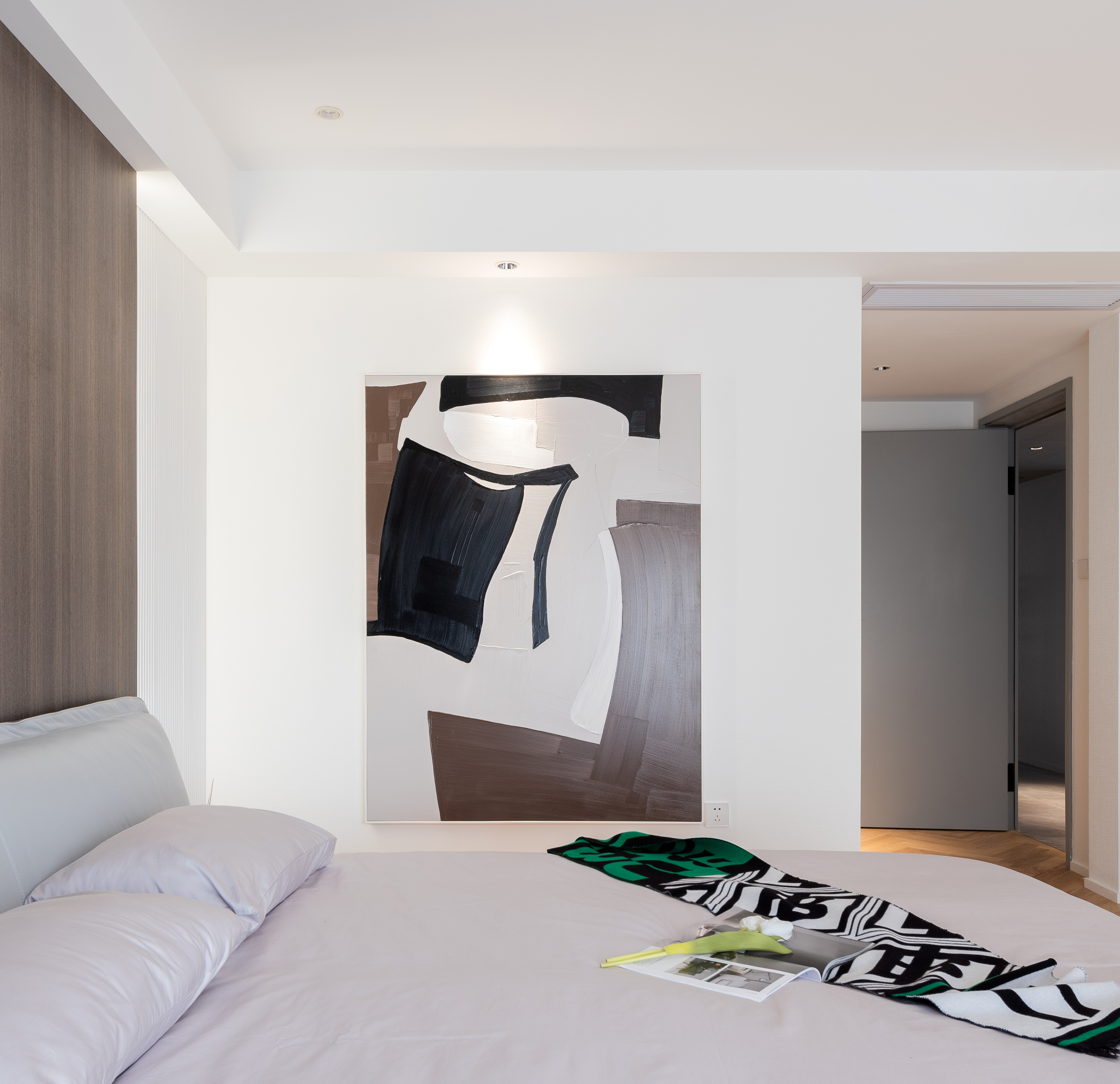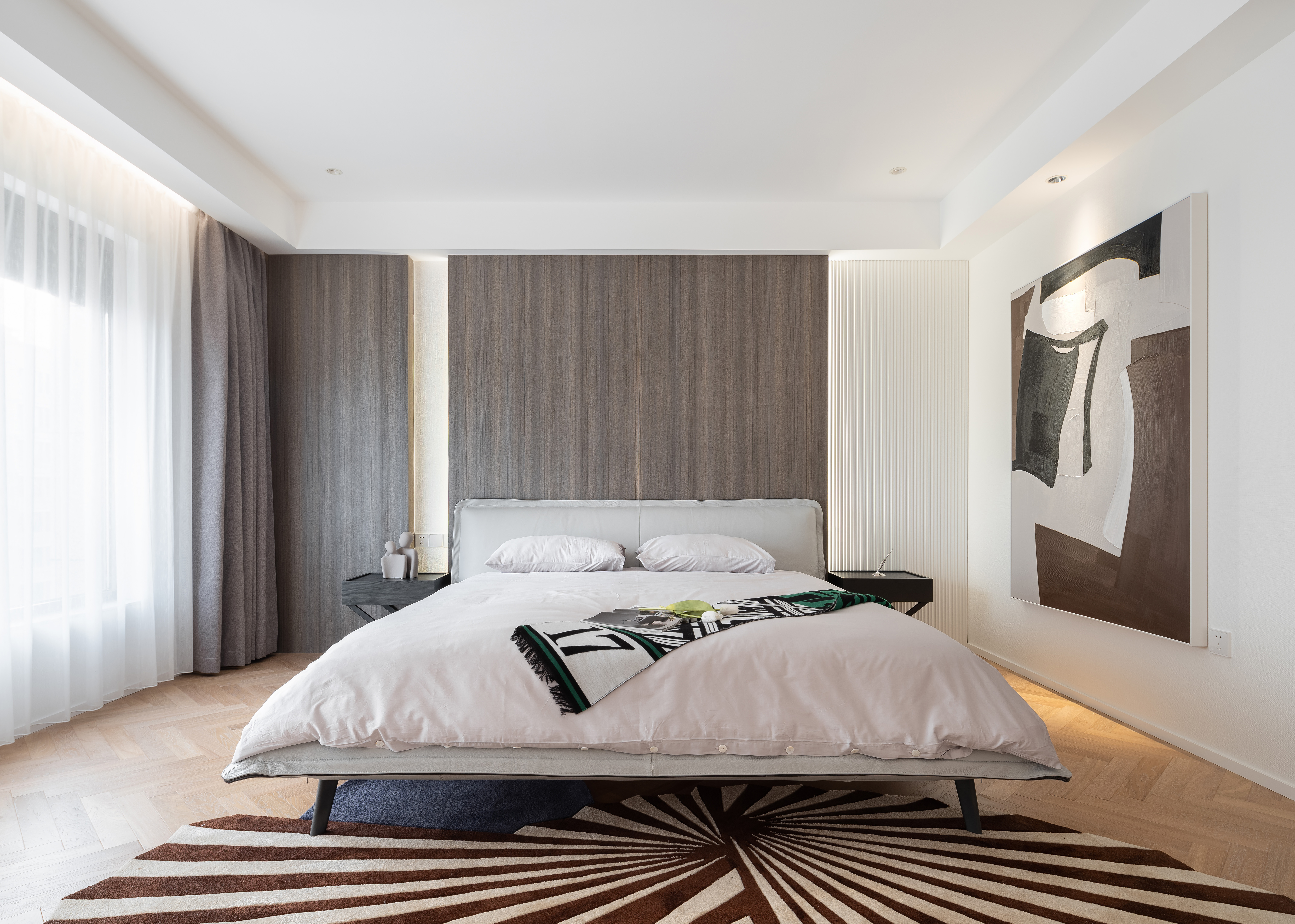 设计选材:没有运用大面积木饰面与石材,环保的同时兼顾实用与美观,勾勒出大平层独特的气质与魅力。