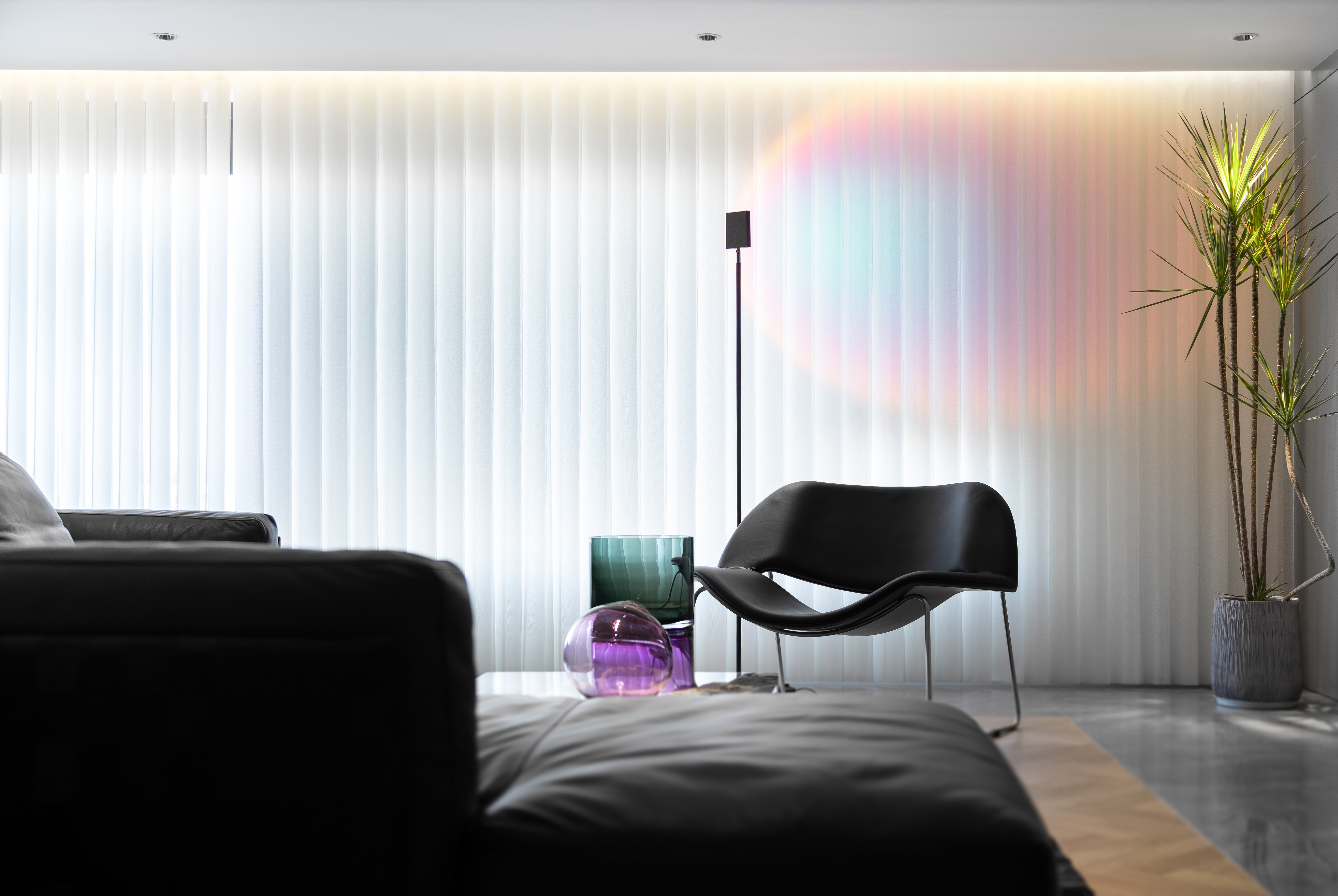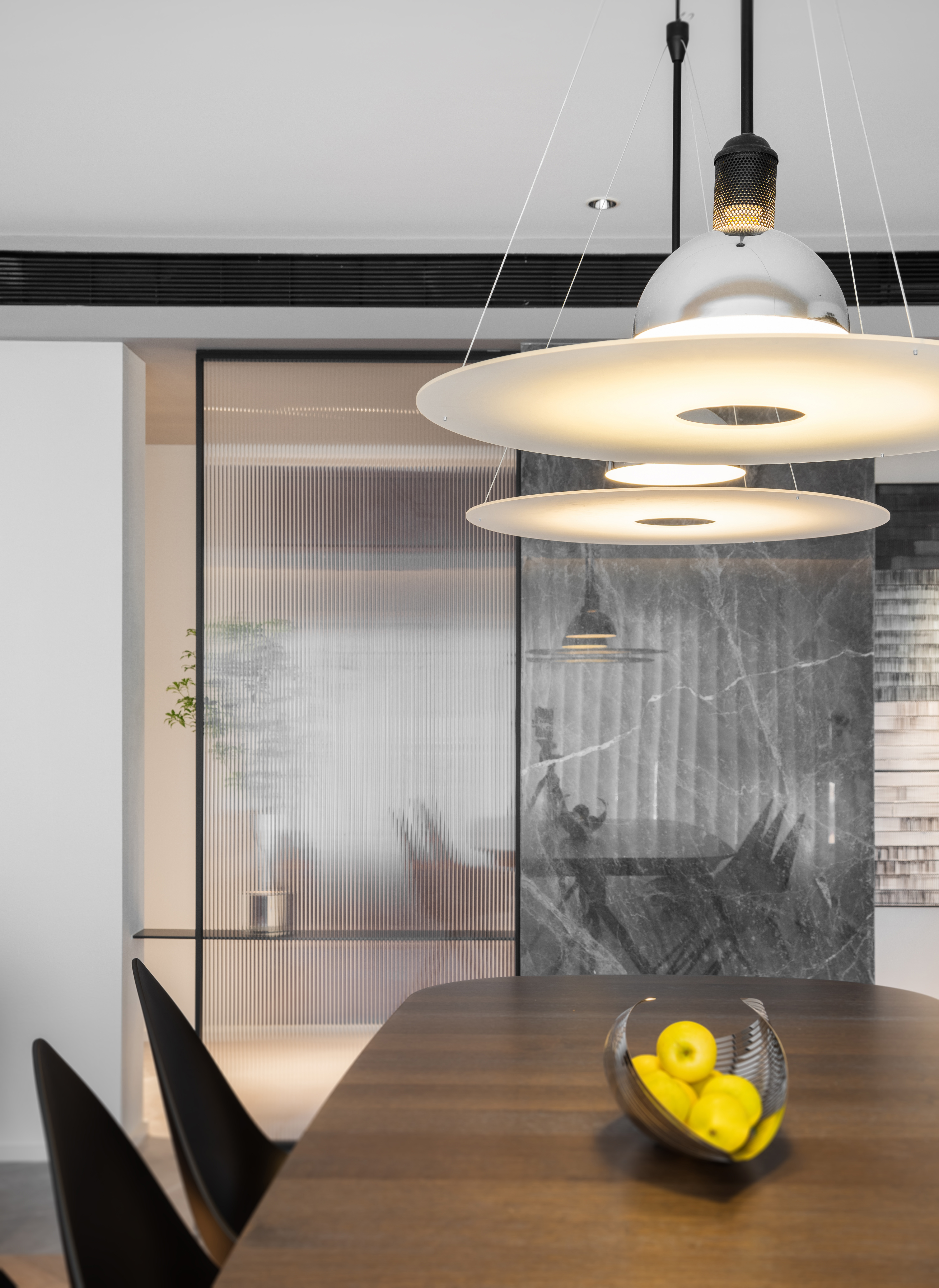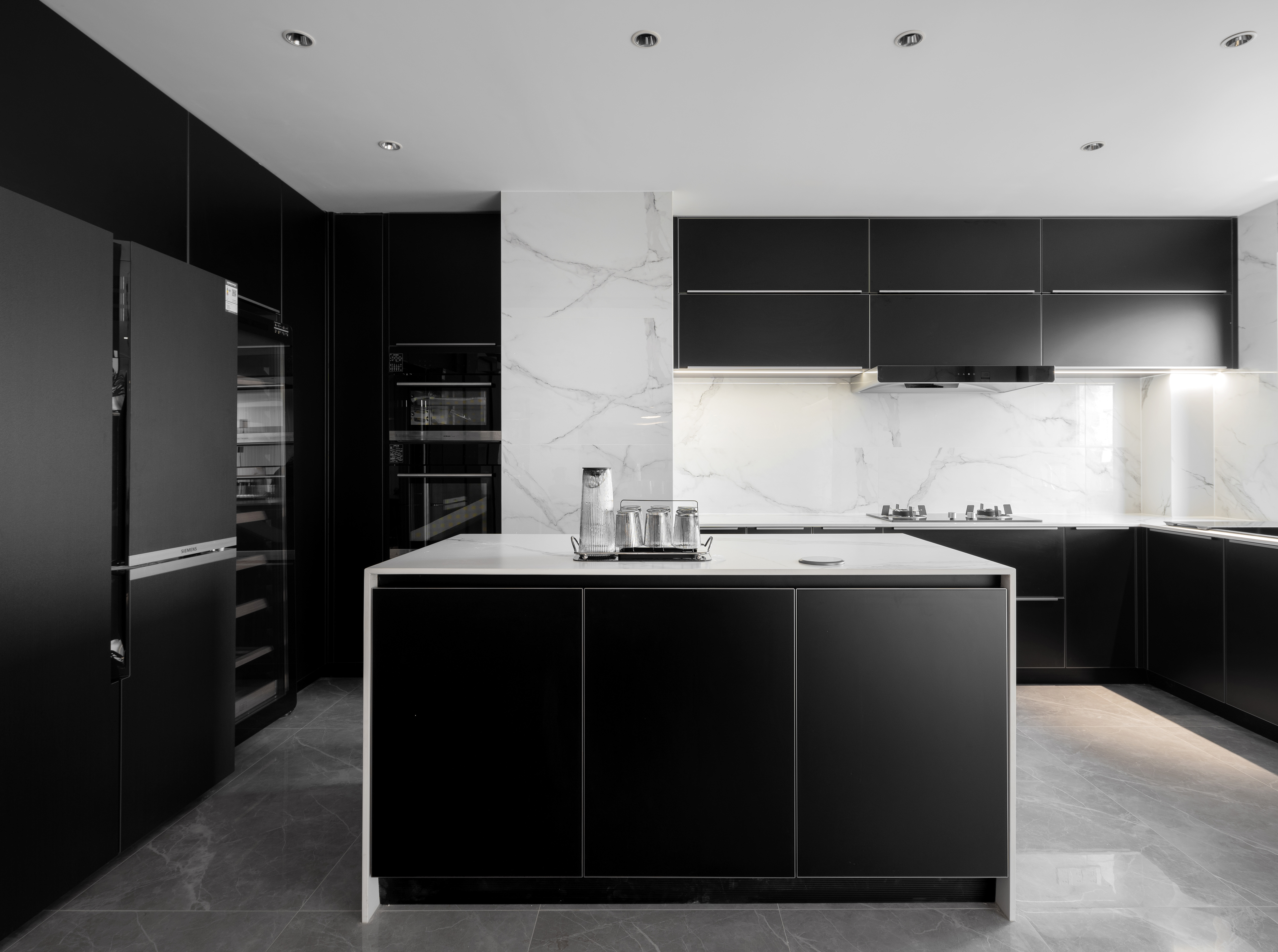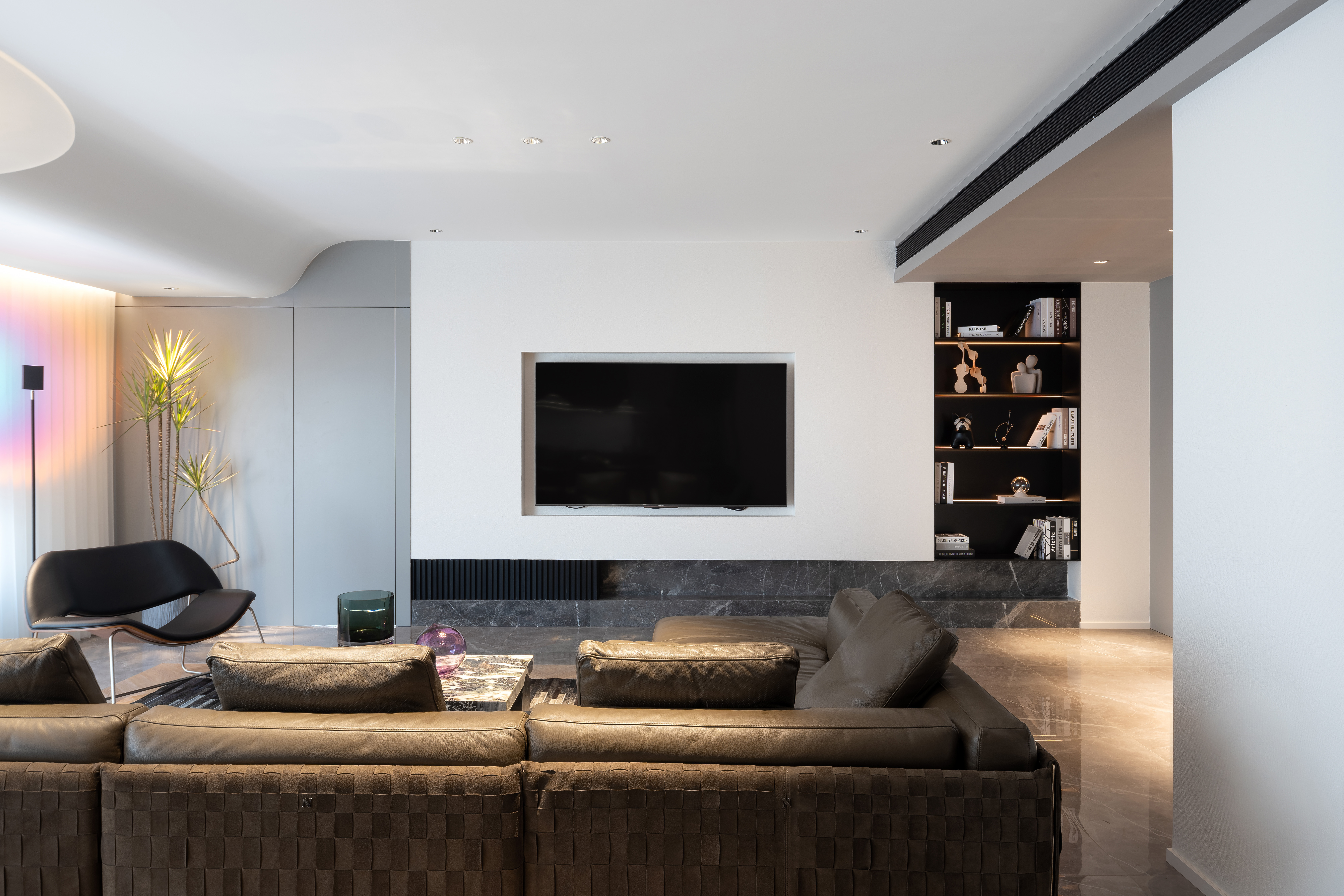 设计选材:没有运用大面积木饰面与石材,环保的同时兼顾实用与美观,勾勒出大平层独特的气质与魅力。