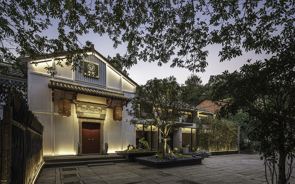 设计选材:餐厅的外围造了许多自然小景,从餐厅的每个包厢看出去都是满陇桂雨的一景。
