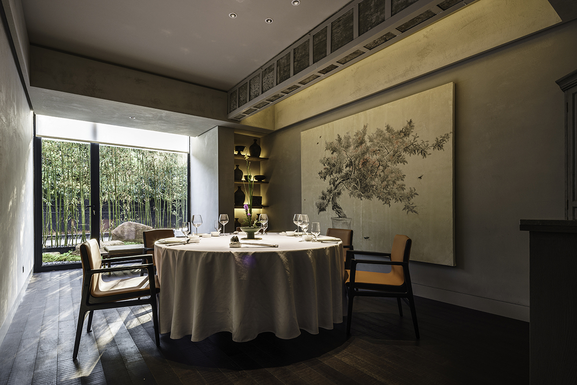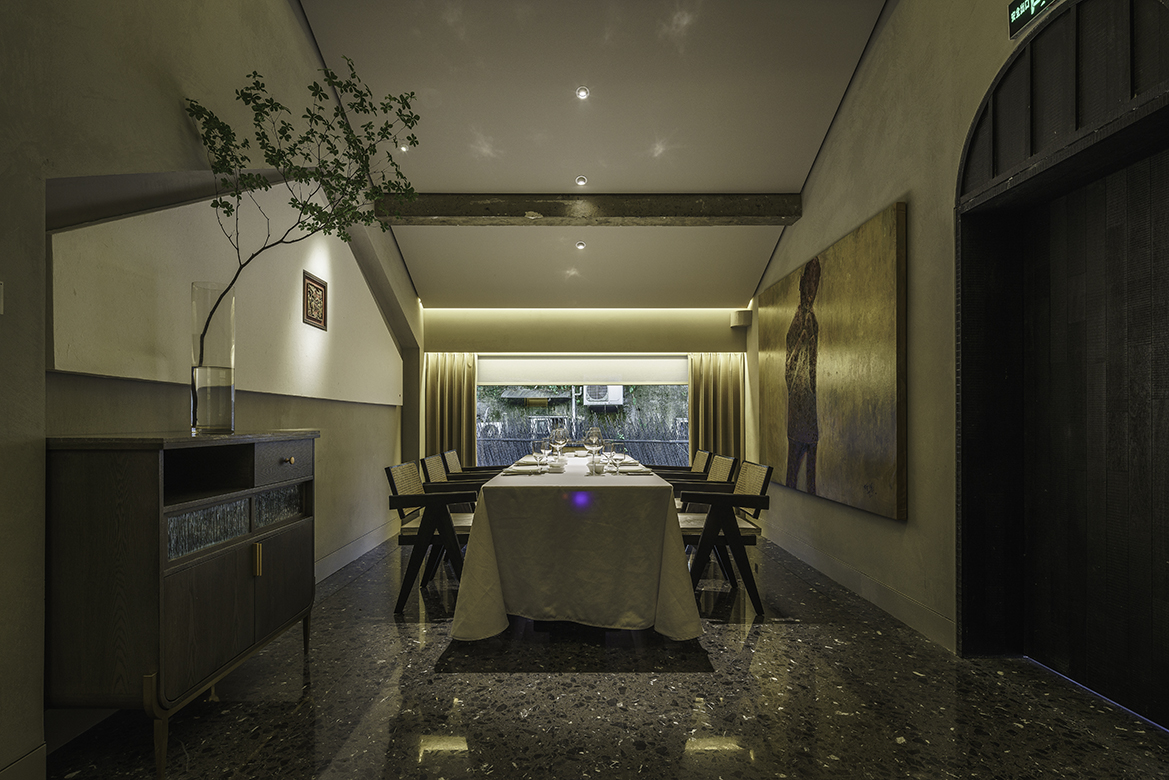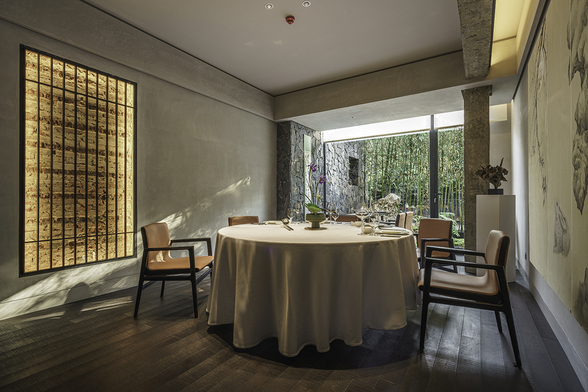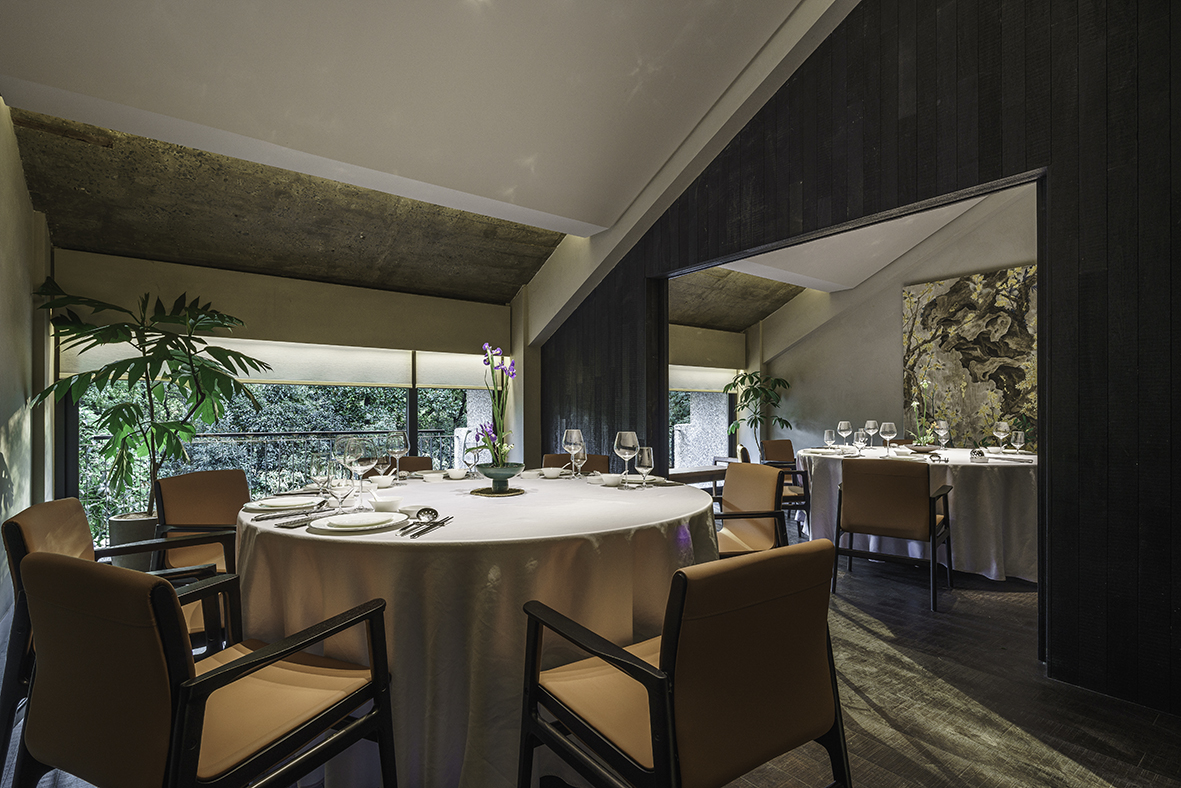 空间布局:满觉陇因桂花而闻名,每年秋天,桂花盛开,香满空山,落英如雨。玲姐杭州店以满陇桂花为基调,以闻桂,赏桂,识桂,品桂来创作和设计餐厅的空间。我们用内敛淳朴的手法来表现餐厅的高级,以侘寂风来表现餐厅品质。