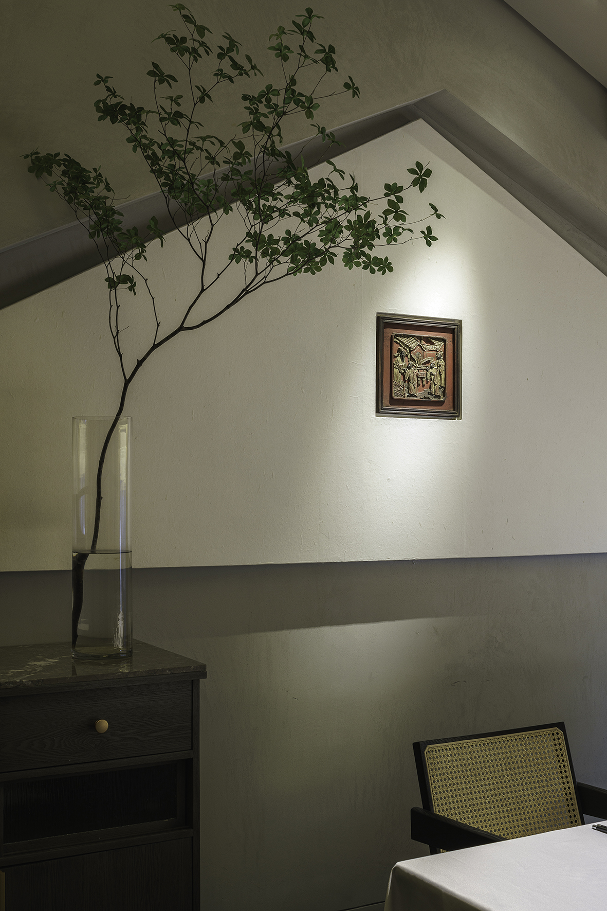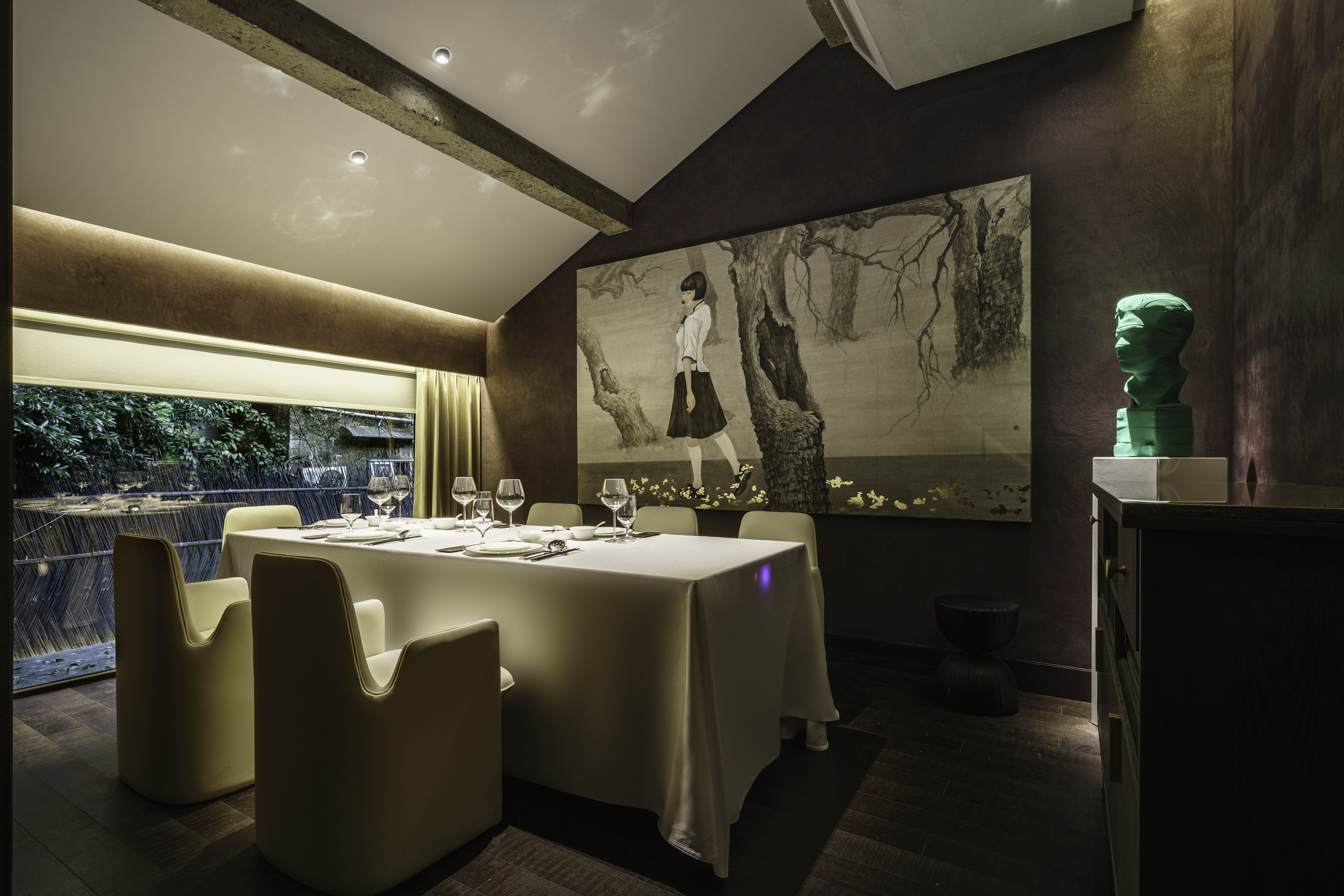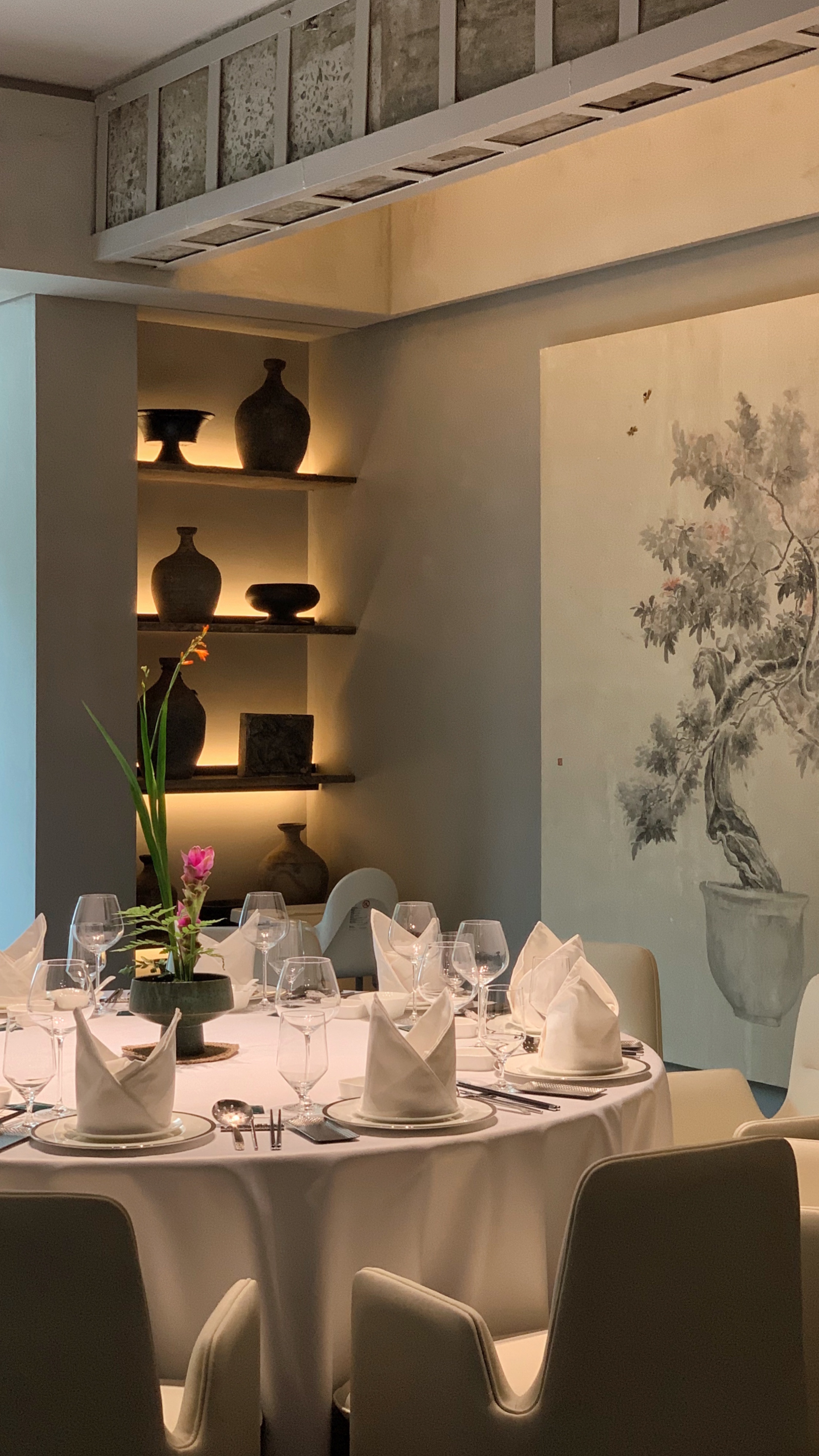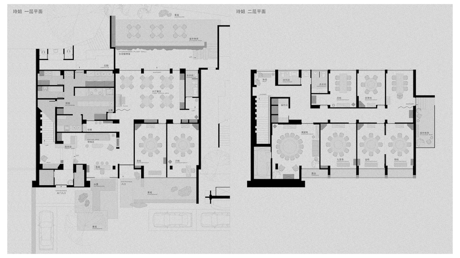 空间布局:满觉陇因桂花而闻名,每年秋天,桂花盛开,香满空山,落英如雨。玲姐杭州店以满陇桂花为基调,以闻桂,赏桂,识桂,品桂来创作和设计餐厅的空间。我们用内敛淳朴的手法来表现餐厅的高级,以侘寂风来表现餐厅品质。