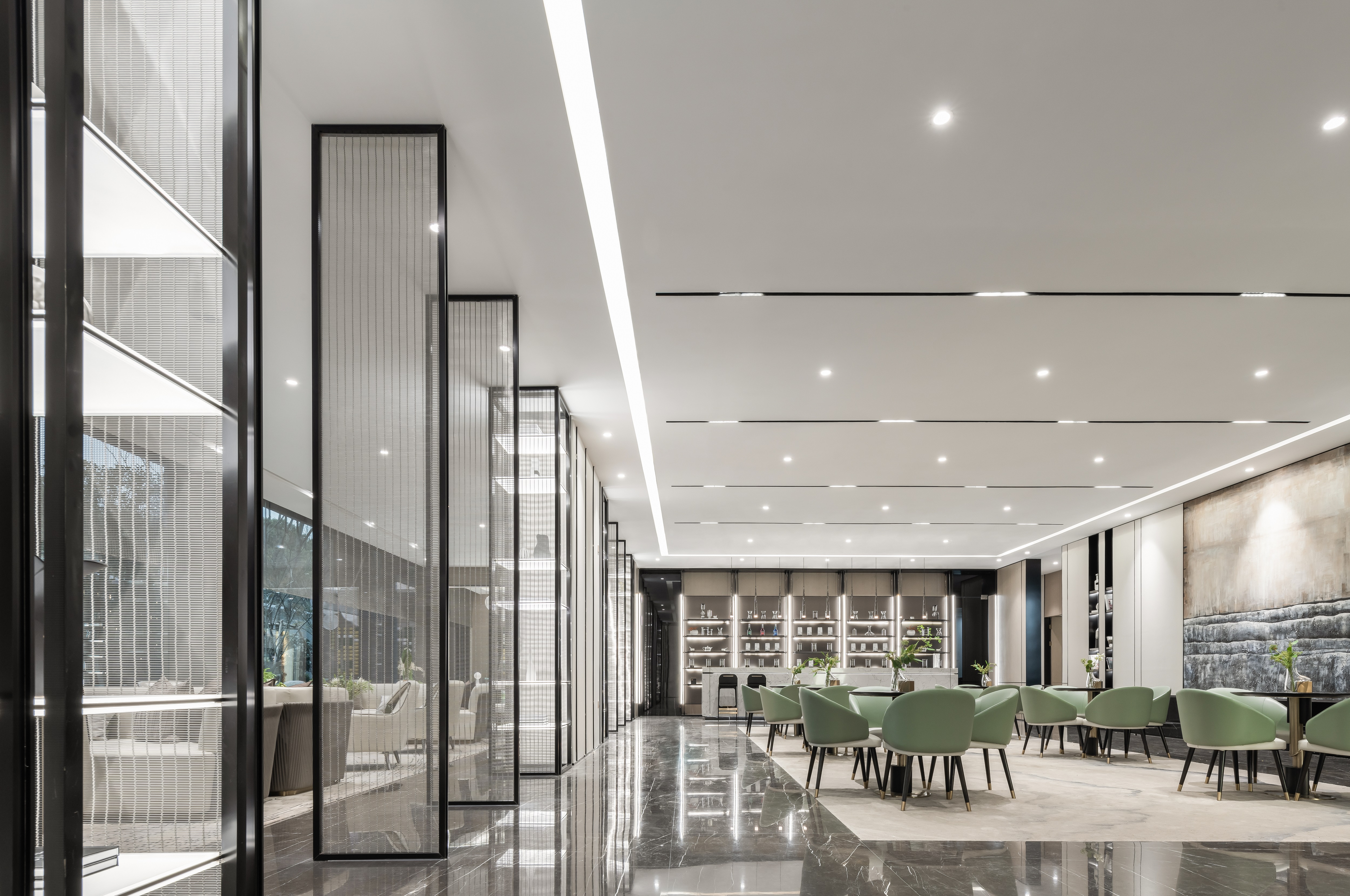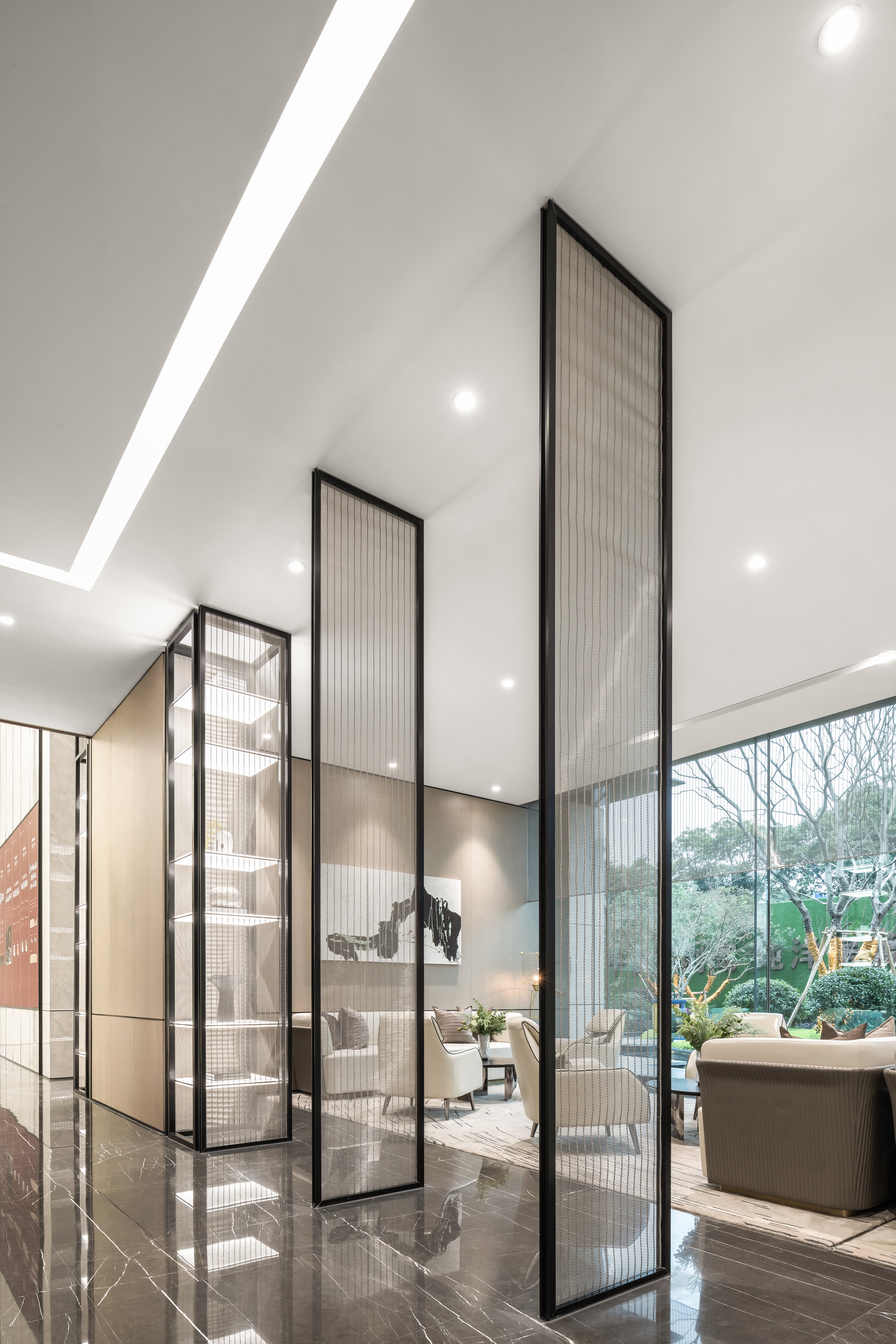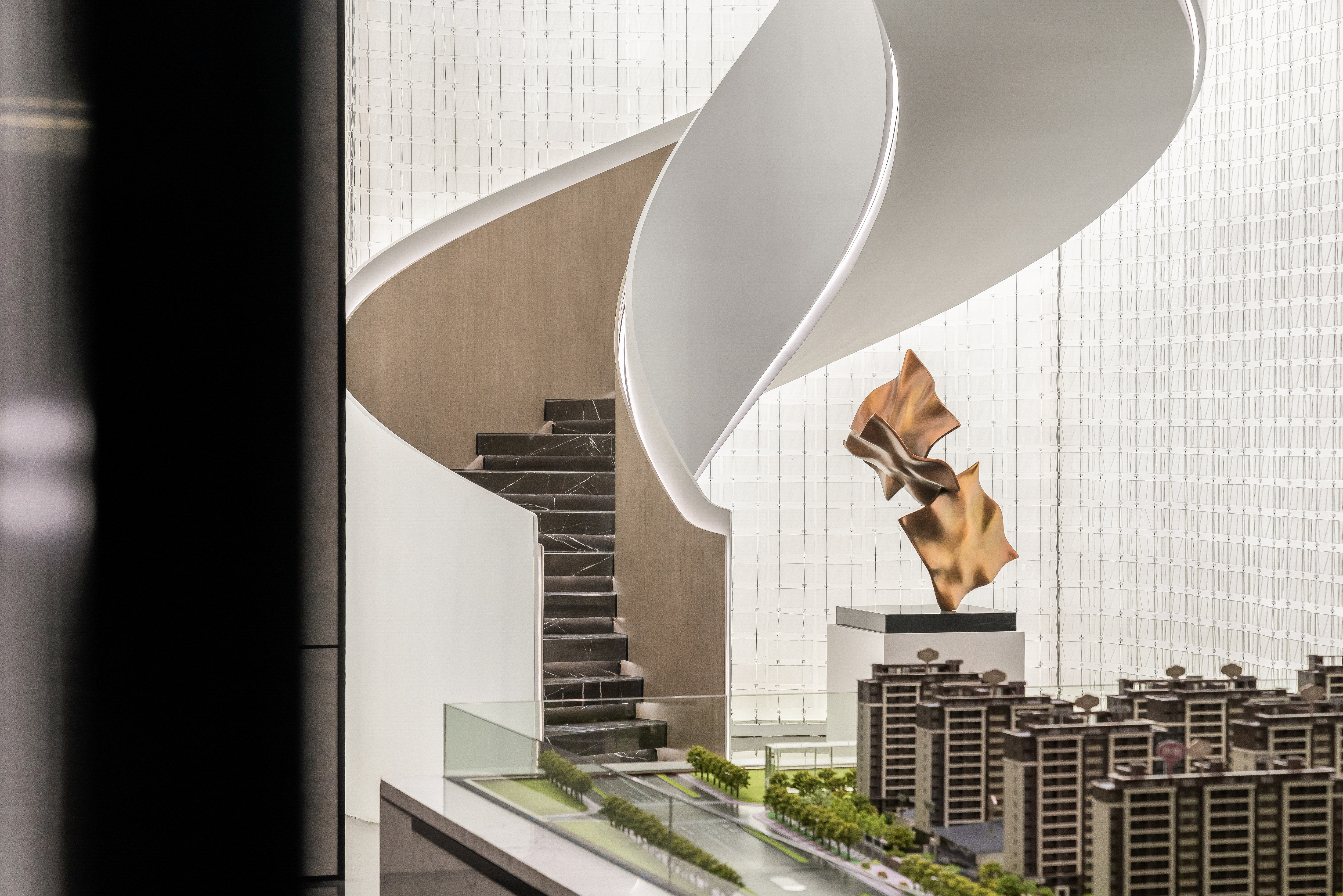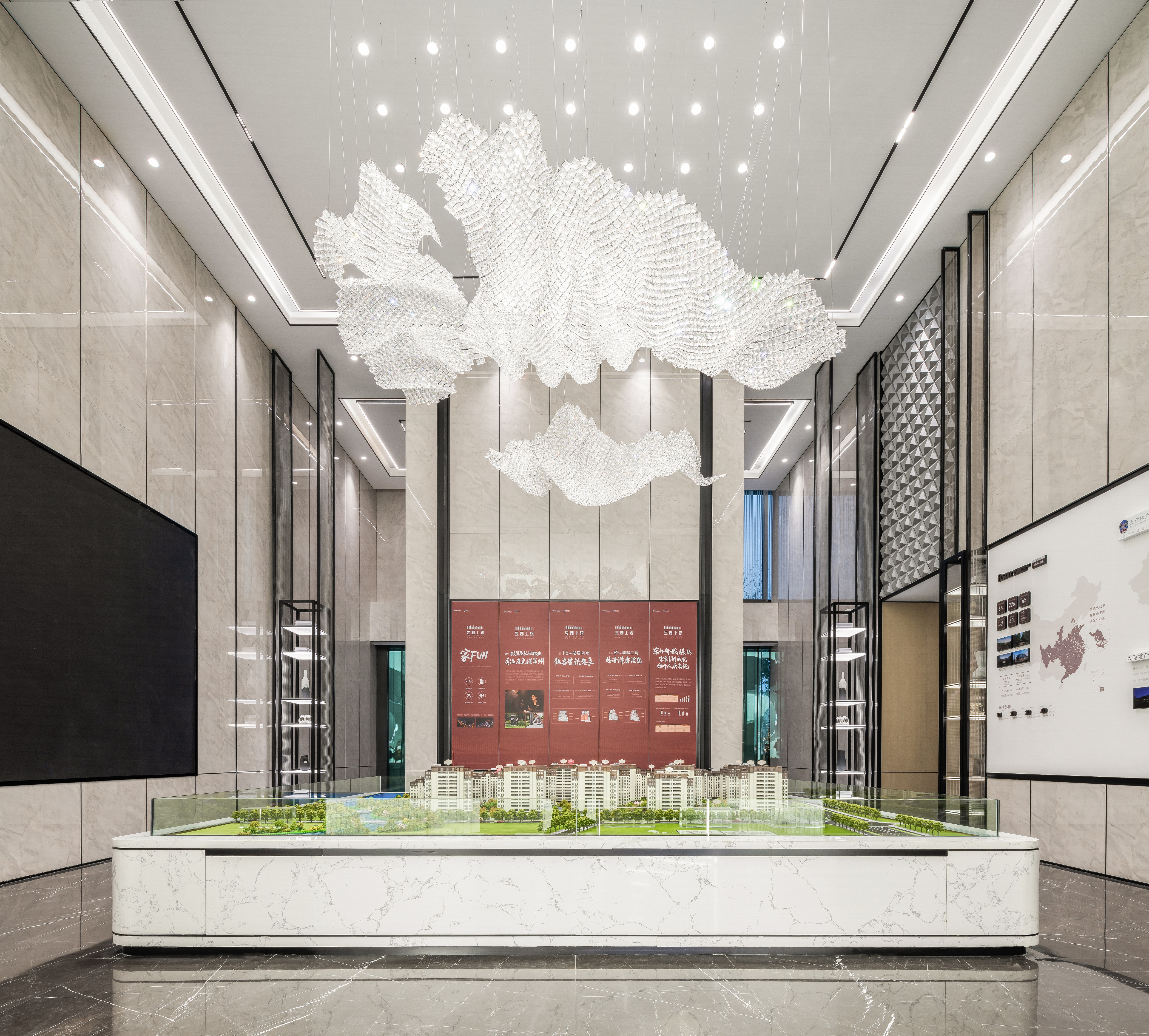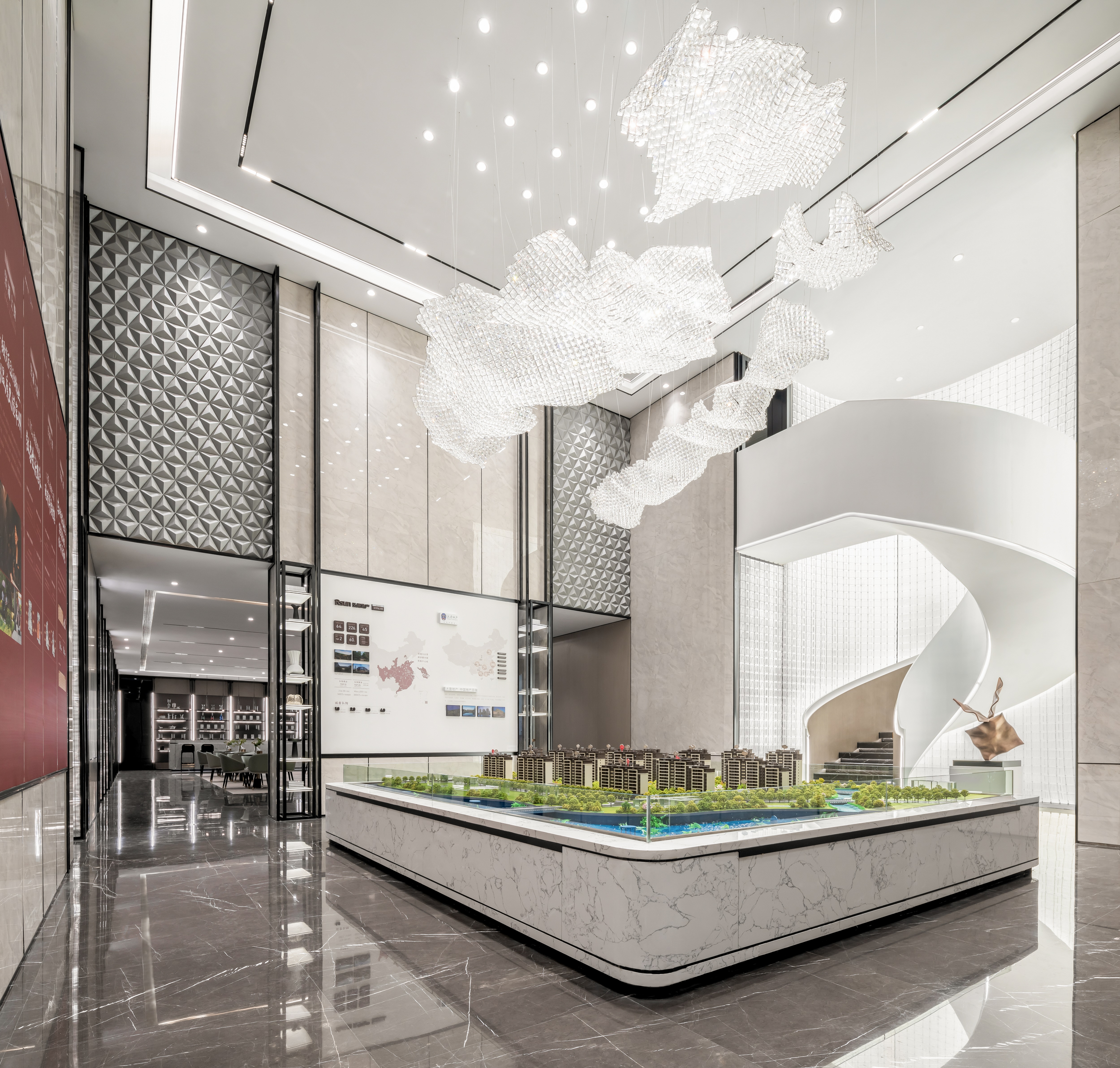 灵动的水波纹形式,玻璃的透明质感,光影的照射下犹如湖面掀起的涟漪, 在阳光下波光粼粼。