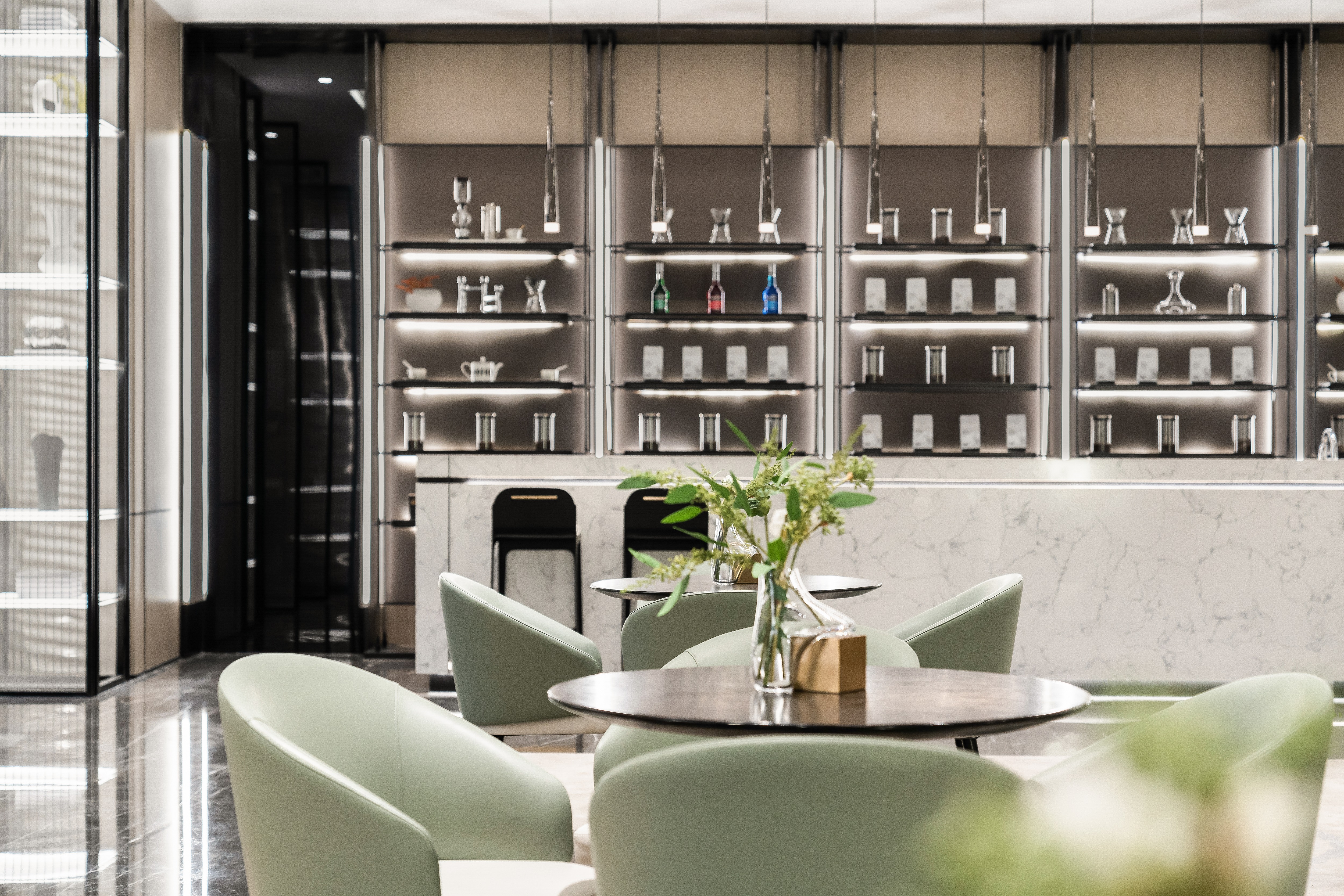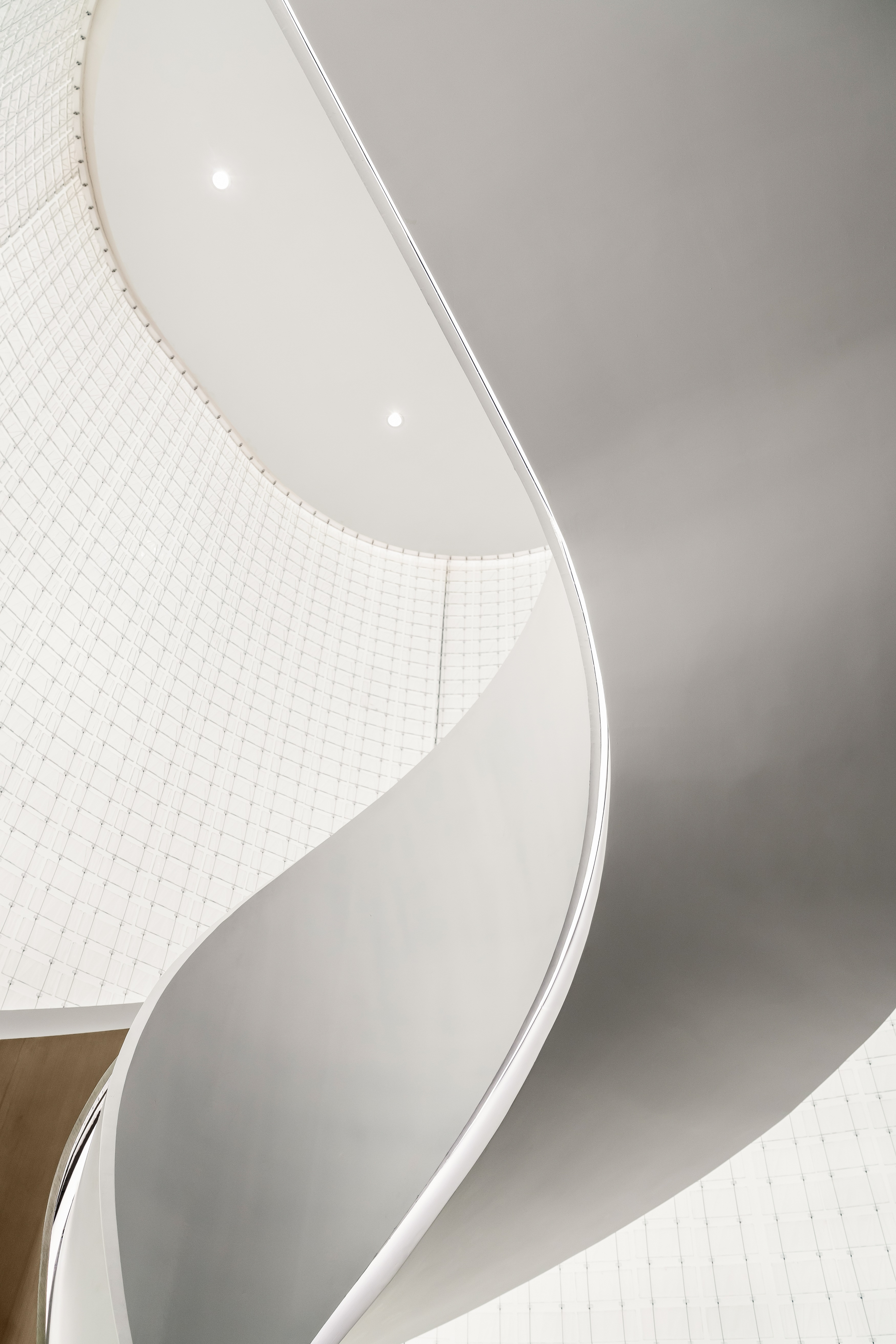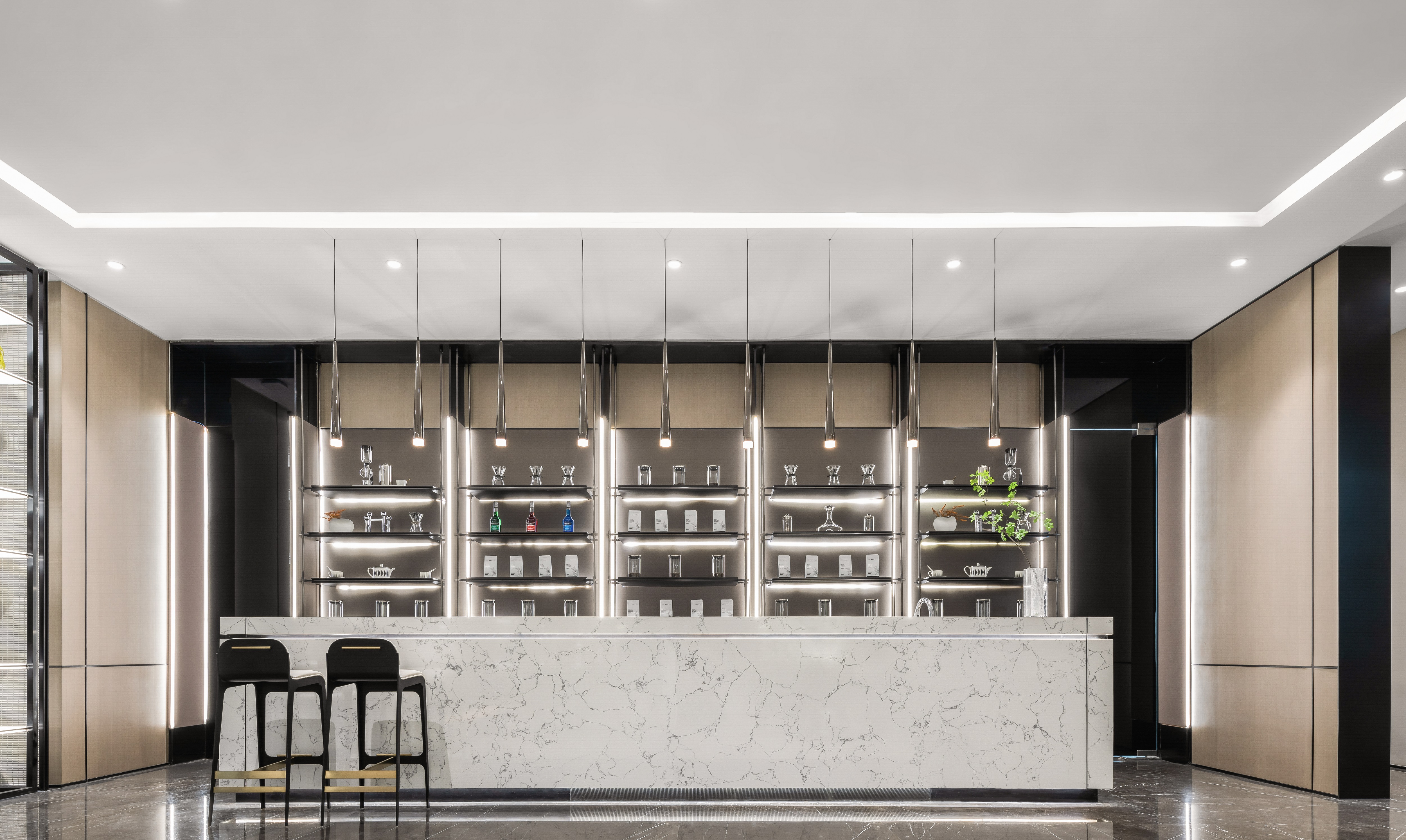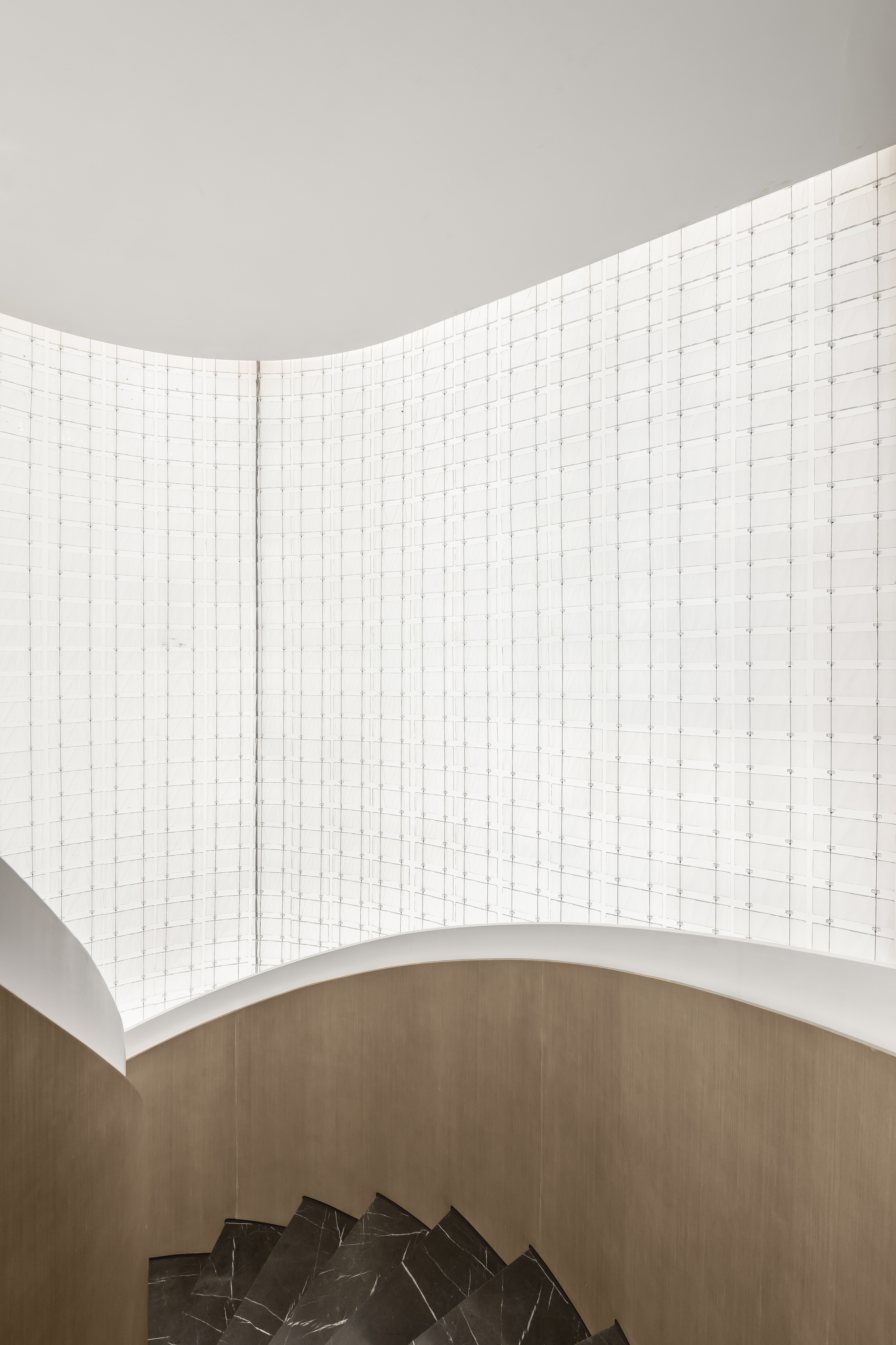 灵动的水波纹形式,玻璃的透明质感,光影的照射下犹如湖面掀起的涟漪, 在阳光下波光粼粼。