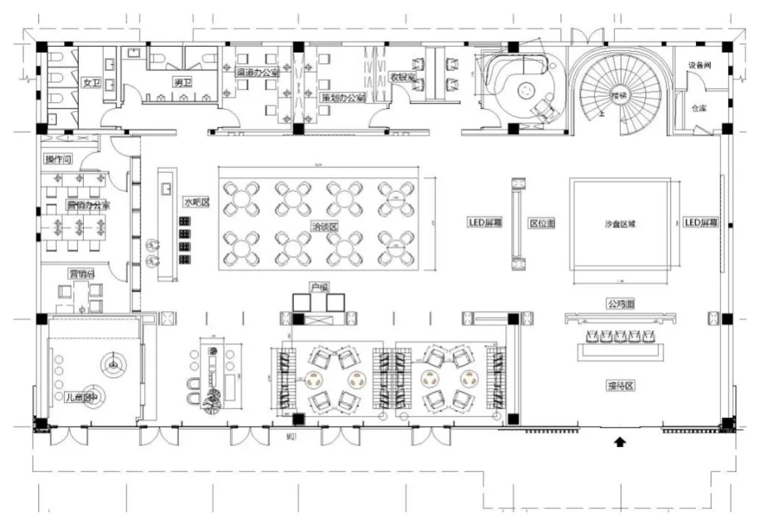 空间意境:结合当地青城砖砖窑的特色,提取江南园林自然元素。结合整体空间黑白灰的色调,以大地色系为基调,蓝绿色为点缀色,表达空间“淡语皆有味”的意境之美。