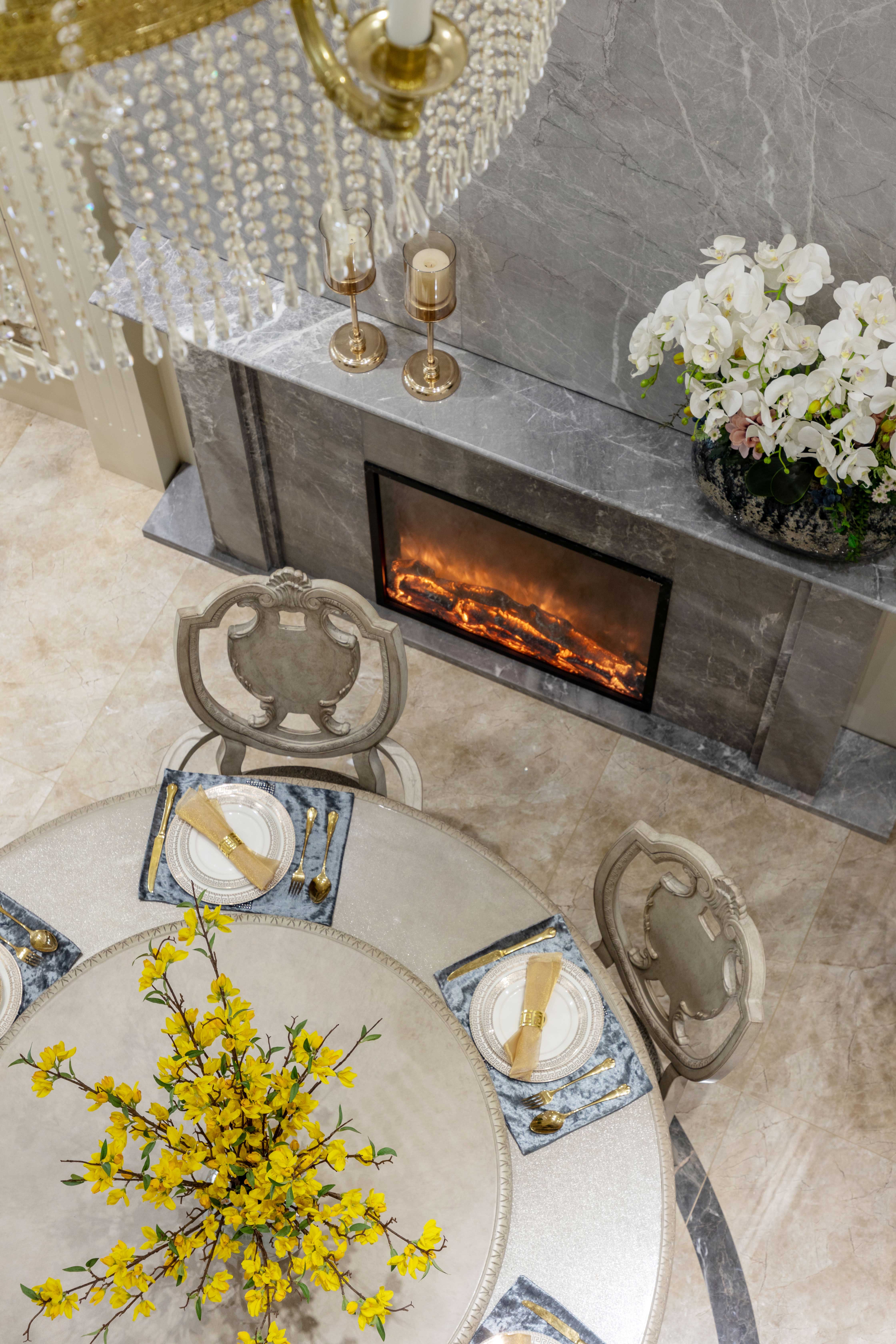 用户体验:精致的轻奢式长吊灯点缀出大气、时尚的氛围光与火的碰撞让身处于内的居者温暖透入心底。