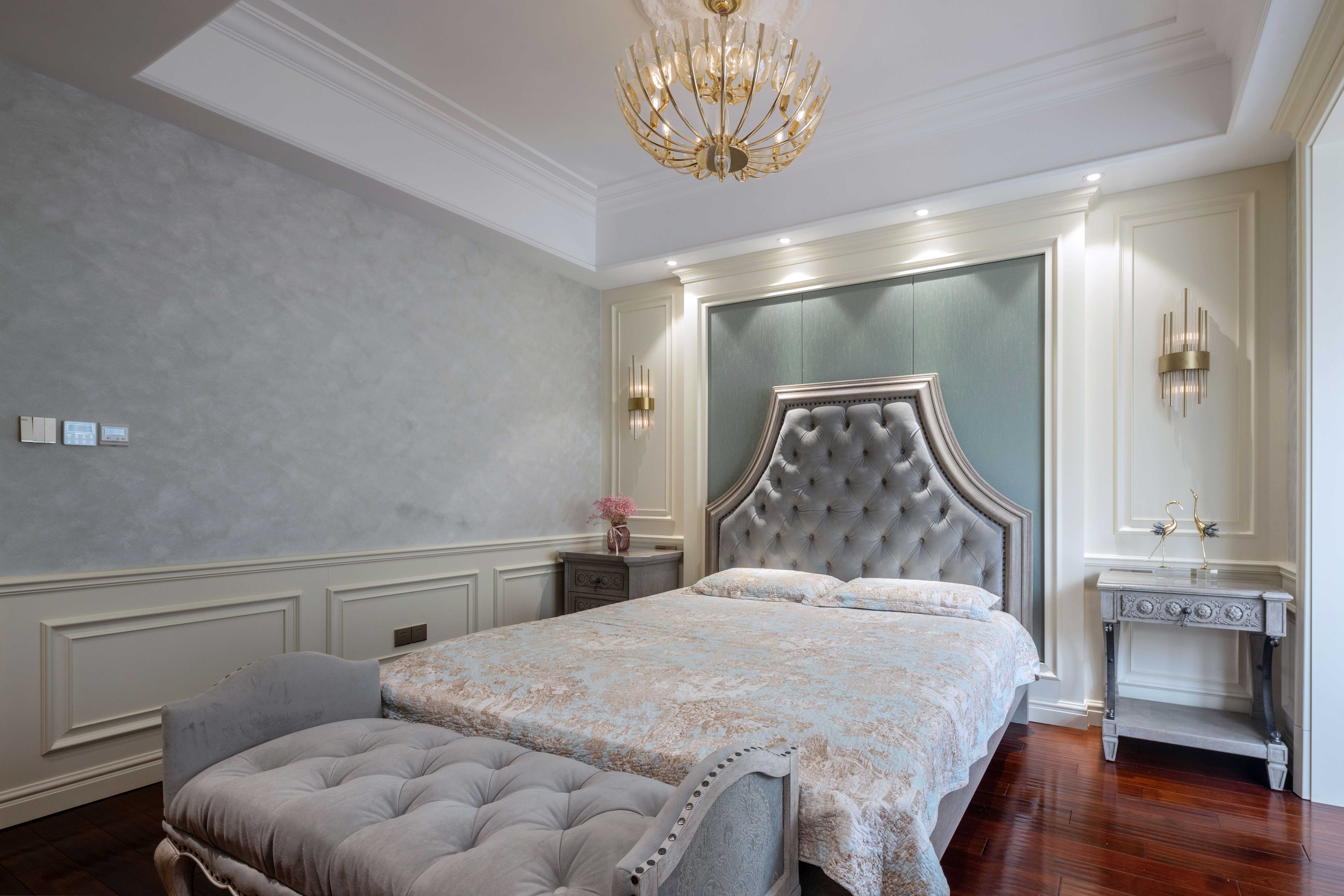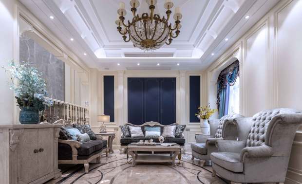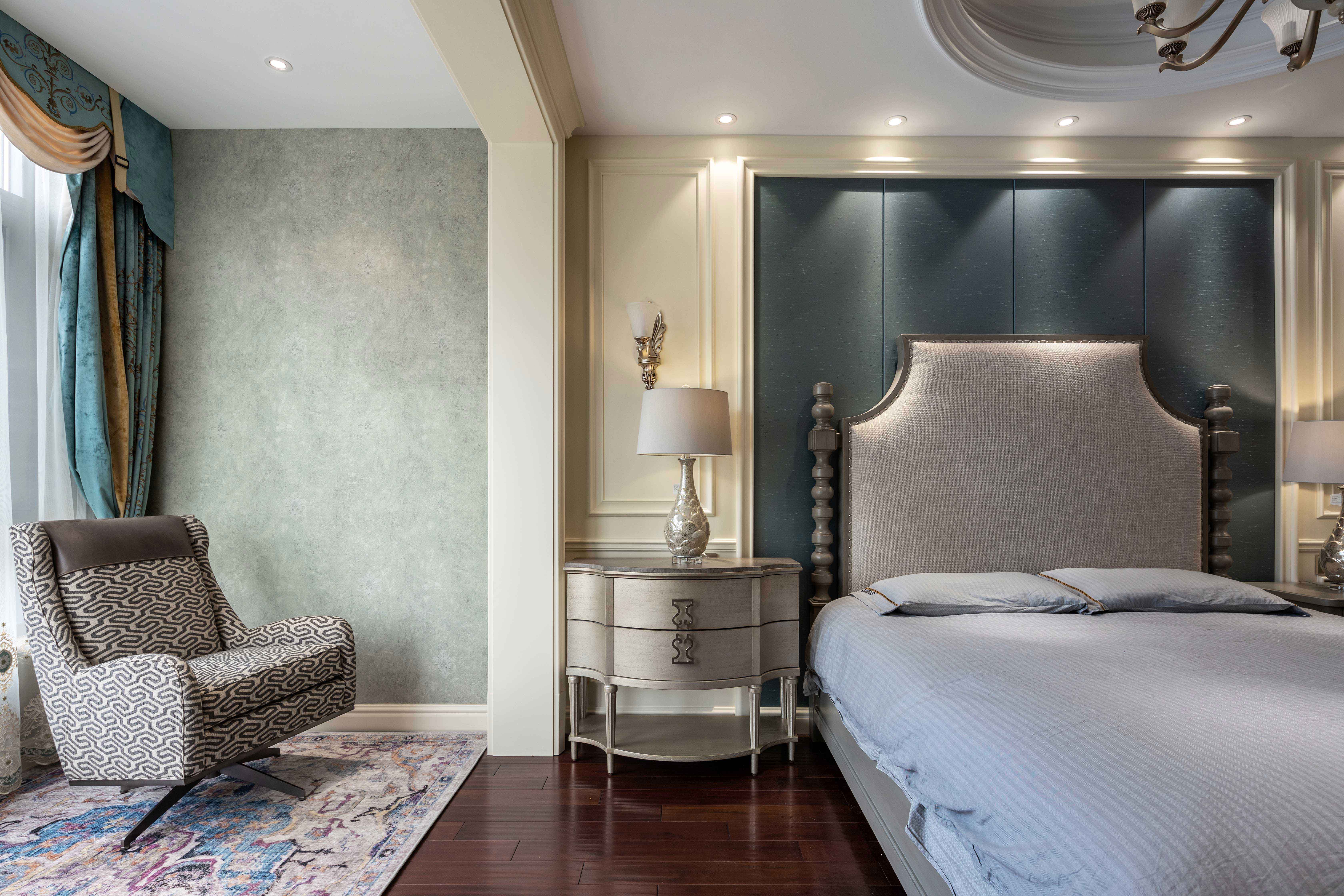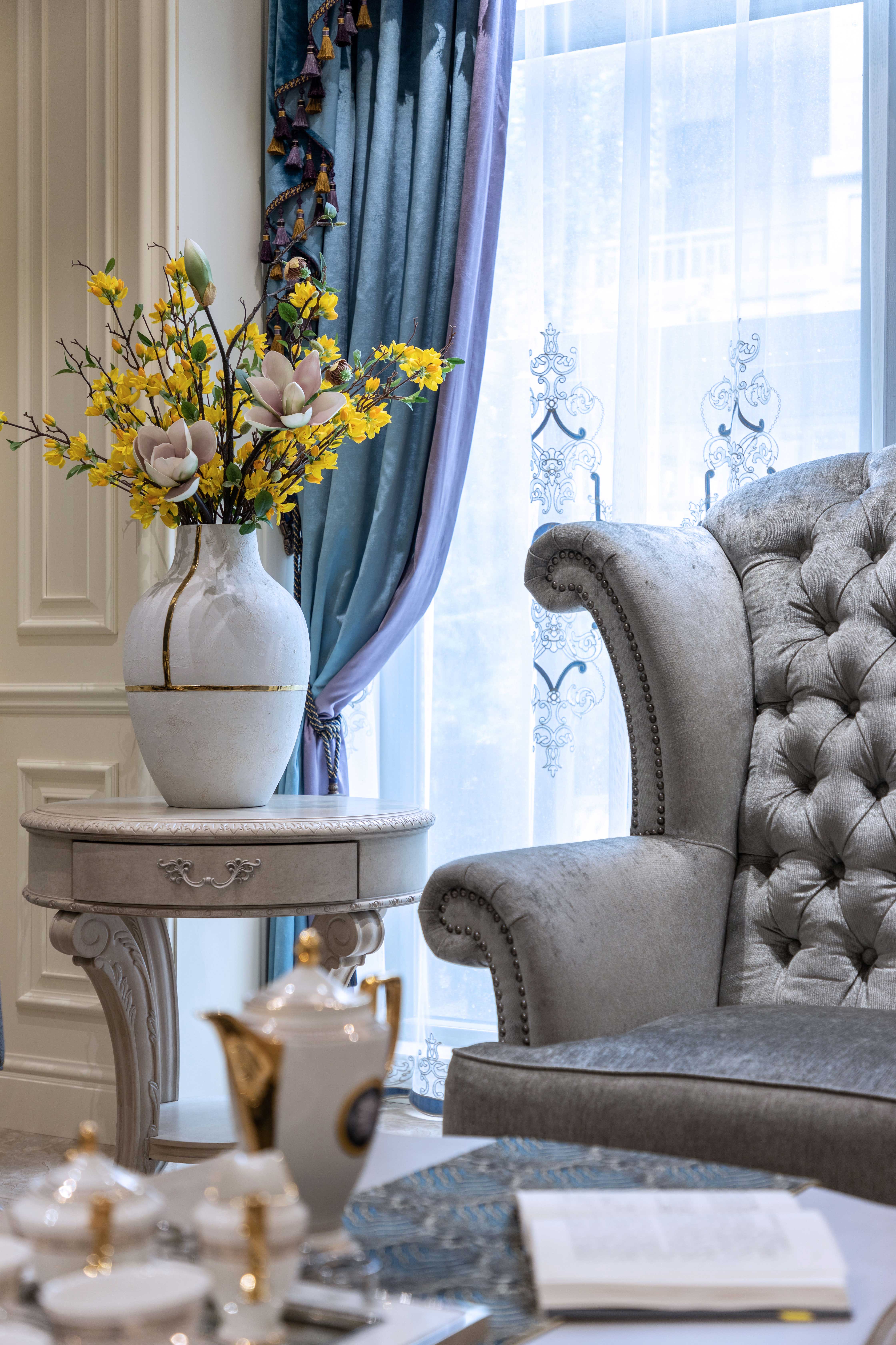 设计选材:家具、灯具的选用结合了现代轻奢与美式复古的优雅元素,在新与旧间形成对比。