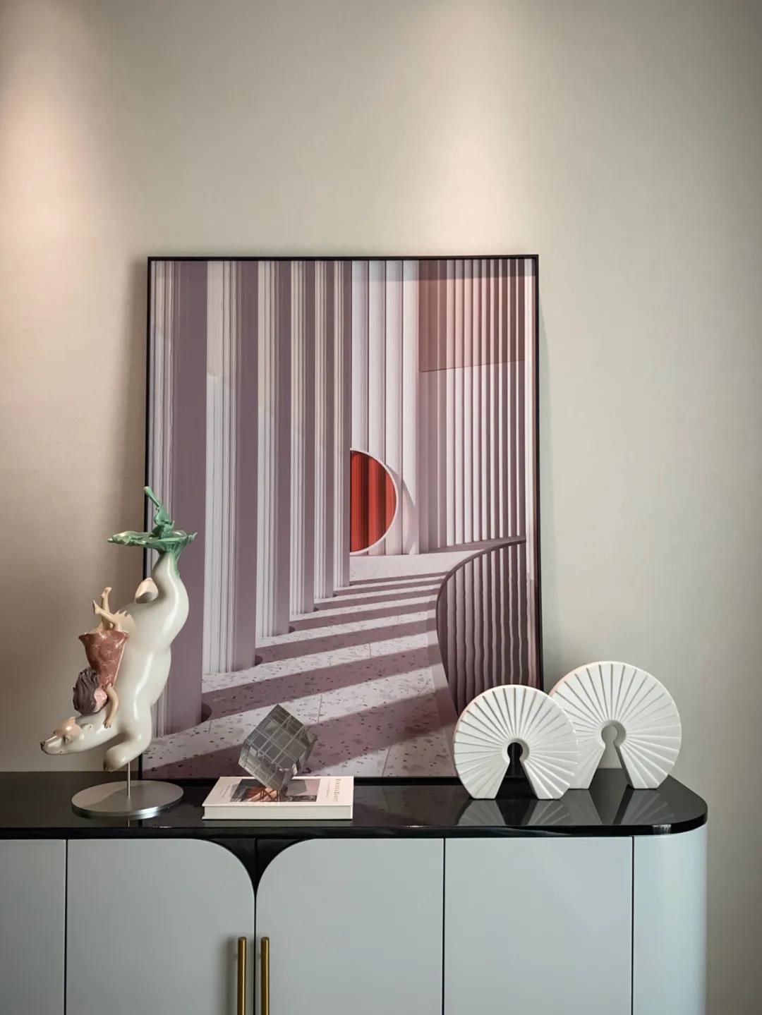 将硬装的简化洛可可主义的复古精致配以温柔风情的莫兰蒂色系的软装配饰,营造出直达灵魂深处的文艺与平静,给人的视觉感受绵长且强烈。