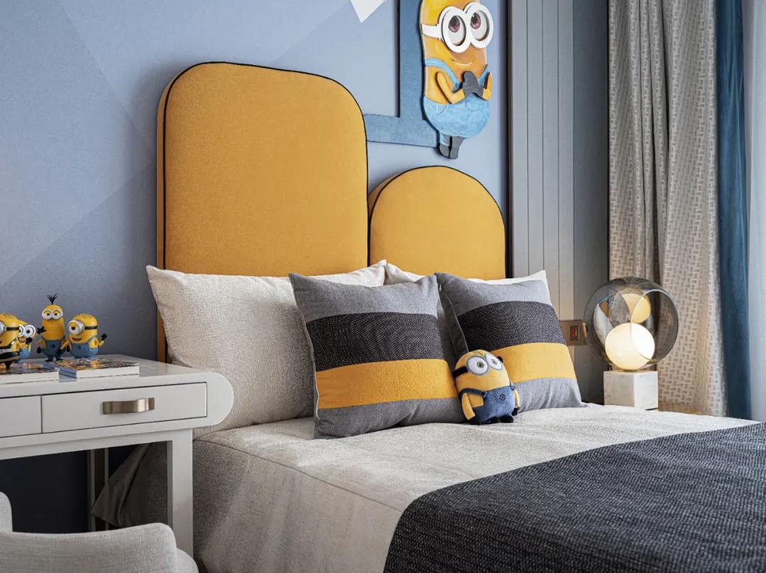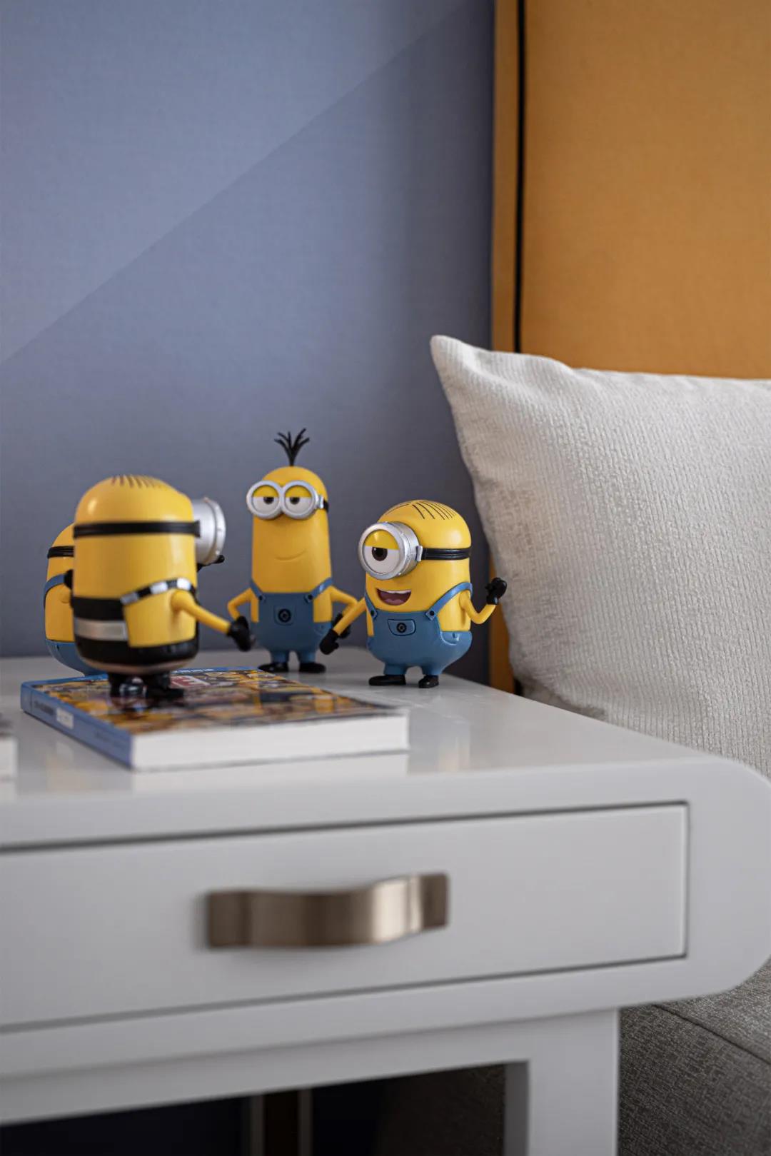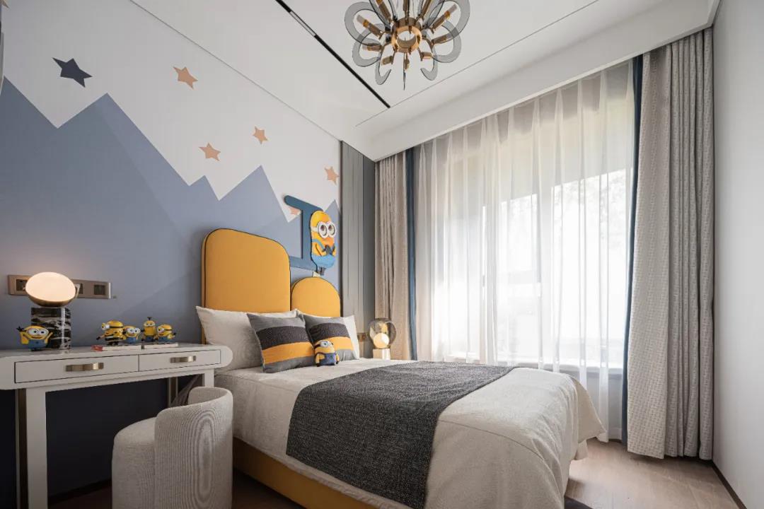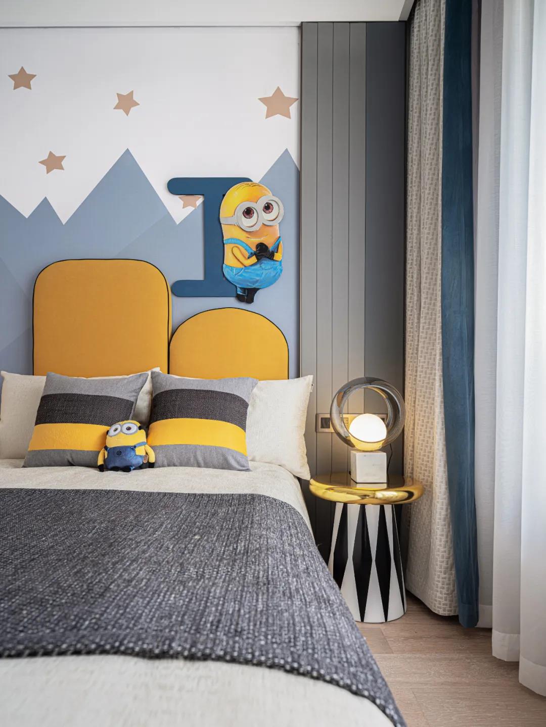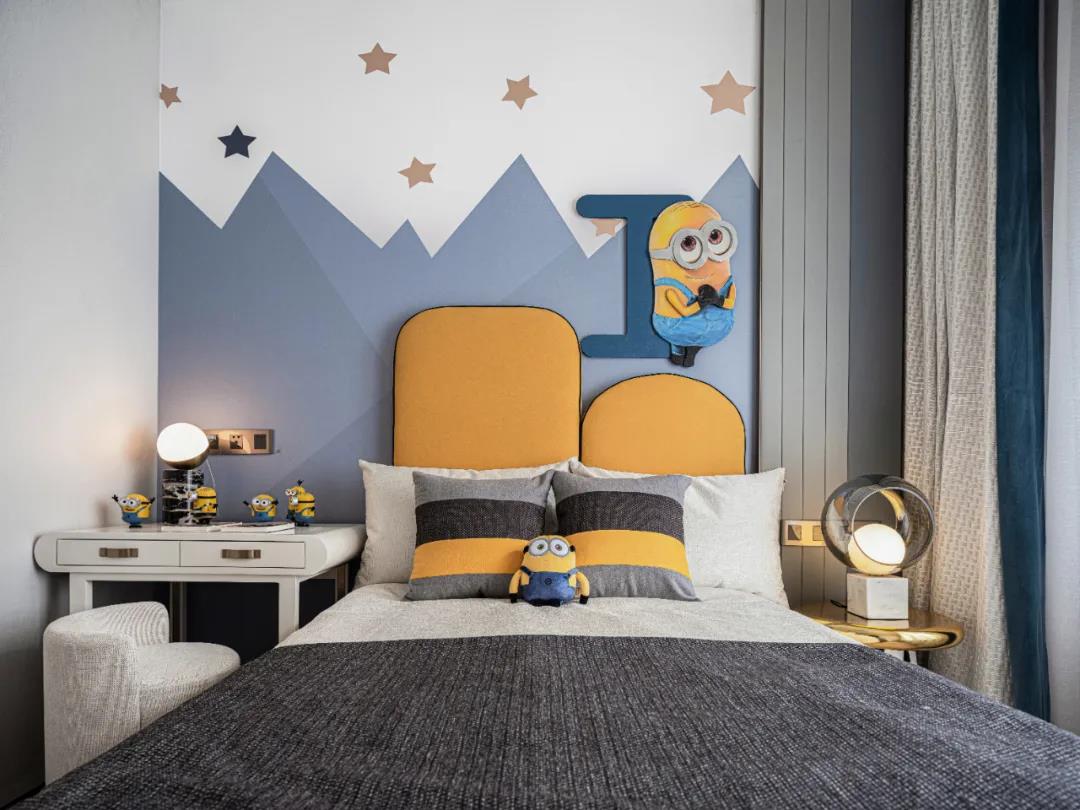 儿童房像是打破了次元壁,订制的墙纸仿若星空下的雪山,可爱活泼的小黄人就是孩子成长路上最好的伙伴,一起翻越人生中一座座的大山!